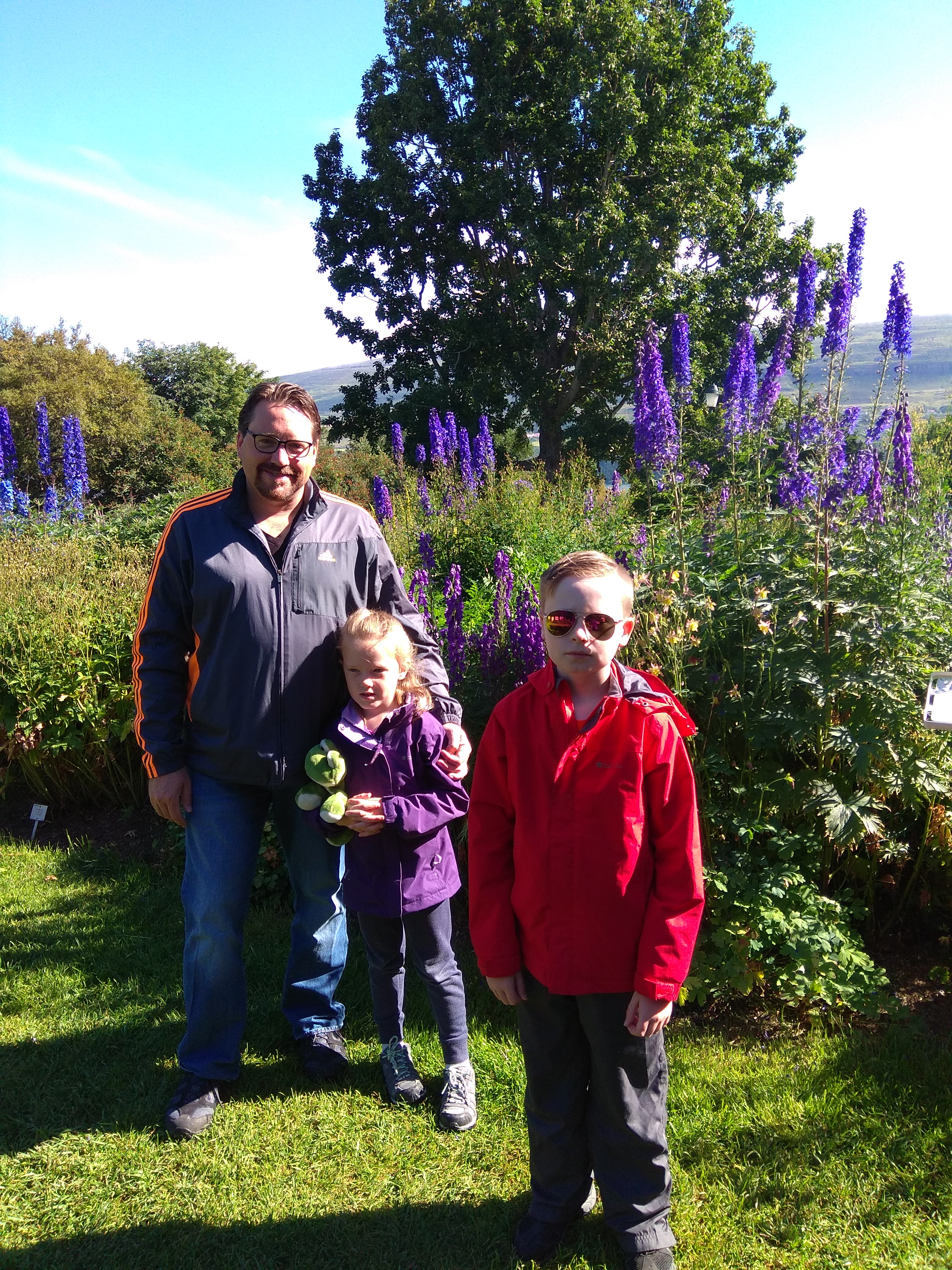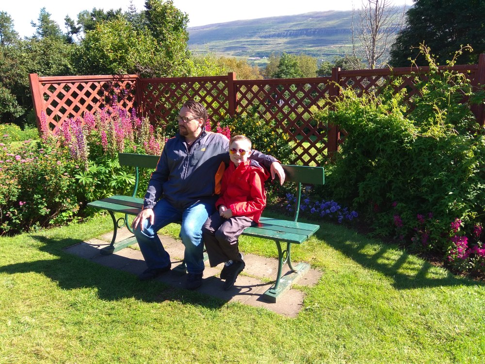Somewhat rested after yesterday’s adventures, we packed up and left our Akureyri apartment. We wanted to explore the “city” (a bustling metropolis of about 17 000), so we began at the (free!) Botanical Gardens. We had fun wandering around the flowers – taking pictures, watching bumble bees hard at work, and hunting for fairies. We were lucky enough to find a beautiful pond with an obvious fairy pathway leading to it!