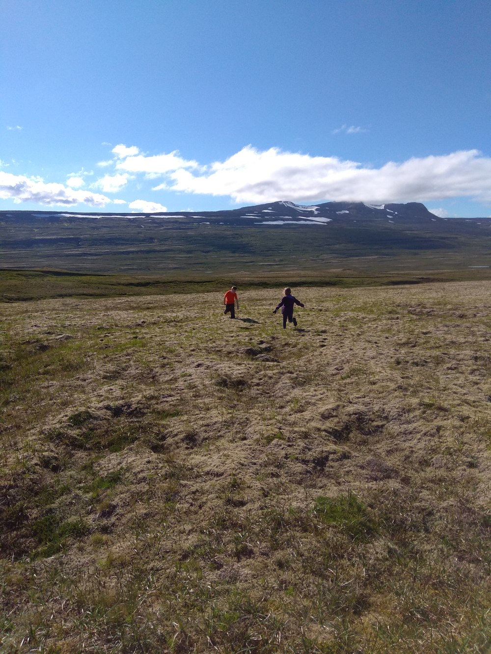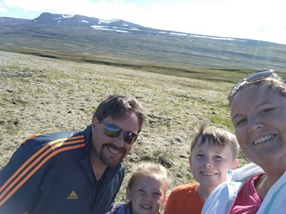At one of our leg stretching stops, Sam and Charlotte ran around and discovered that the Icelandic moss that grows on old lava fields is extremely spongy. They were bouncing and sinking in all over the place. I can’t think of anything similar in texture at home.