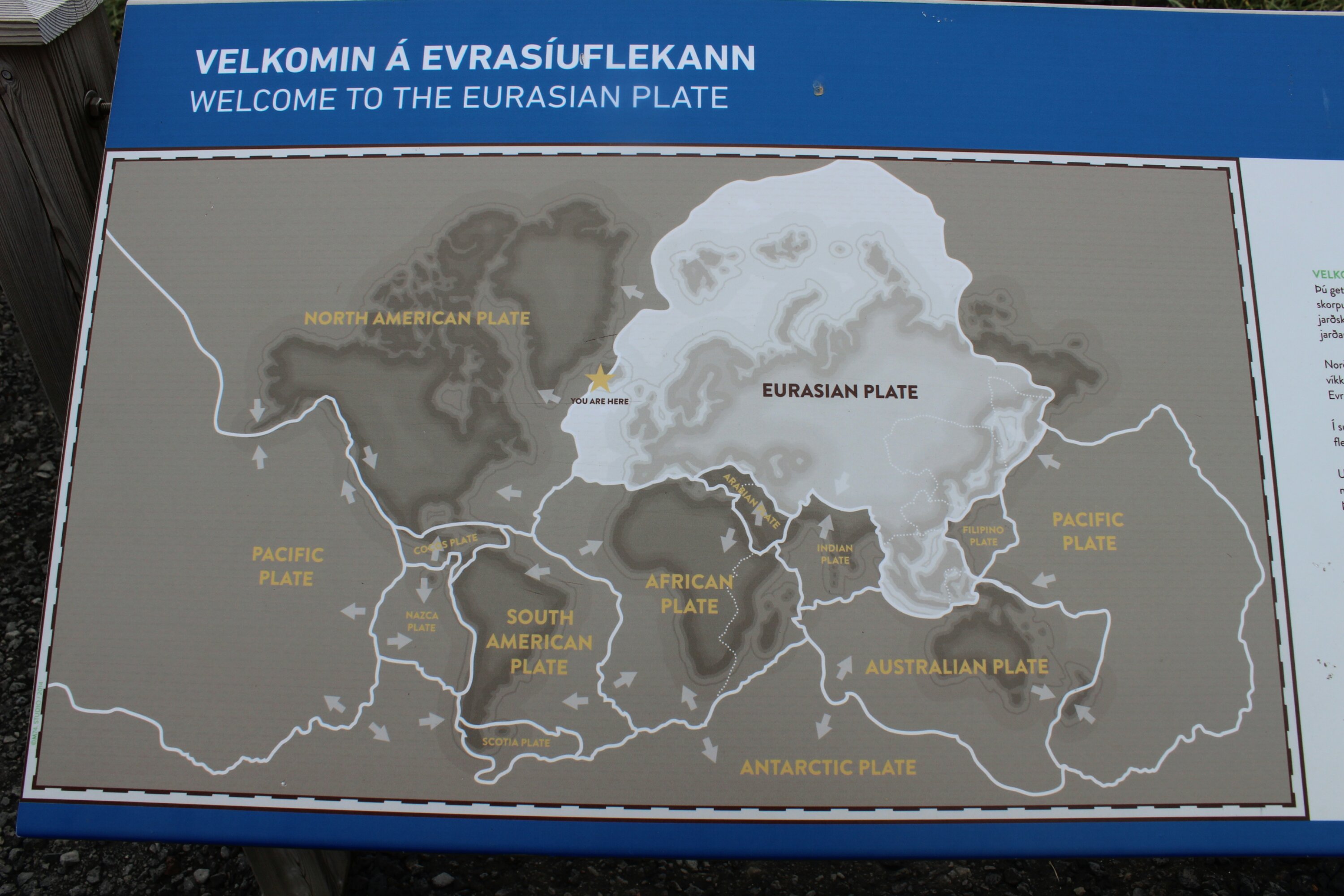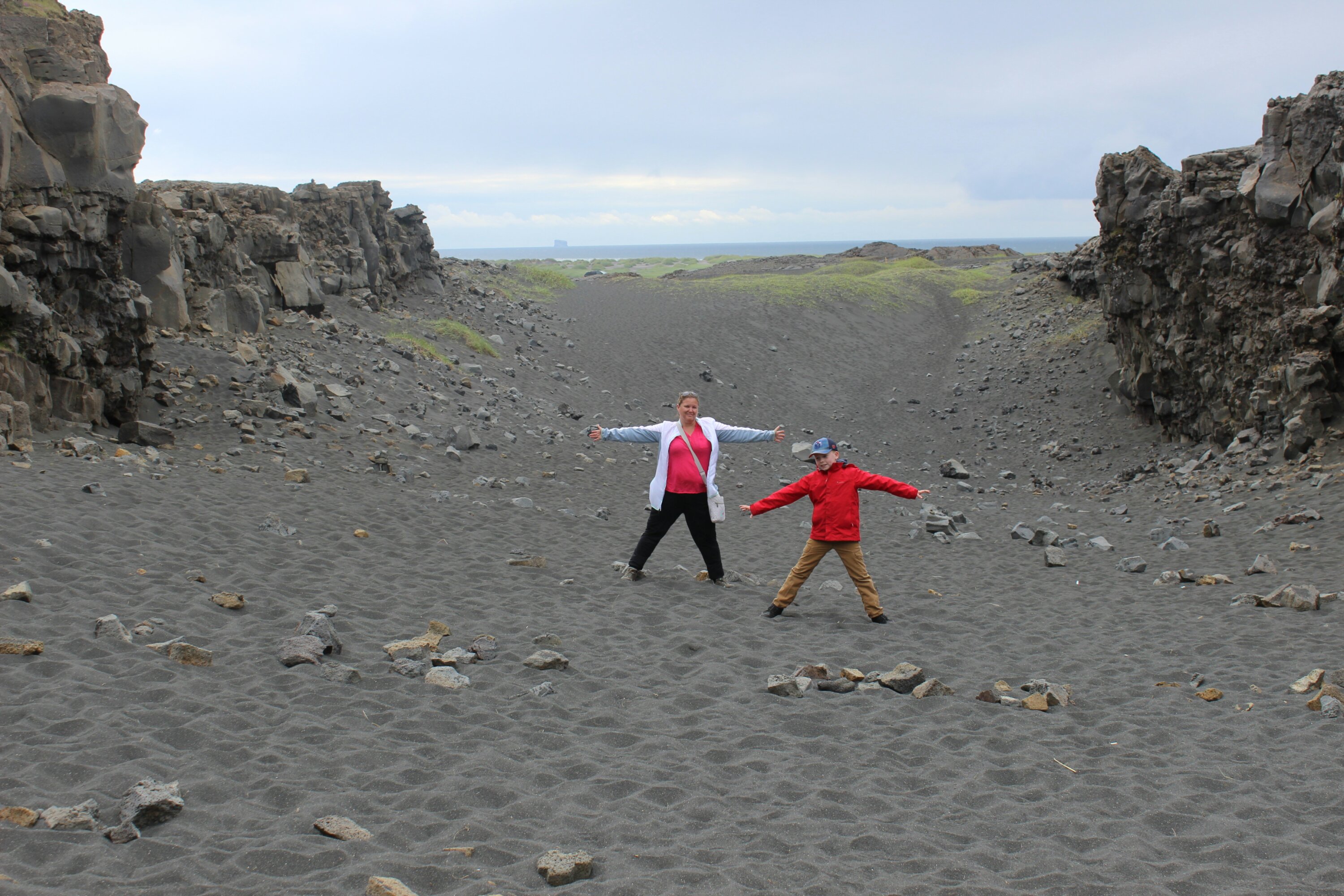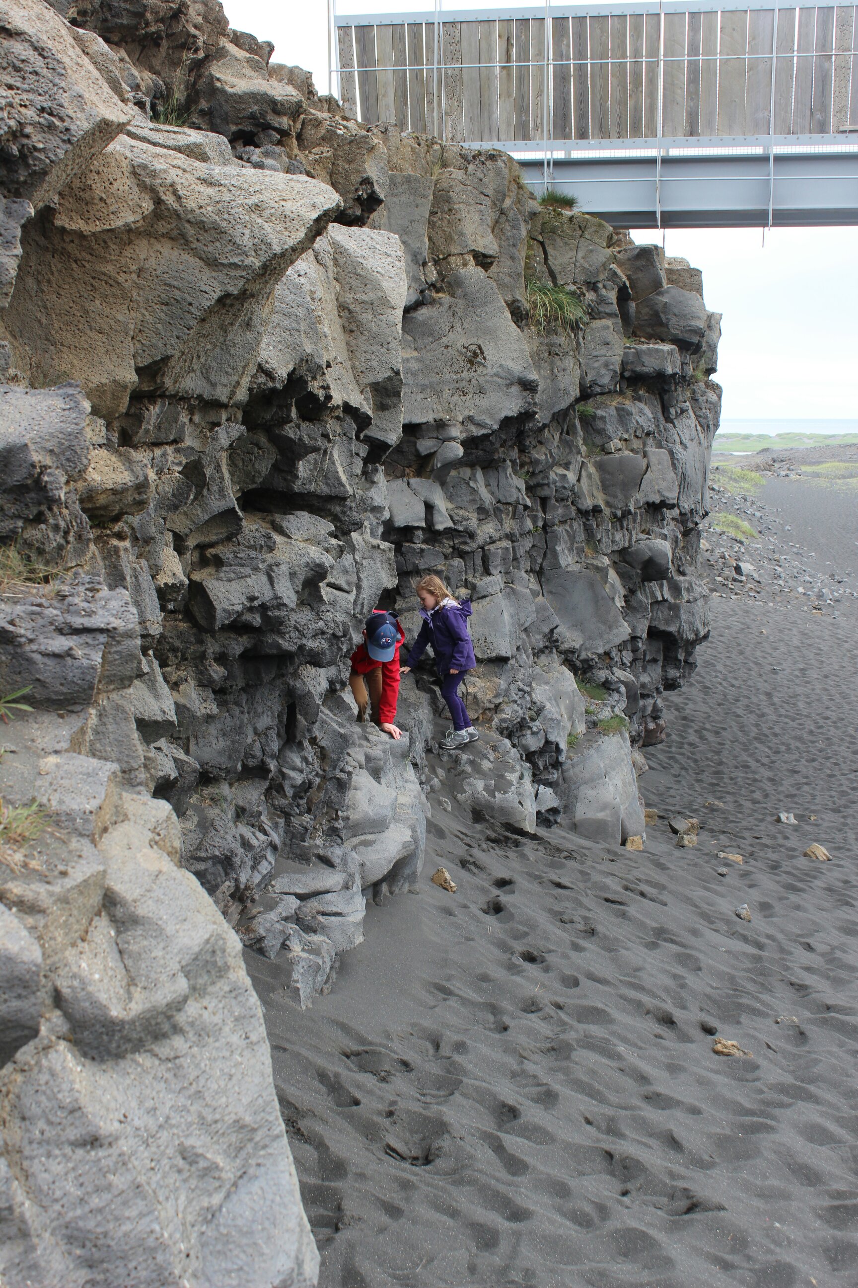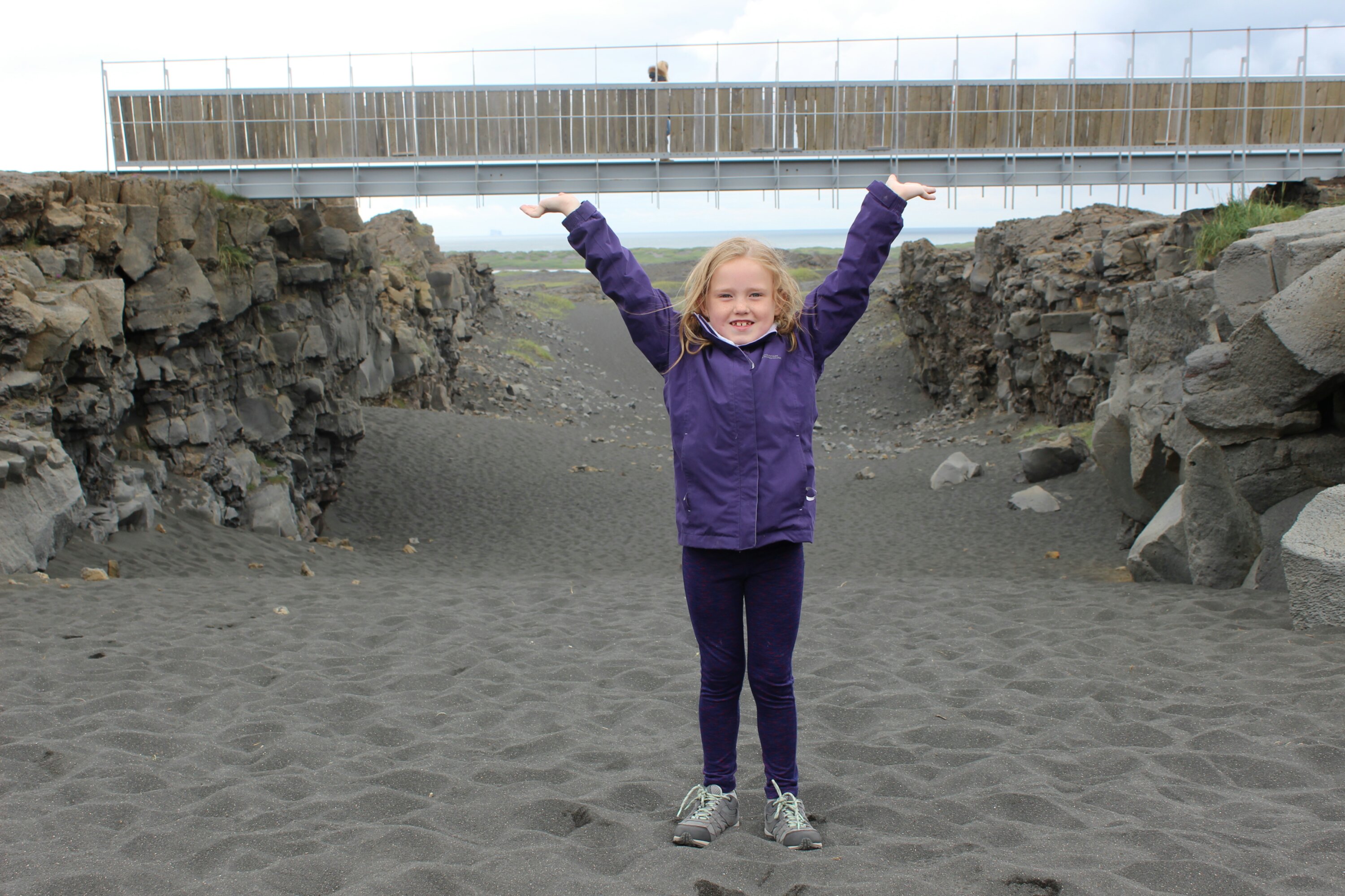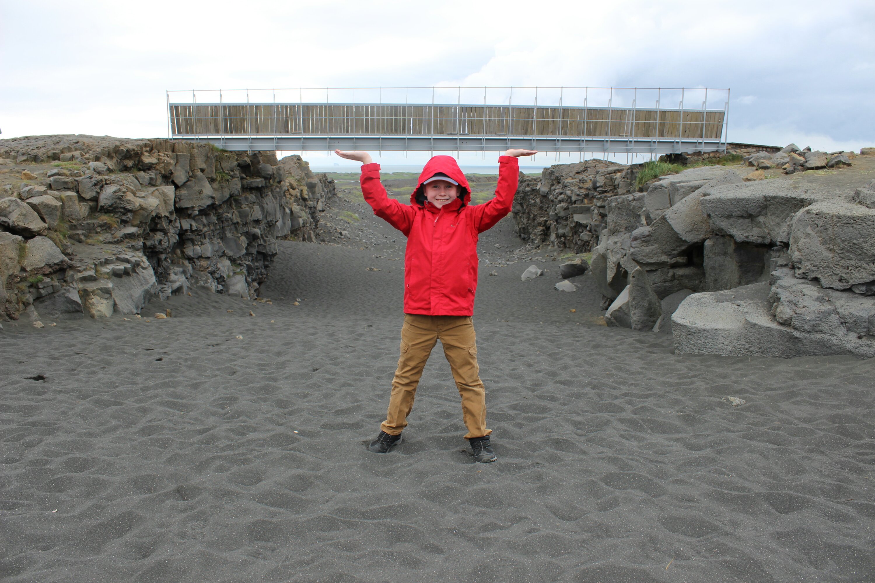 After the Blue Lagoon, we went between two tectonic plates. One was North America and one was Eurasia. It said that every year the plates drift apart by 2cm. The sign said every hundred years, it goes 2m. We stood underneath the bridge and played in the black sand. We also liked to climb up the cliffs a lot!