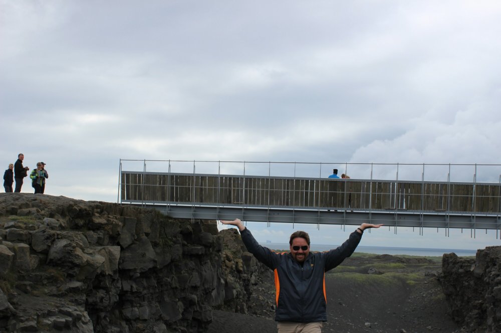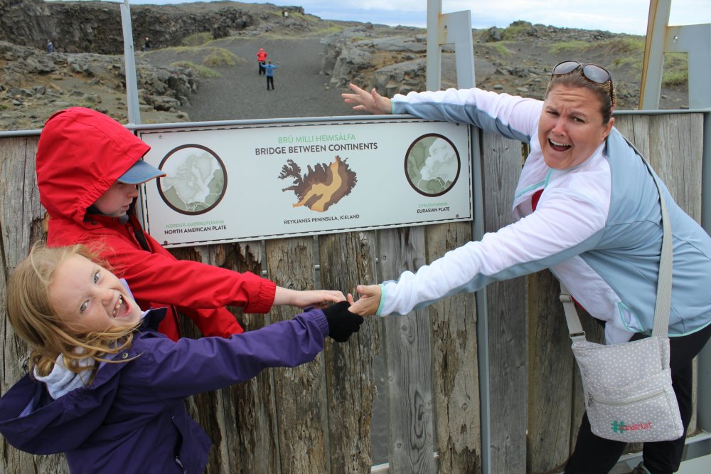 After the Blue Lagoon, we needed to take a shower and then left. We went to this cool place. We stood in North America and Europe at the same time! I liked playing in the rocks and climbing them to make clubhouses. My cousins, Casey and Emily, would love climbing here with me.
