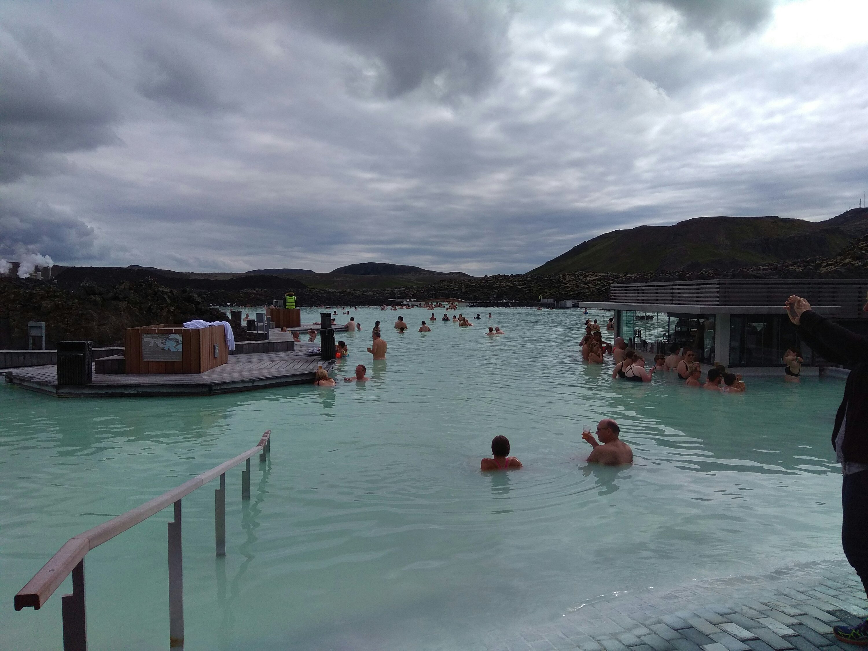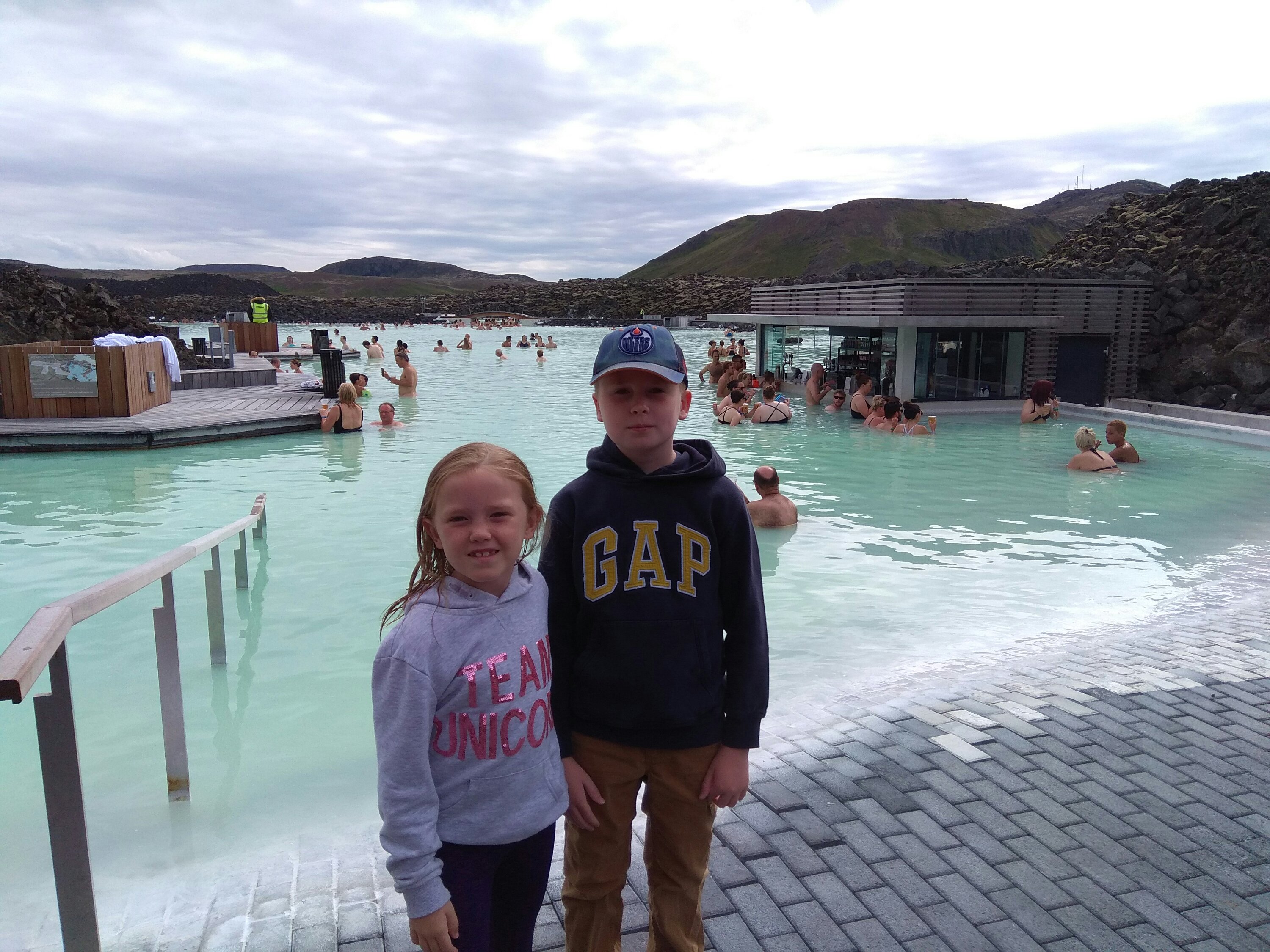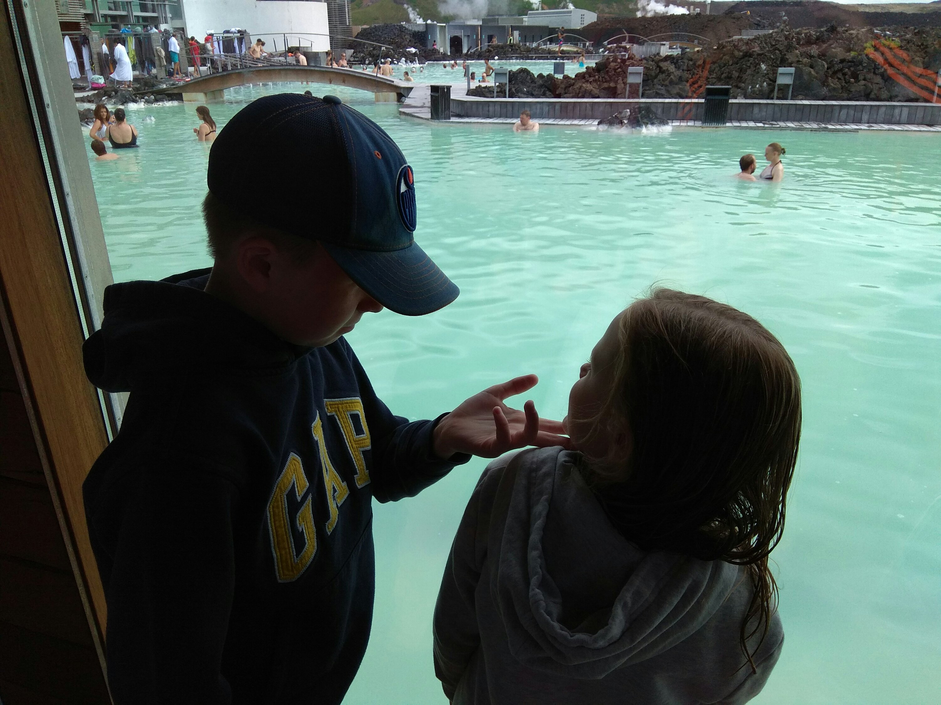First we woke up early and got ready and went to the Blue Lagoon. It was heated by geothermal power, so it was pretty warm. We had mud masks and we put them on our faces. The were a lot of people there, even at about 11 in the morning. My favourite part was just drifting around in the warm salt water. I floated on my back. We had slushies while we were in there. My flavour was cherry – it was really good, but I drank mine too fast and got a stomachache.