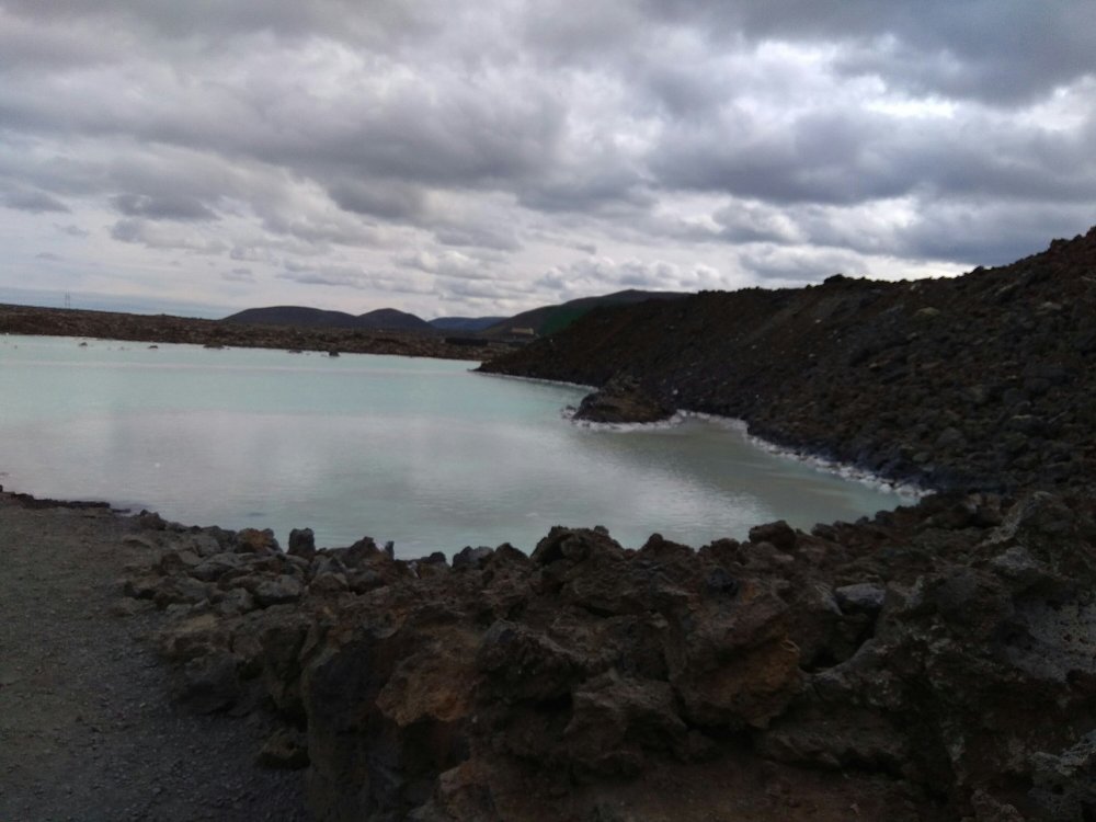 The Blue Lagoon was absolutely beautiful. The pale turquoise water was a bathtub-warm (38°C) temperature, and even though there were lots of people, it didn’t feel crowded or loud. We loved gazing out at the volcanic rocks piled high around the natural spring-fed pools and floating on the very salty water. The complimentary silica masks were very fun to cake all over our faces, necks, and shoulders. Our skin feels so soft after washing them off. The high levels of silica in the water coats the rock with a hard, white shellac-like substance. It is also responsible for the the colour of the water because it reacts with sunlight.