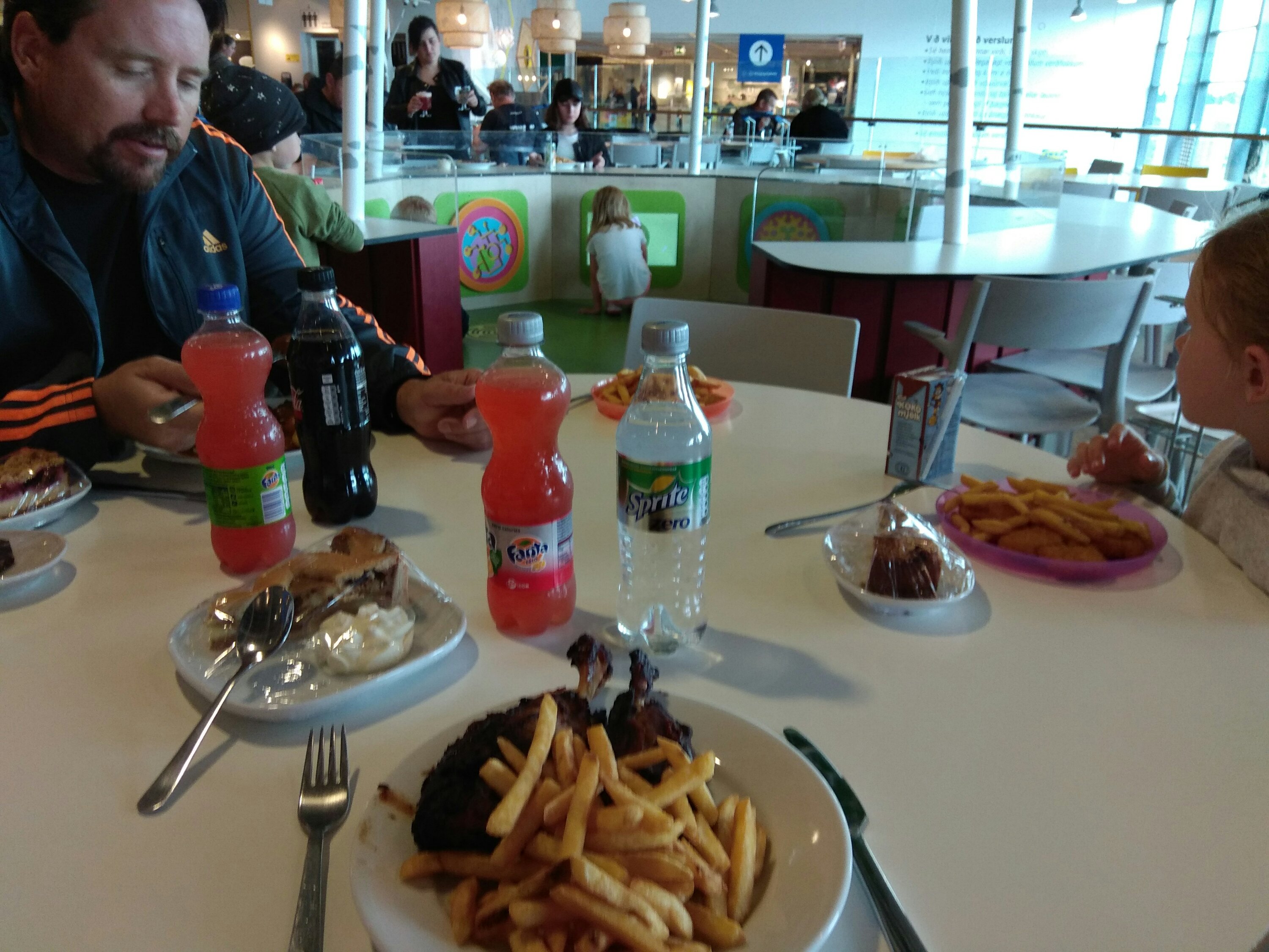 We decided to splurge and head to our first fancy restaurant for dinner tonight. It was called IKEA. The kids both enjoyed delectable fish nuggets served on plastic plates, Dad had Swedish meatballs and potatoes, and I had BBQ svinaskinka (pork). The atmosphere was lovely – we were seated directly next to the dirty dishes conveyor belt and near the cashiers with a view of the children’s play area. The service was top-notch – I particularly enjoyed the servers’ hairnets and the well-practiced way the plopped the food onto the plates, seemingly without effort! All-in-all, I was more than impressed.