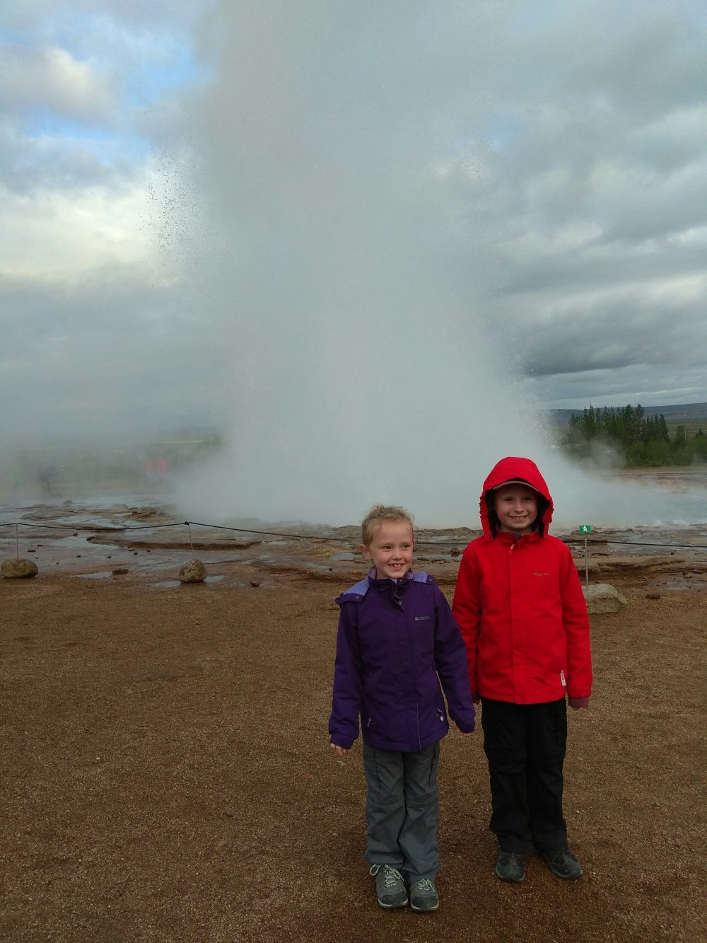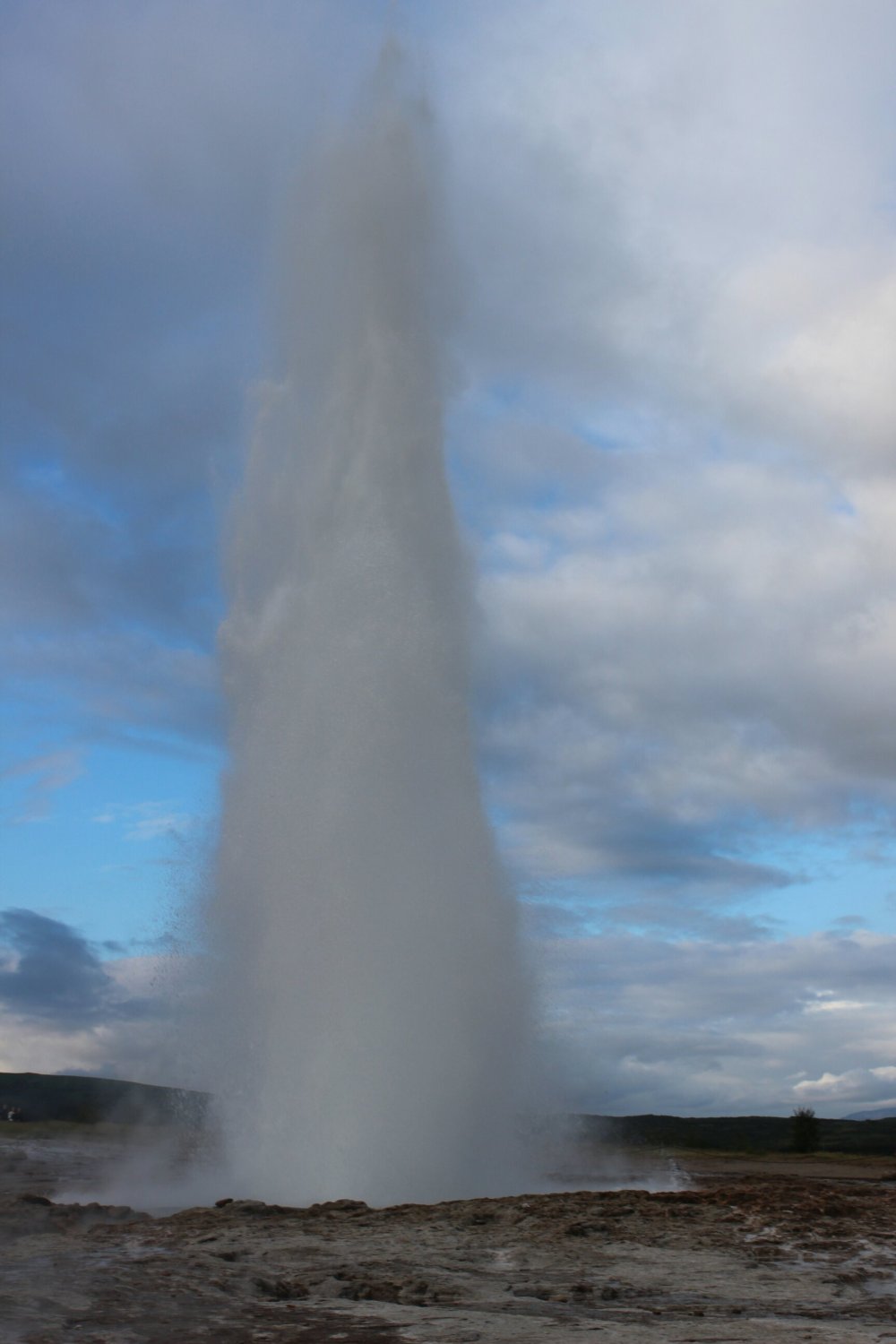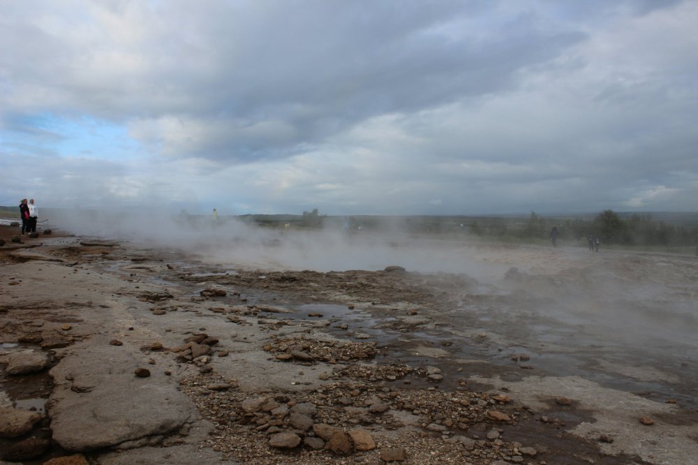 Our final stop for the day was Geysir. We weren’t expecting much. I’m not sure why, but both of us thought it would be kind of a letdown. Boy, were we wrong! What a cool place! The water shot out of the Earth with so much power – it was just so neat to see! Also, it didn’t stink of sulphur to nearly the same extent as the mud pits did a few days ago. We were worried that it would be nauseating. Happy surprise!