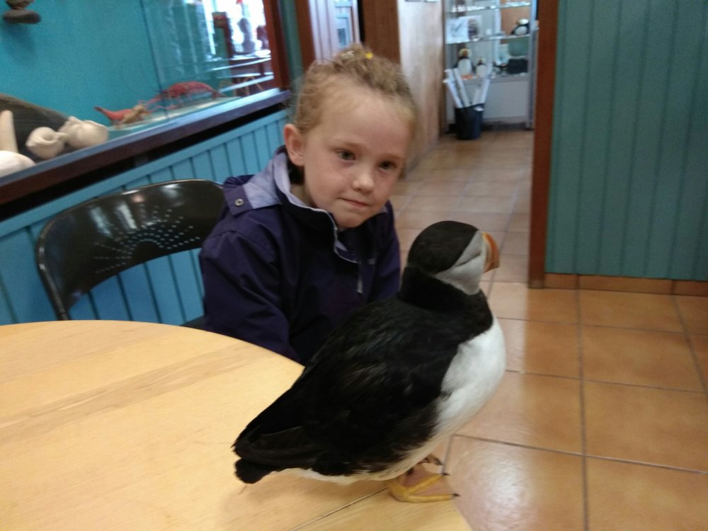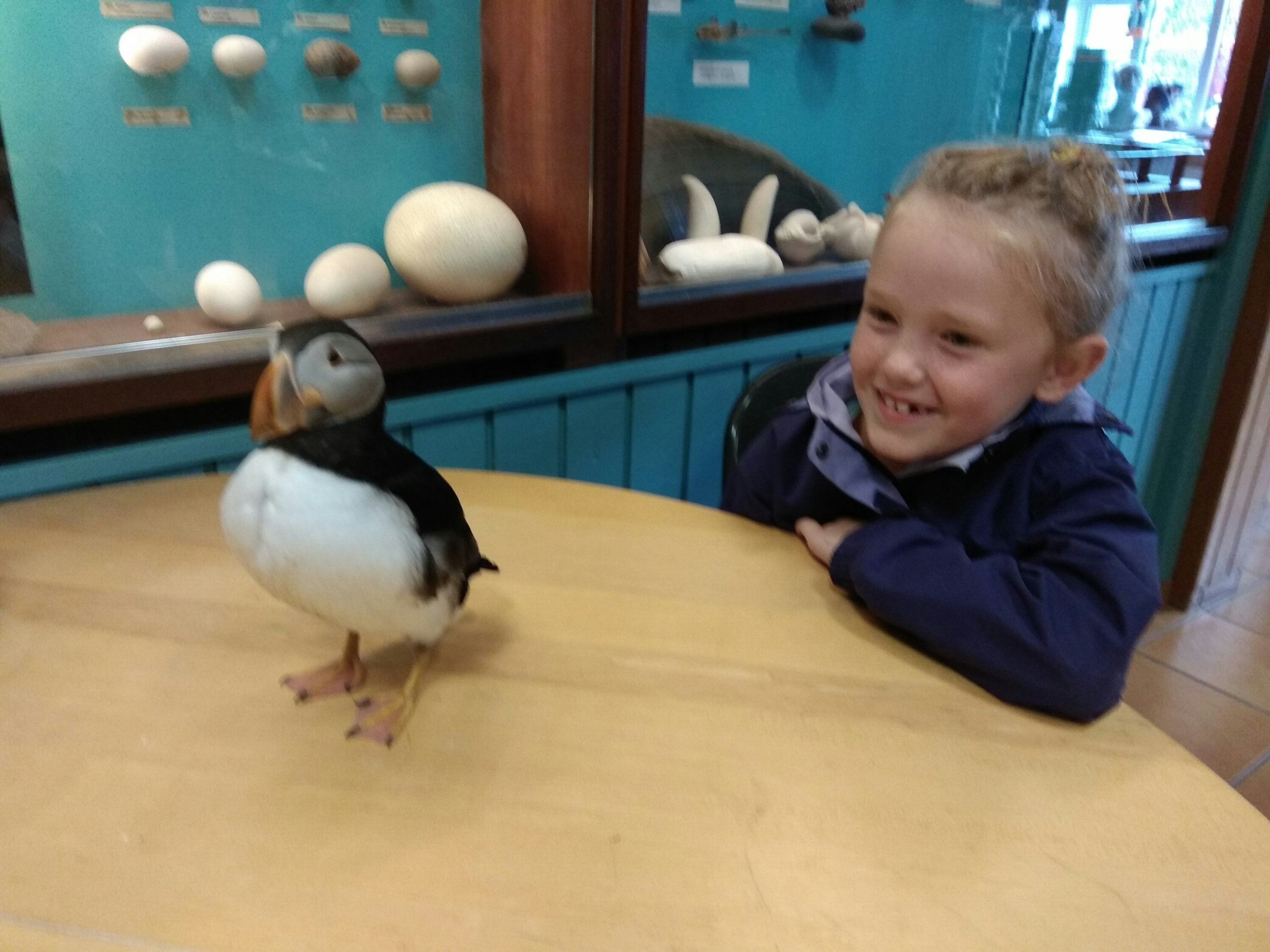 After that, we went to an aquarium when I got to see a puffin up close and a baby guillemot, too. I got to pet the guillemot but not the puffin because then its raincoat would get off and it would be sad because it wouldn’t be able to go in the water.