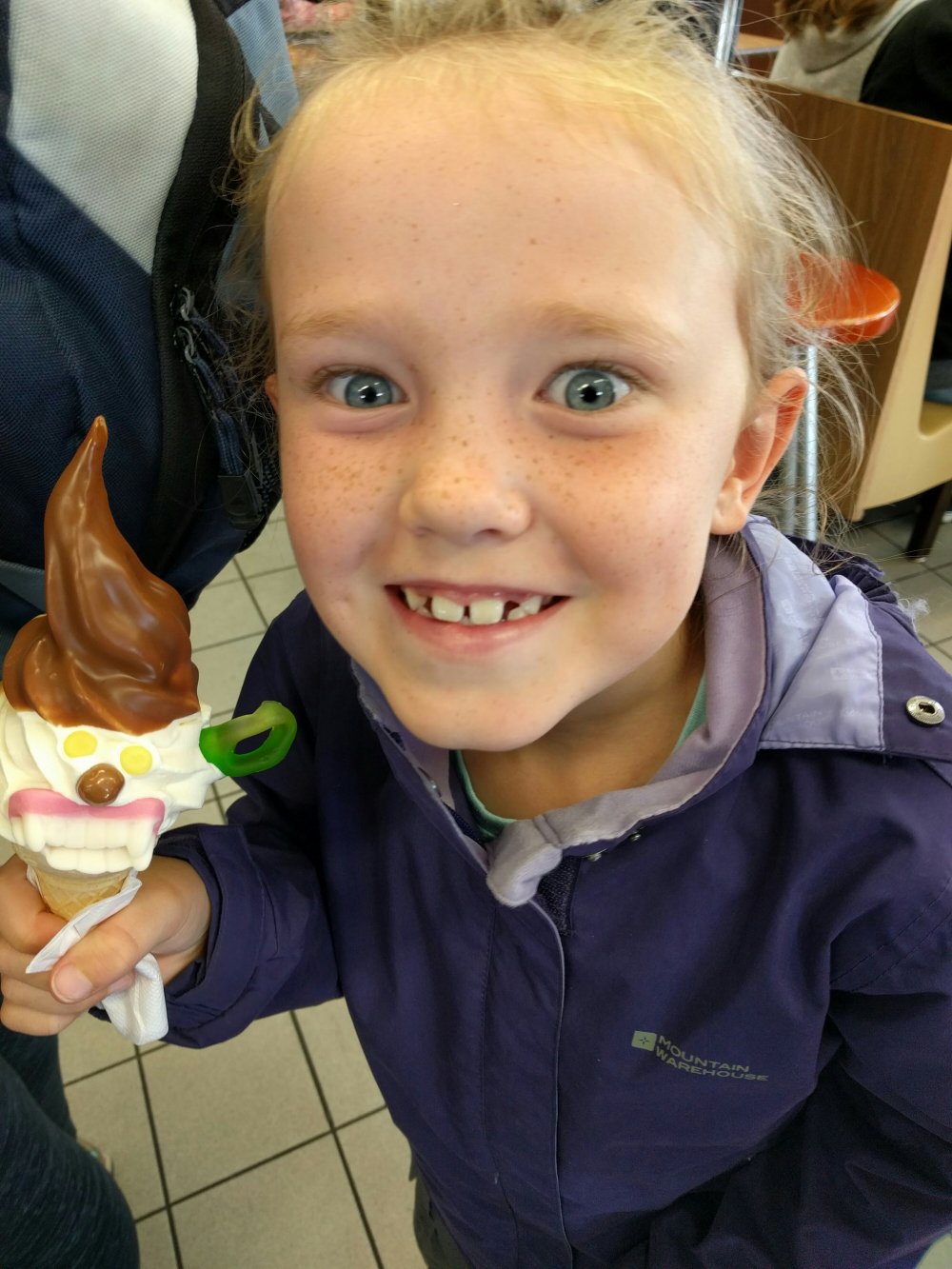 We left the aquarium and walked around. I got ice cream that looked like a clown. I liked it so much – it had gummy eyes, nose, and teeth and it had chocolate dip hair. It was so delicious!