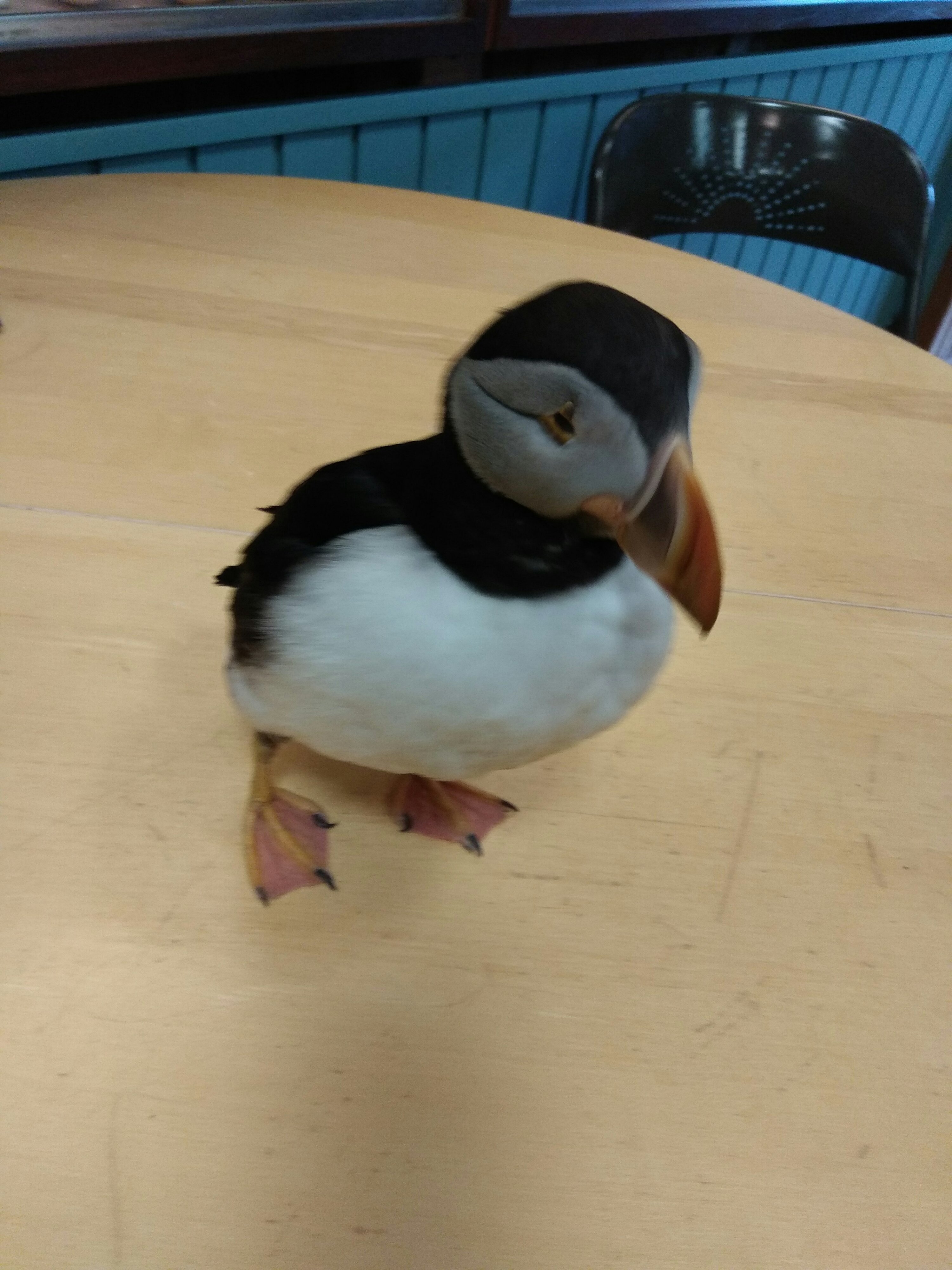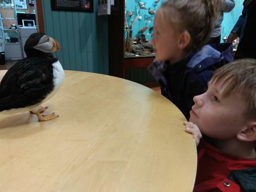 Now a little less hangry after lunch, we scooted back over to the aquarium in order not to miss our brief window. The staff were fantastic and taught us all a lot about puffins and some other seabirds. We all loved meeting Toti the puffin, a six-year old who has been at the aquarium since he was a baby. He had so much personality! The baby guillemot was hilarious. He loved looking at his reflection and “screaming” loudly.