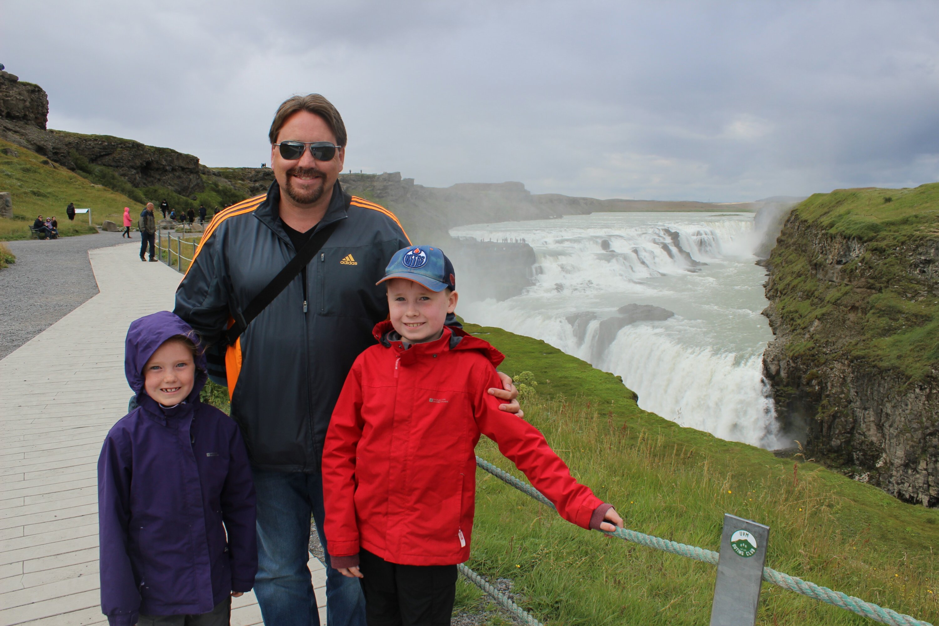 After we left the island, we went to a big waterfall – it was 31m high. Mom said it’s called Gullfoss. It’s the strongest waterfall in Iceland.