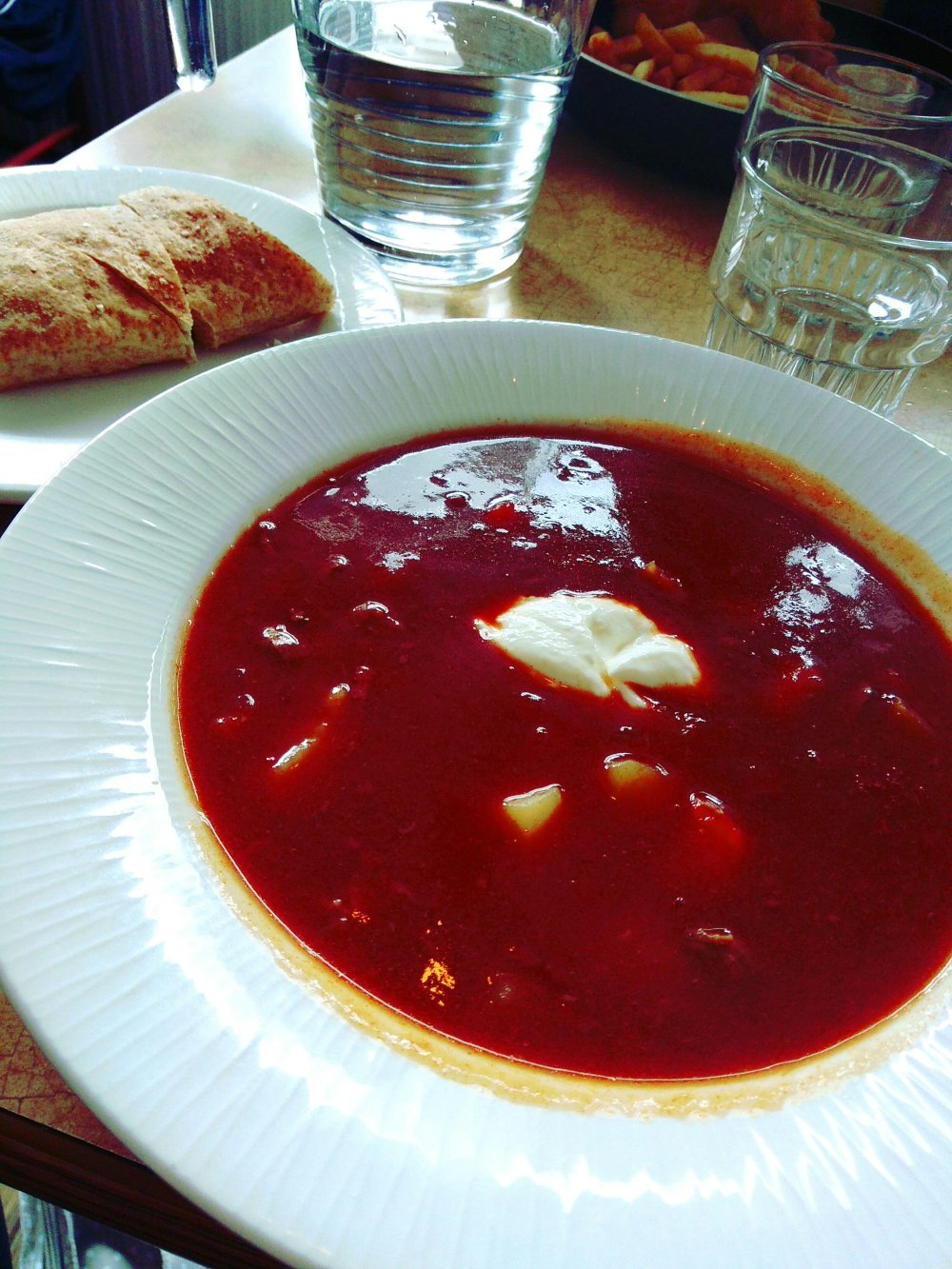 We decided upon Fiskibarinn for our lunch spot. It has a great reputation as an affordable and delicious place to get fresh fish (which Dad was particularly excited about). Well, wouldn’t you know it – the festival caused a big change for the restaurant, too! It has temporarily changed its name to Discobarrin as its a holiday weekend for fishermen and the only fish option was fish and chips. Haha! It worked out well for Mom, at least. She enjoyed a lovely $28 beef soup – with a roll!