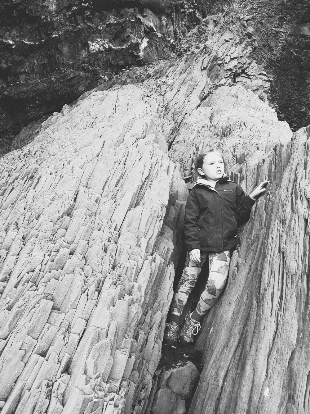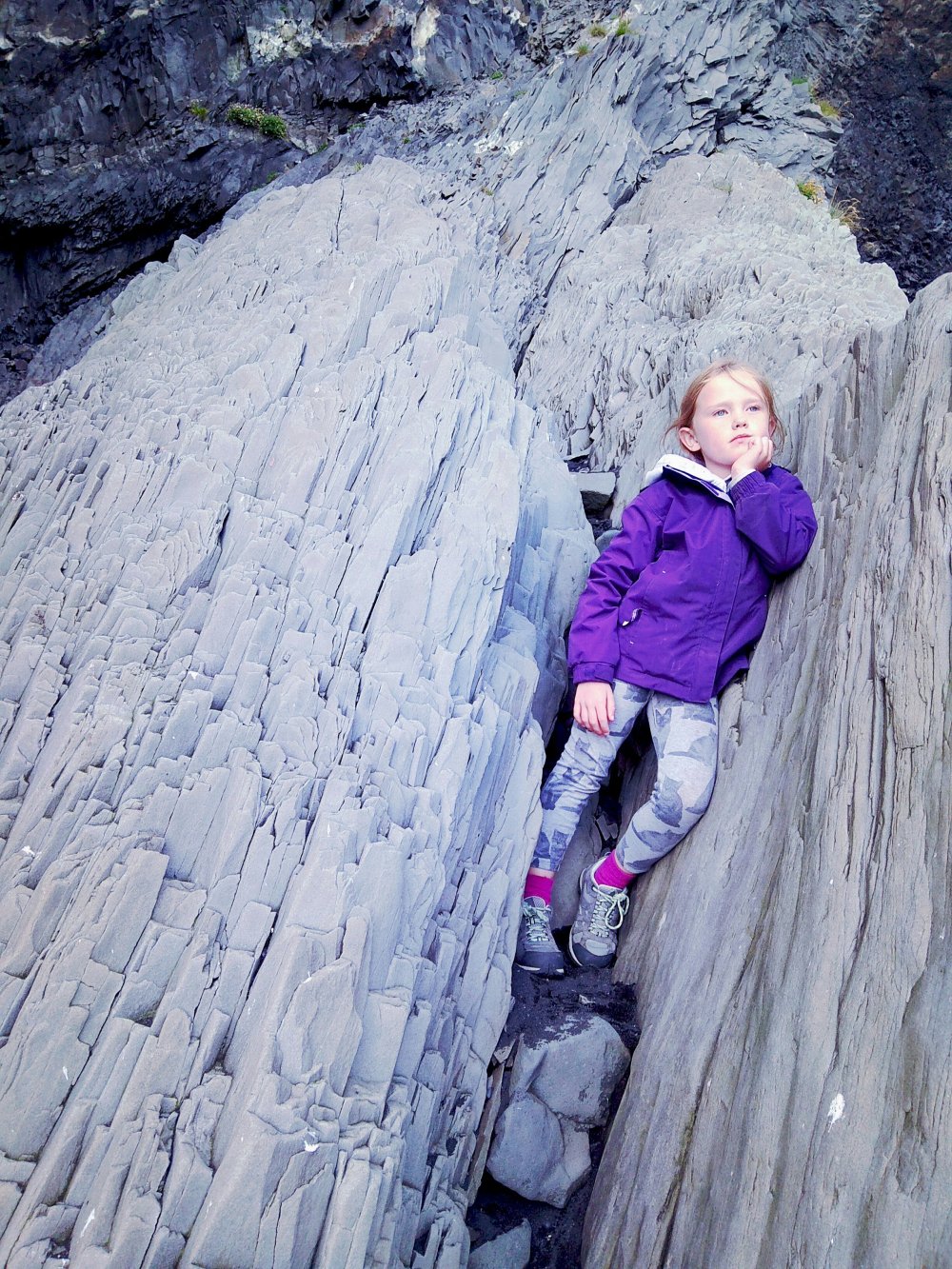 At long last, we walked onto the beach and were met with such amazing rock formations! The high basalt columns and caves were perfect for climbing and exploring. Sam wasted no time as he scrambled right up and sat upon a rocky throne. Charlotte was a bit more hesitant at first, but that didn’t last. Soon she, too, was trying to earn a mountain goat badge!