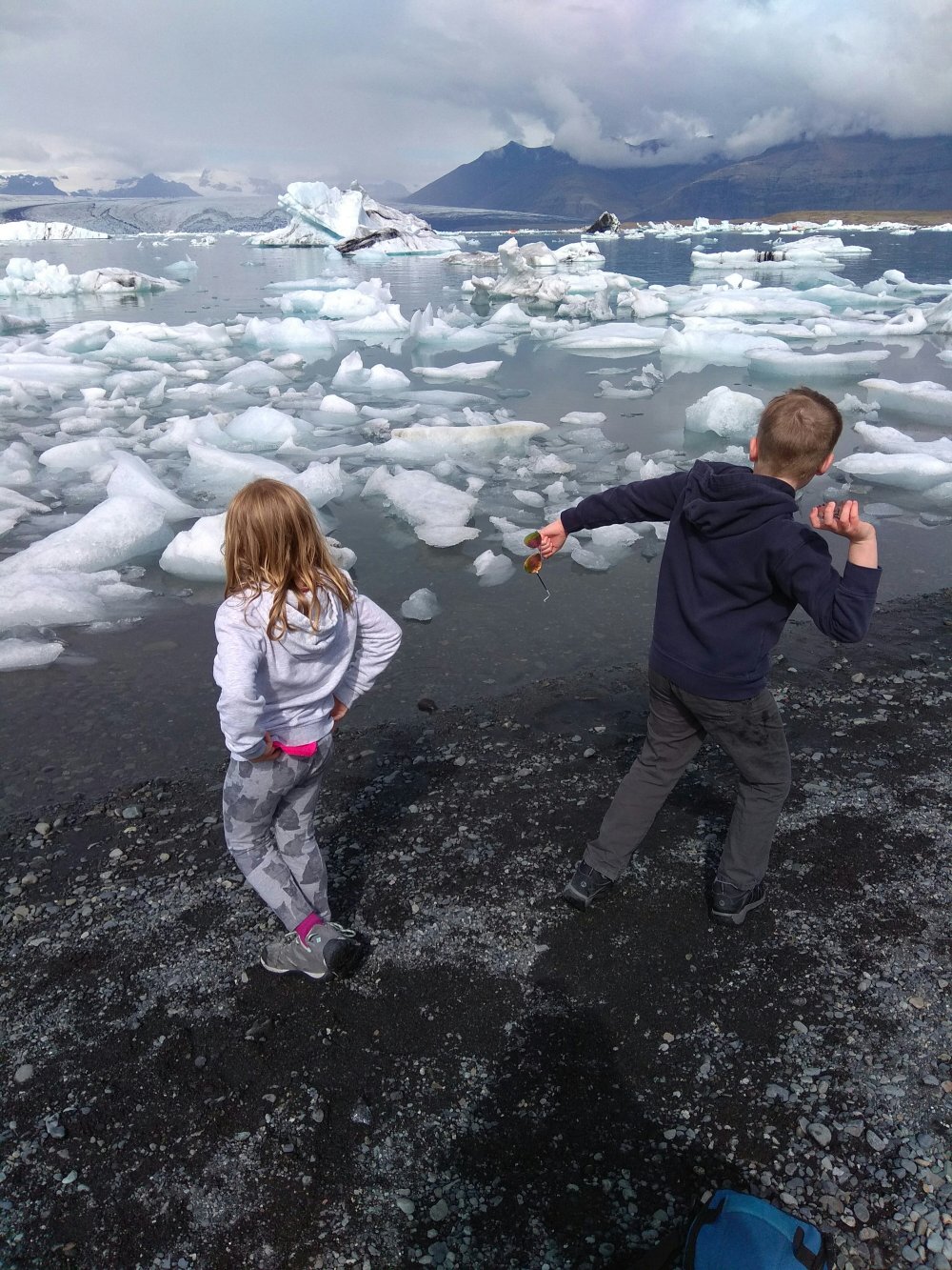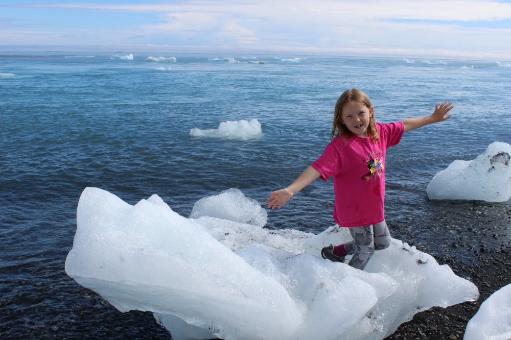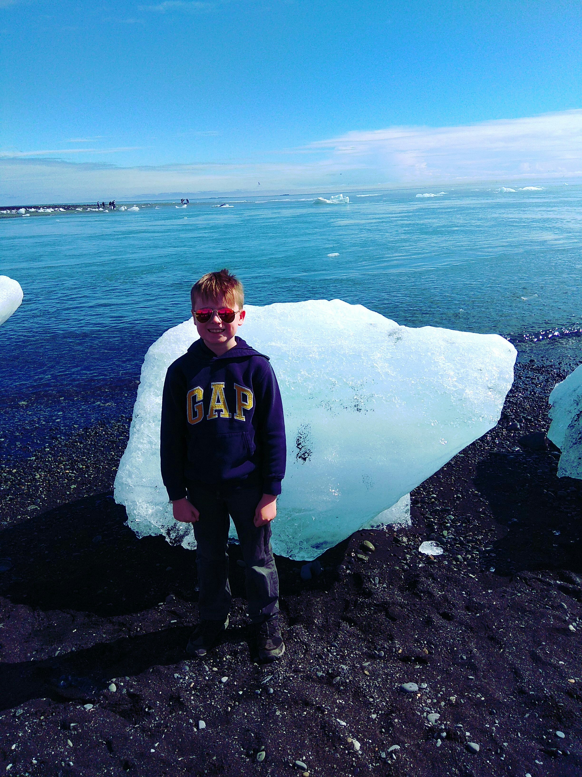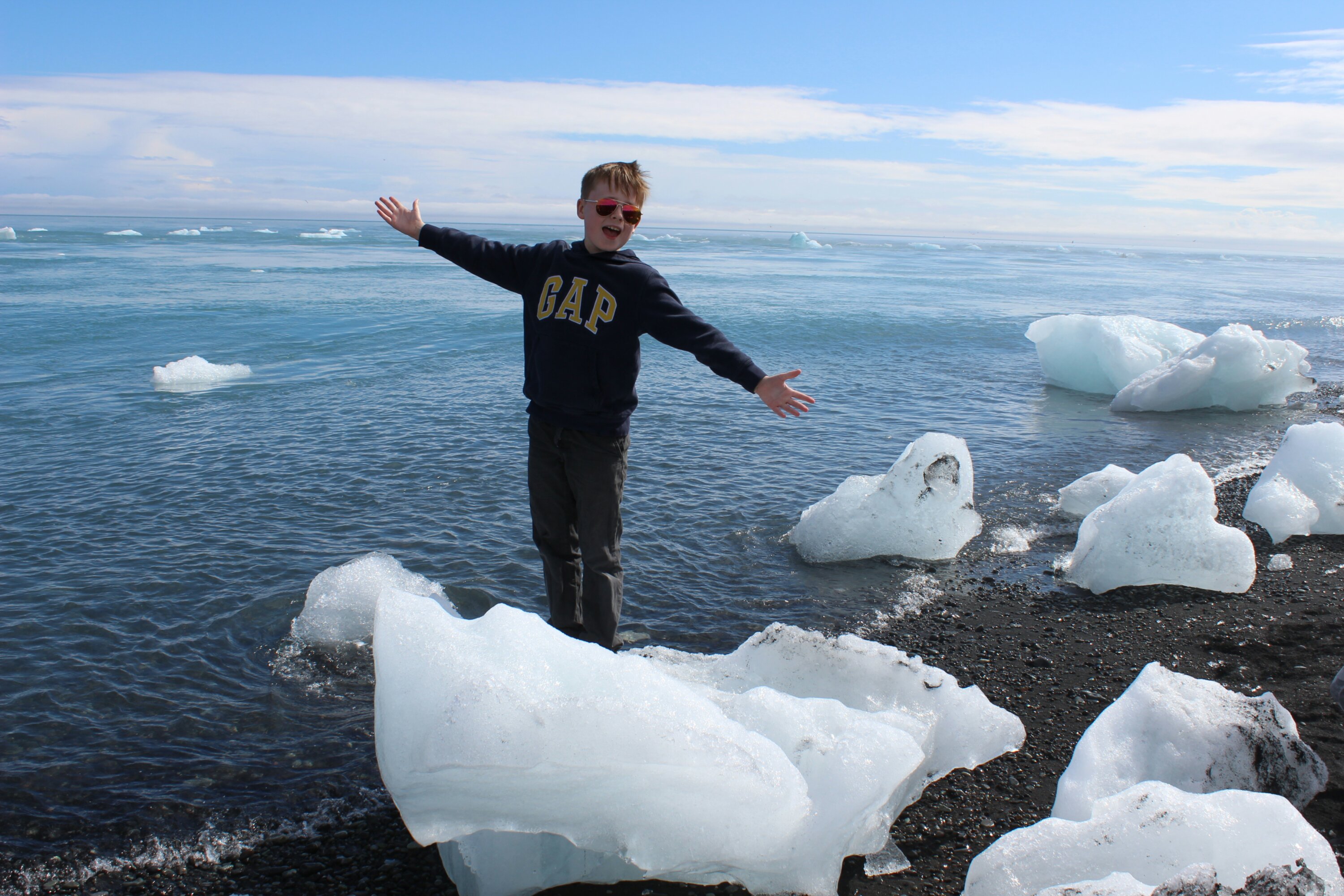 We also went to a big lake full of icebergs that kept breaking off and floating into the ocean. There were some seals in the lake, too. I skipped some rocks into the lake. With a piece of ice I chipped from an iceberg, I managed to skip it four times.