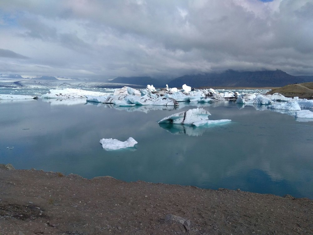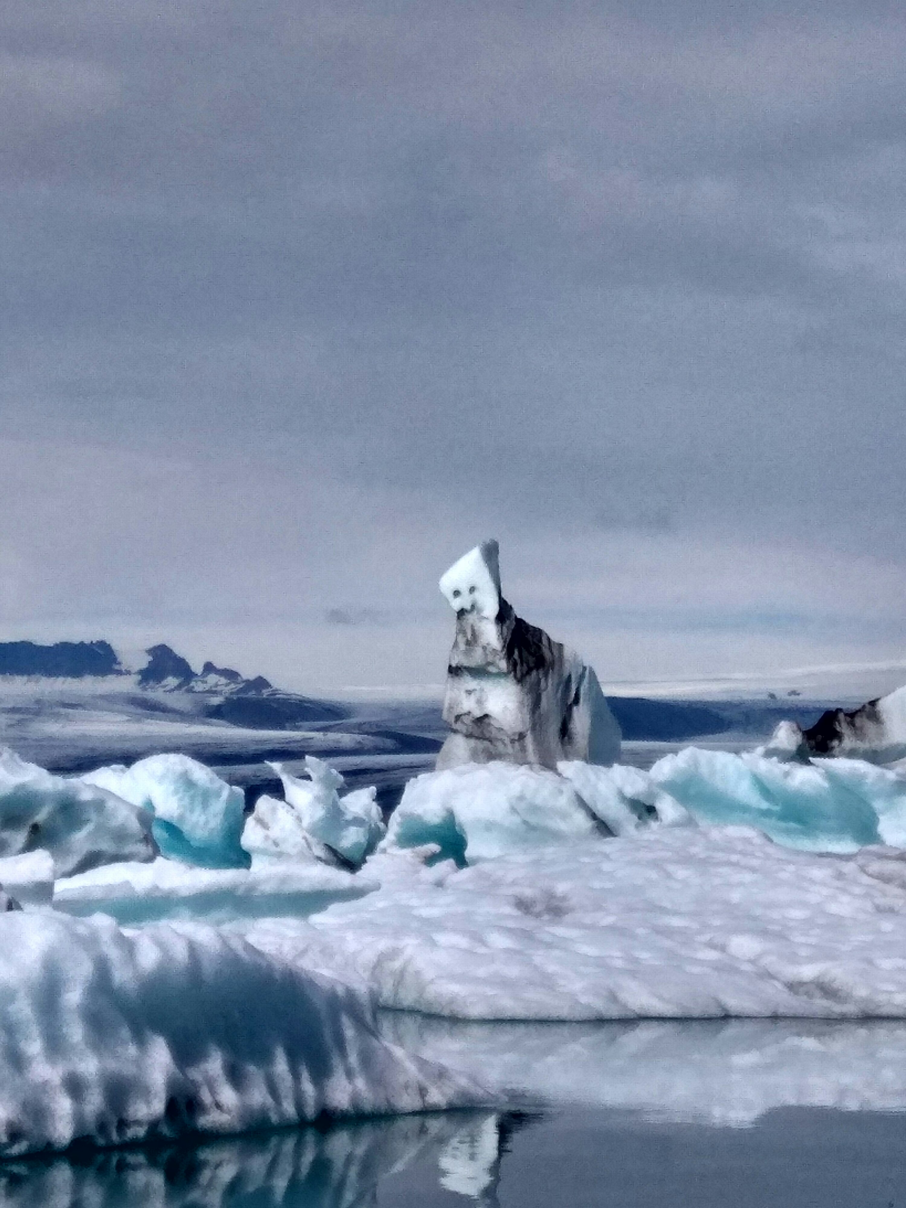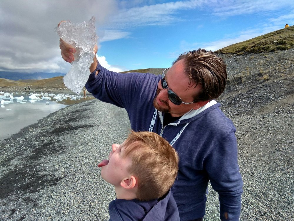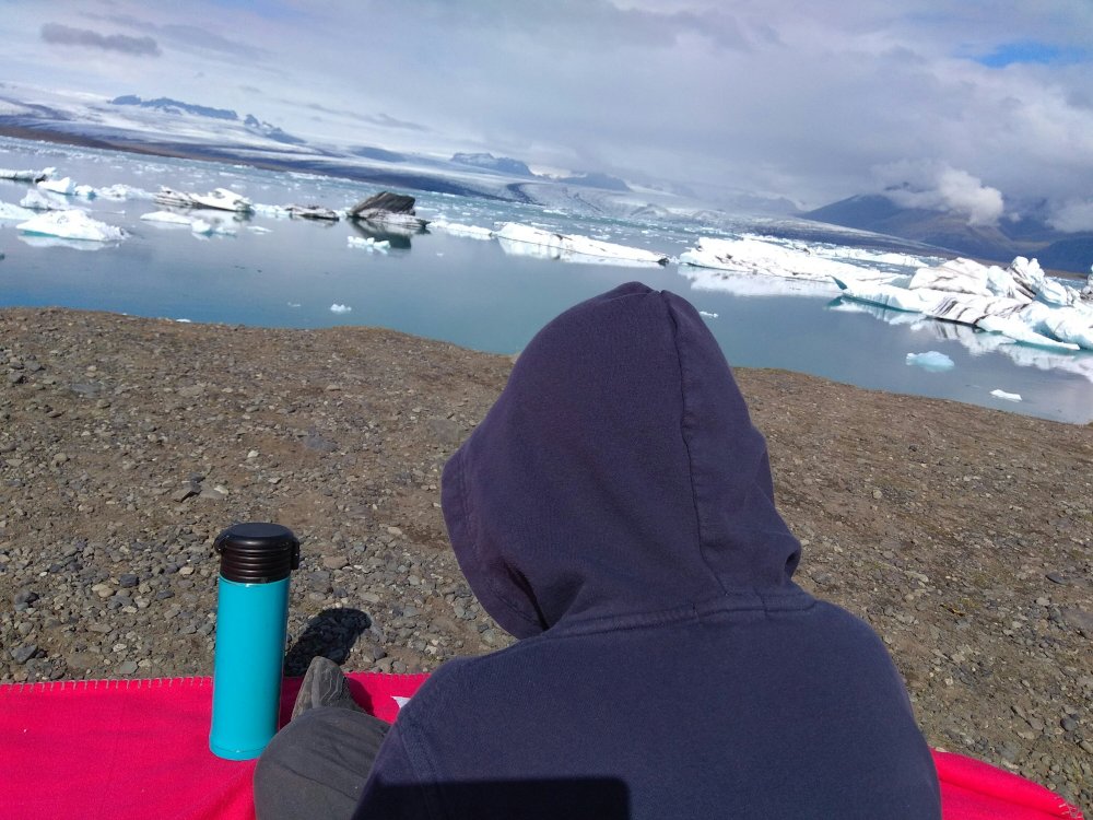 We also went to a big lake full of icebergs that kept breaking off and floating into the ocean. There were some seals in the lake, too. I skipped some rocks into the lake. With a piece of ice I chipped from an iceberg, I managed to skip it four times.
