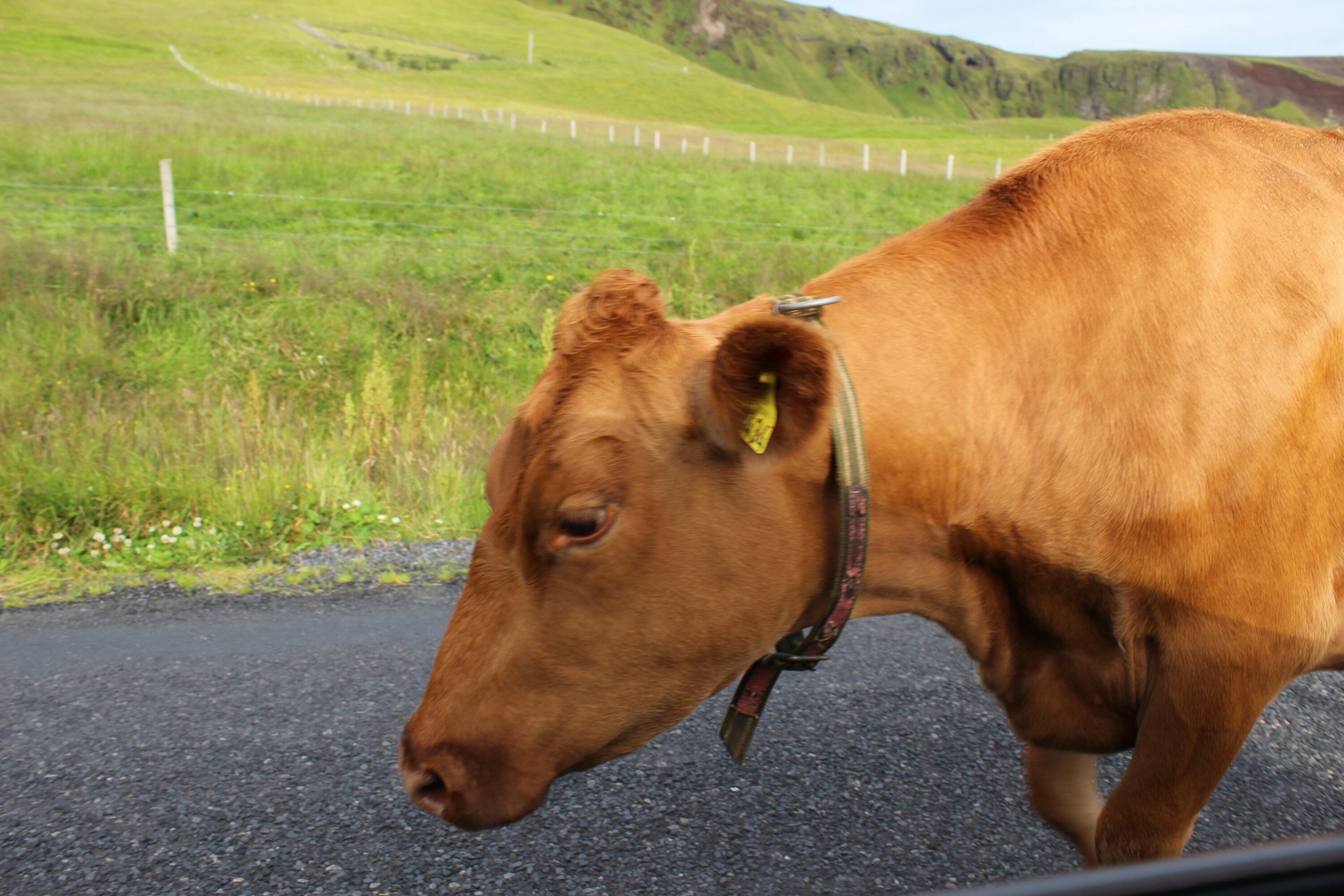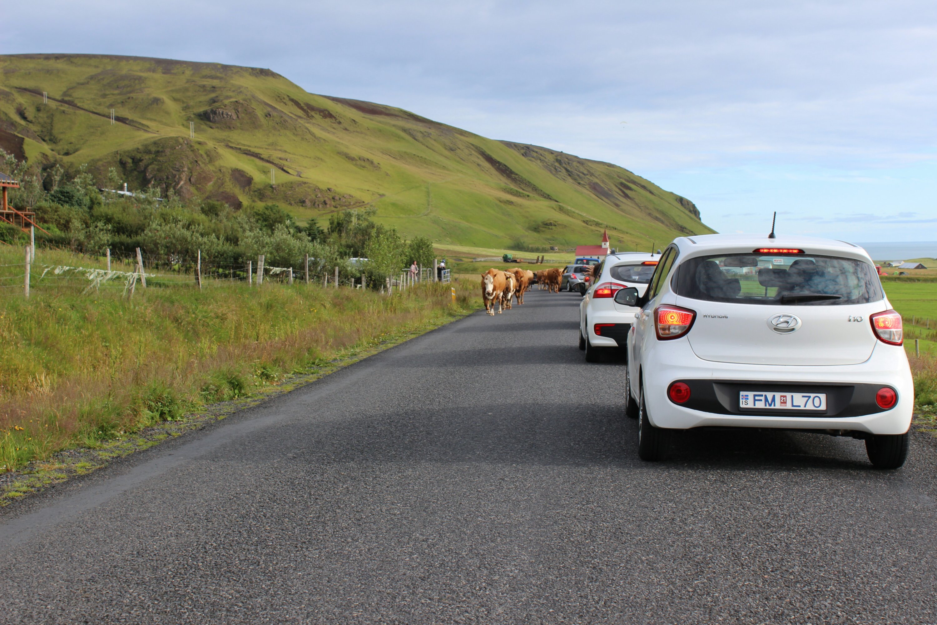 We traversed the mountain, got stuck in a traffic jam, Iceland-style – a herd a cattle was wandering along the road.