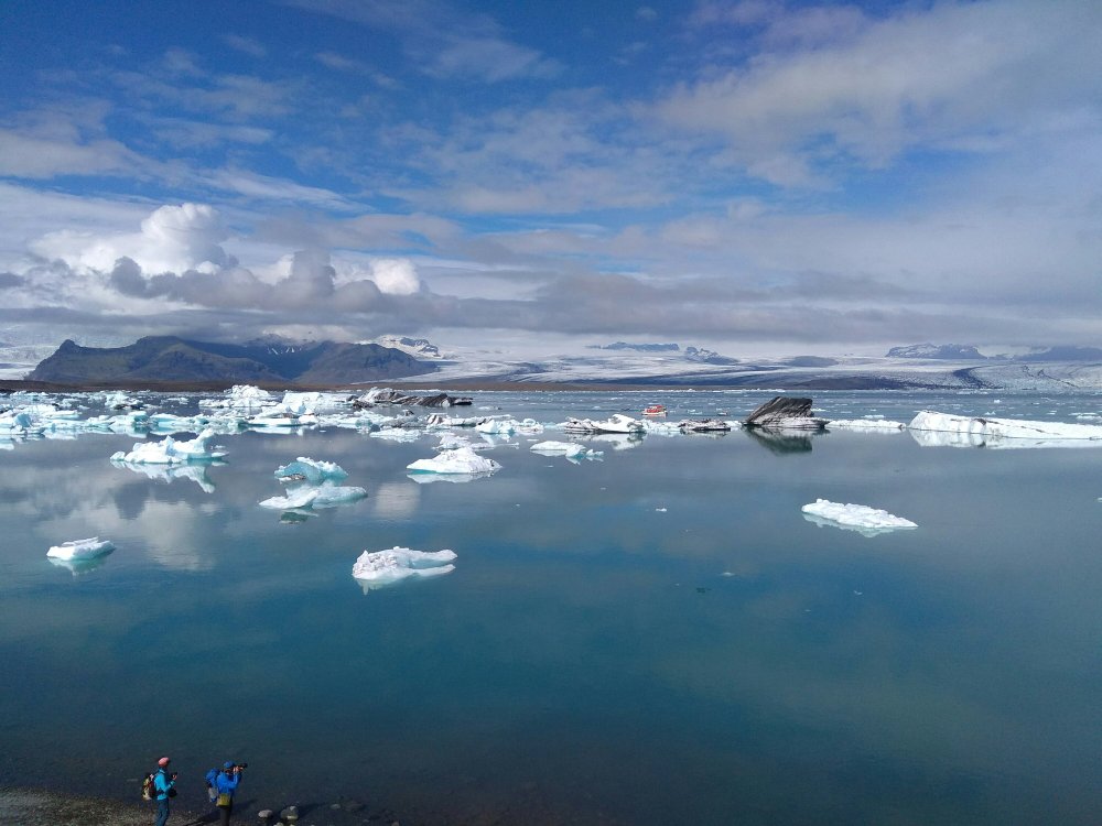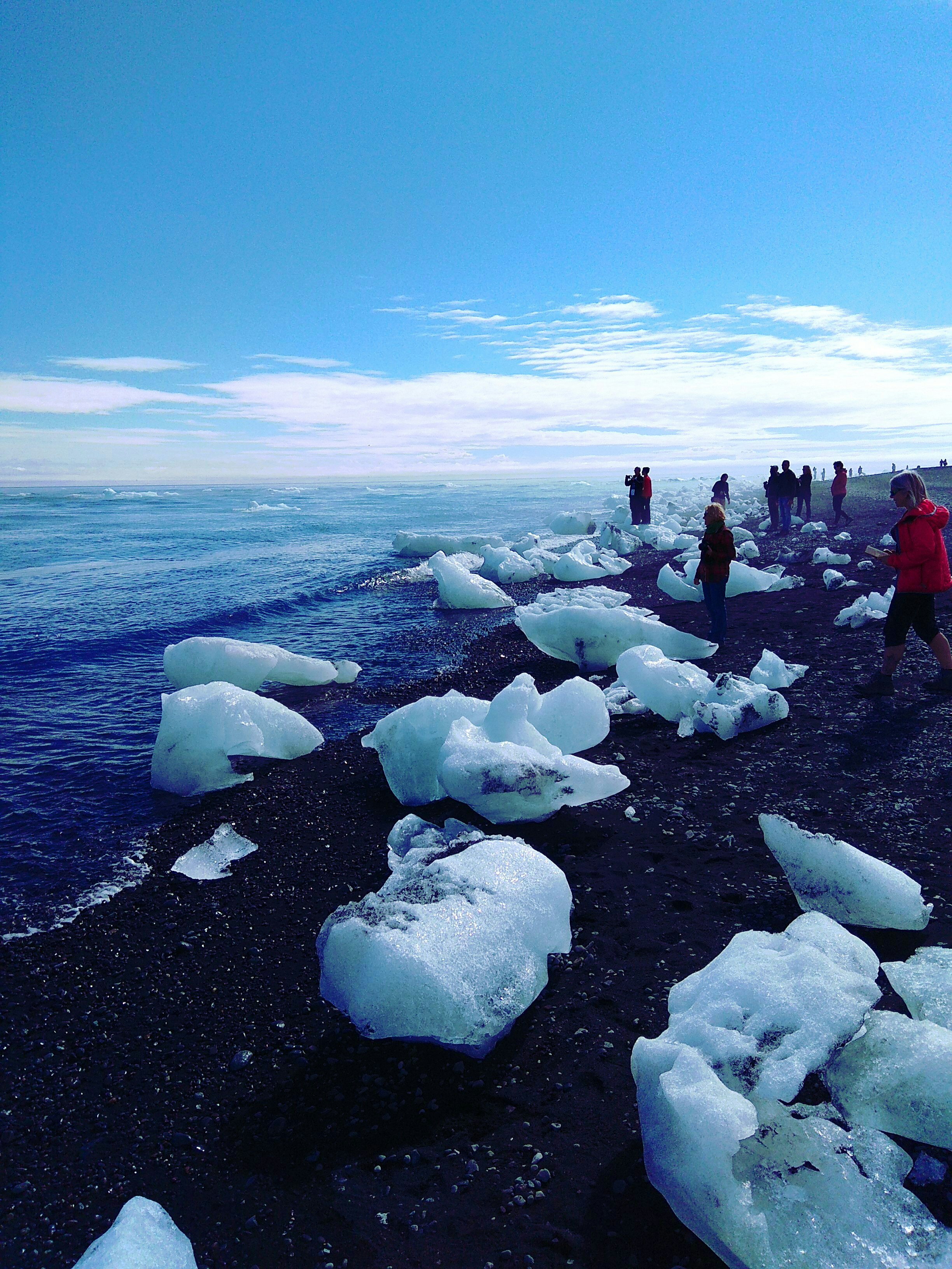 We continued on our journey past countless waterfalls, turf houses, and volcanoes, and Iceland’s biggest glacier – Vatnajokull, pausing for a couple bathroom breaks and to examine some moss-covered rock formations. We finally reached Jokulsarlon around noon.