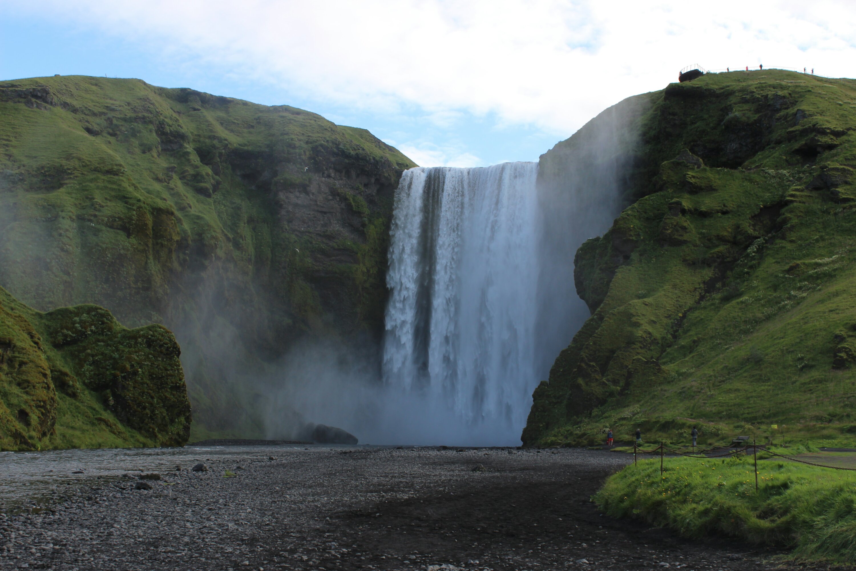 Today we woke up at five in the morning again to go on another big trip. About two or three hours into the drive, we stopped at Skogafoss, located on Skogavegur in the village of Skogar. It was over of the best waterfalls I’ve seen on our trip. It was really big and wide and there’s a legend that goes with it. It goes like this – A group of people noticed something sticking out of the waterfall. It turned out to be a treasure chest, but the handle fell off. They went to town to tell others, but when they went back nobody could ever find it again. They think it’s still behind the falls somewhere.