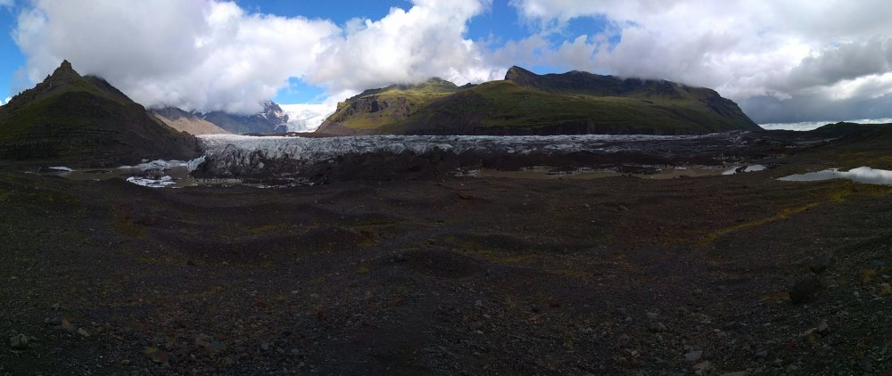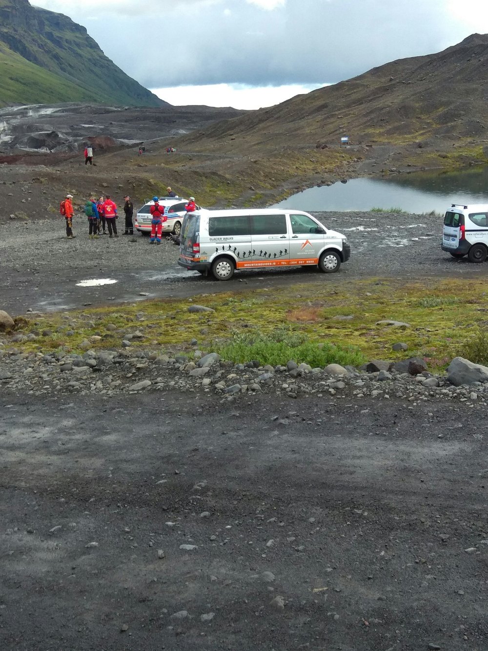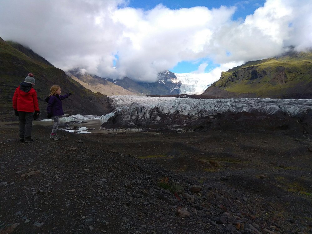 We detoured when we found a little dirt road leading to a glacier hike. We followed it and enjoyed a great little walk and an impressive view. There were some glacier walk tour groups in the distance, and we briefly debated going onto the glacier ourselves (Mom and Dad were a firm no, but the kids really wanted to). In one of those rare cases where our reasons became immediately obvious, police cars, ambulances and other emergency vehicles came rushing down the lane. About 10 people came pouring out of the vehicles and started putting on climbing gear and gathering emergency equipment. Then, in the distance, we could see one of the tour guides rappelling into a glacier. Someone had fallen into a crevass or fissure! We left the area to give the rescue team room to work. We said a prayer together for the victim and are hoping he or she will be okay.