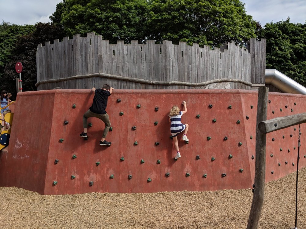 We enjoyed a quick breakfast courtesy of our Airbnb hosts and then drove in to Cork. We parked downtown and then walked a couple kilometres to Fitzgerald’s Park (which was recommended by our Airbnb host). It was huge and included a band shell, a fairy walk, a museum, a large pond, and a huge playground. The kids had a blast looking for fairy doors, checking out waterlilies, and climbing all around the playground. We’ve been to so many parks already on this trip that Brad and I having been calling it our Irish Playground Tour.