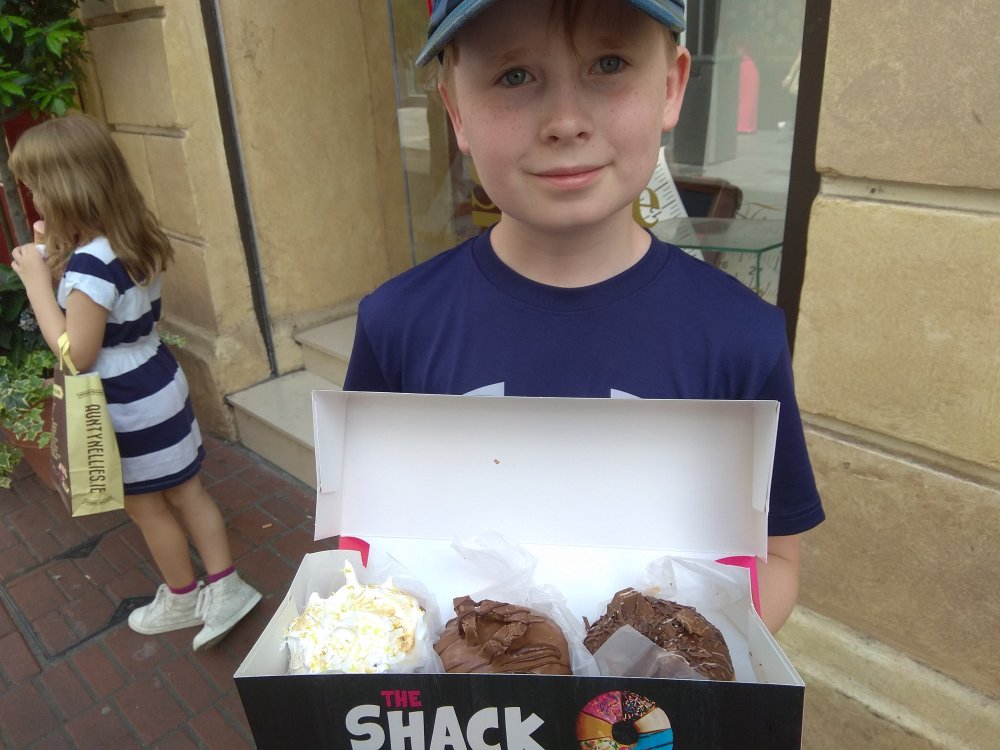 Things started to look up, though, when we told the kids they could pick a treat for our afternoon snack. They chose a little shop called “The Shack” which sold gourmet donuts and gelato. Everyone was happy. I had a heck of a time deciding, but eventually settled on the lemon meringue donut. Great choice by me!