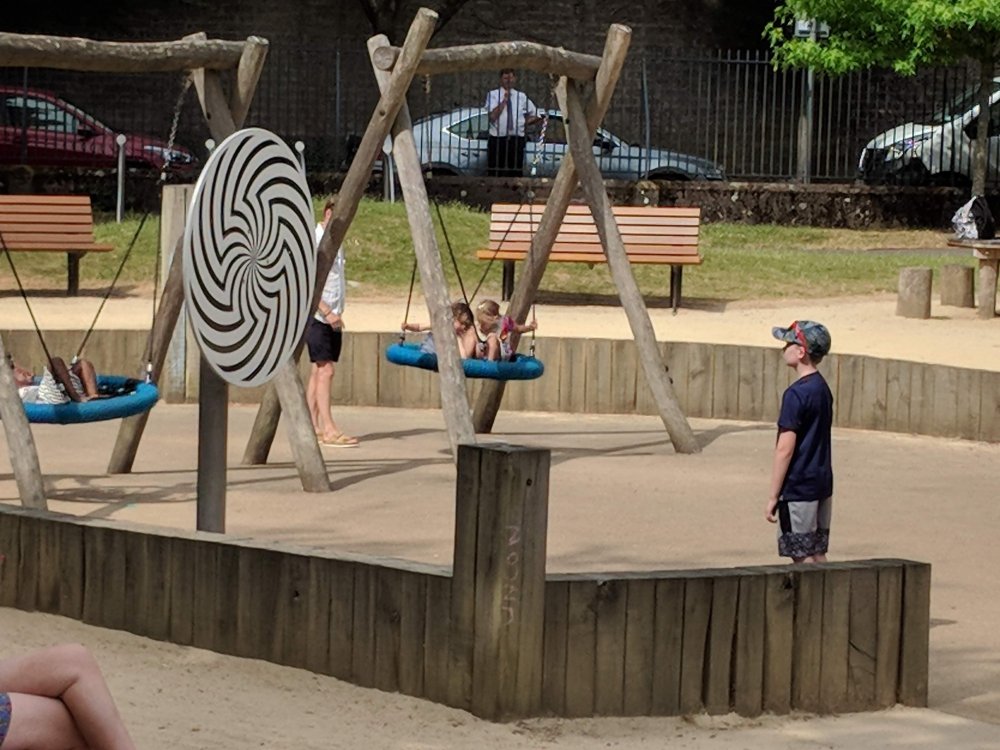 We walked about 20 minutes to get to a big park. We played at the park – my favourite part was the spinner.