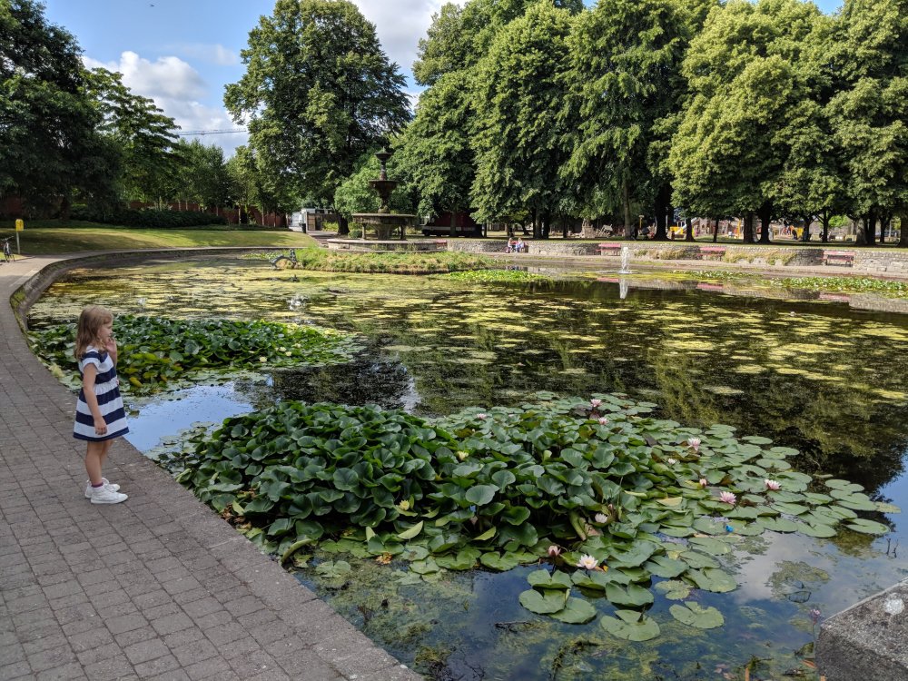 We enjoyed a quick breakfast courtesy of our Airbnb hosts and then drove in to Cork. We parked downtown and then walked a couple kilometres to Fitzgerald’s Park (which was recommended by our Airbnb host). It was huge and included a band shell, a fairy walk, a museum, a large pond, and a huge playground. The kids had a blast looking for fairy doors, checking out waterlilies, and climbing all around the playground. We’ve been to so many parks already on this trip that Brad and I having been calling it our Irish Playground Tour.