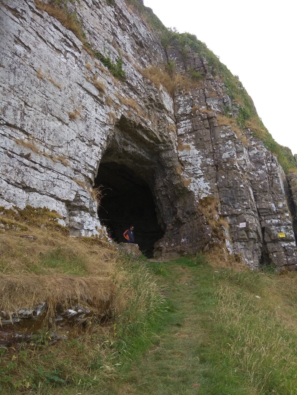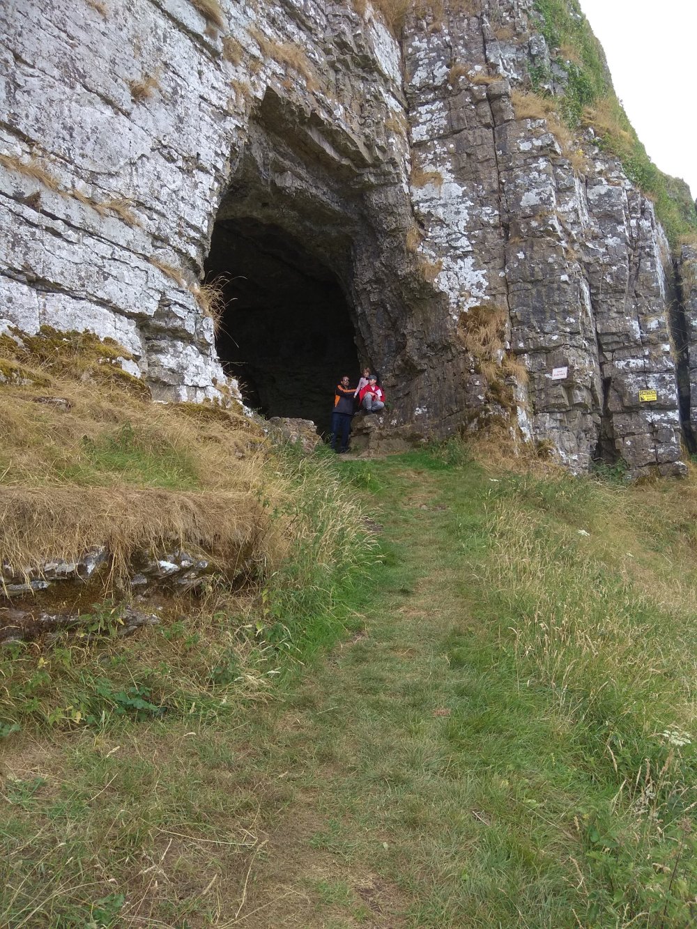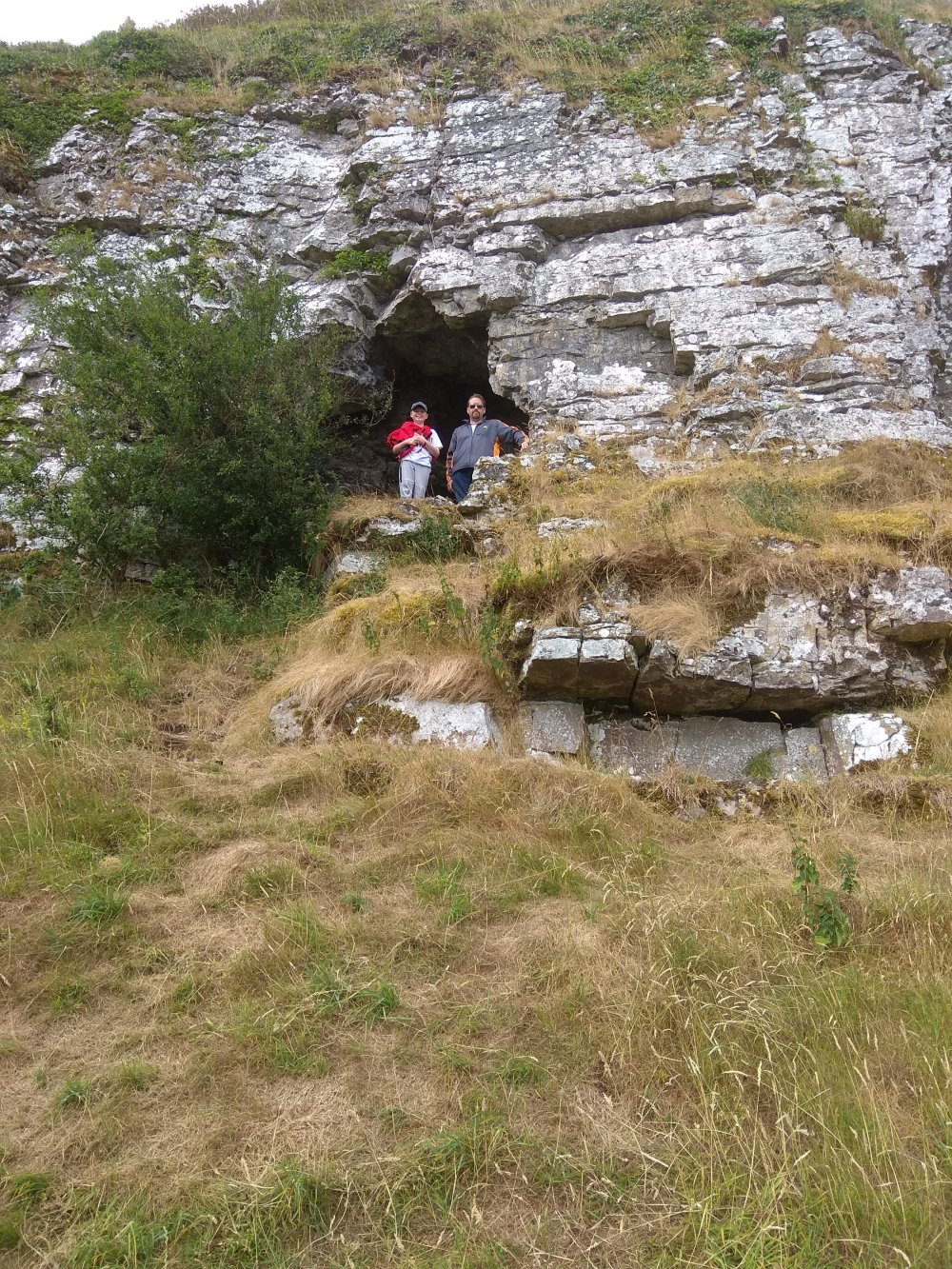 Dad and I were the only ones who went to a cave that was hard to get to. I had to climb up the edge of the cliff and duck under an overhang to get there.