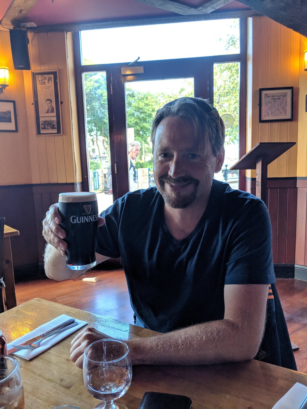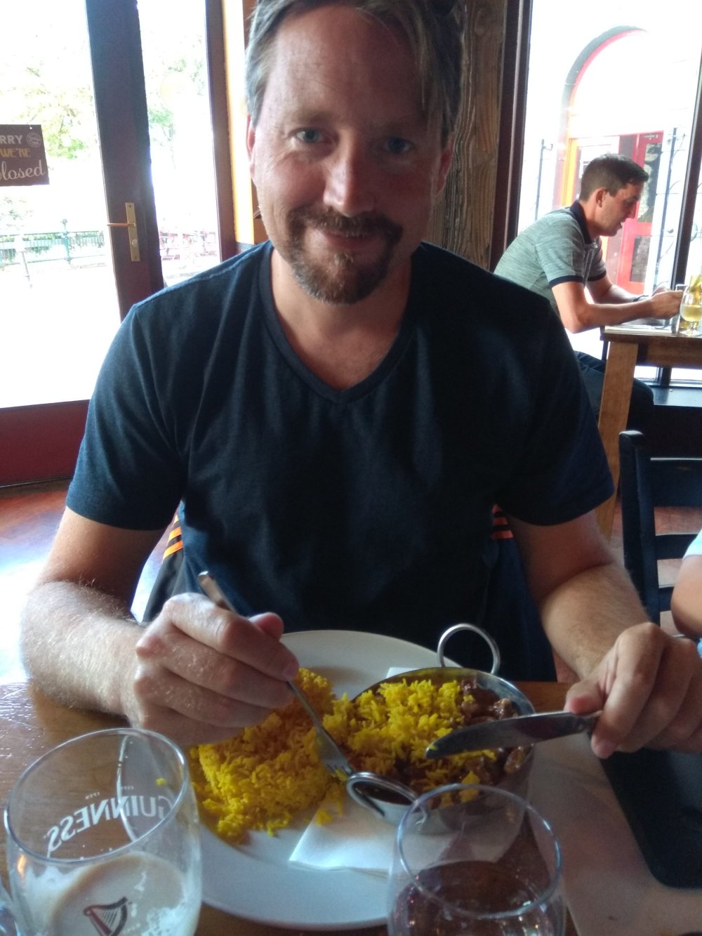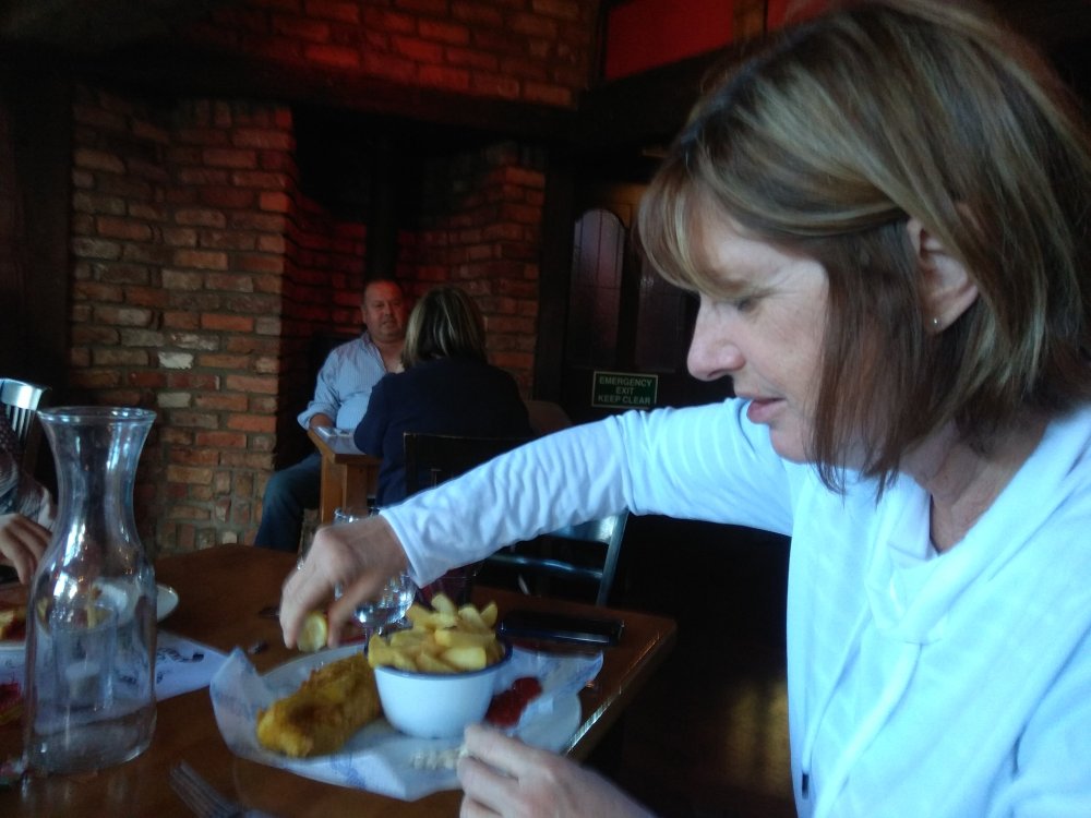 We went to dinner in Sligo. The restaurant was called Fiddlers’ Creek. I had fish goujons and chips. For dessert, I had a Snickers cake.