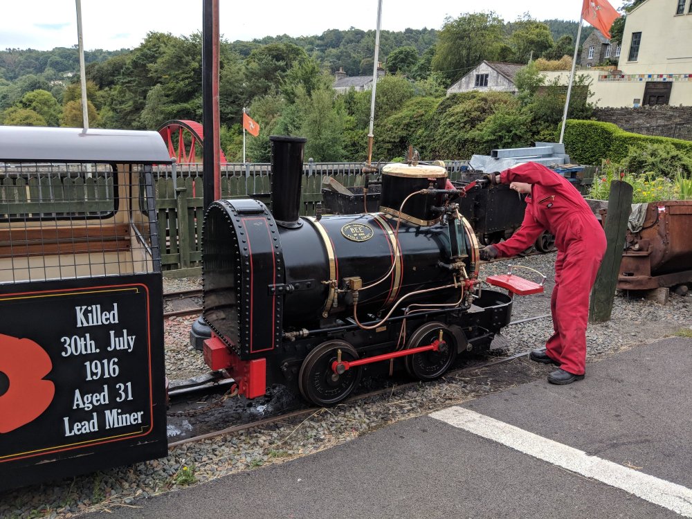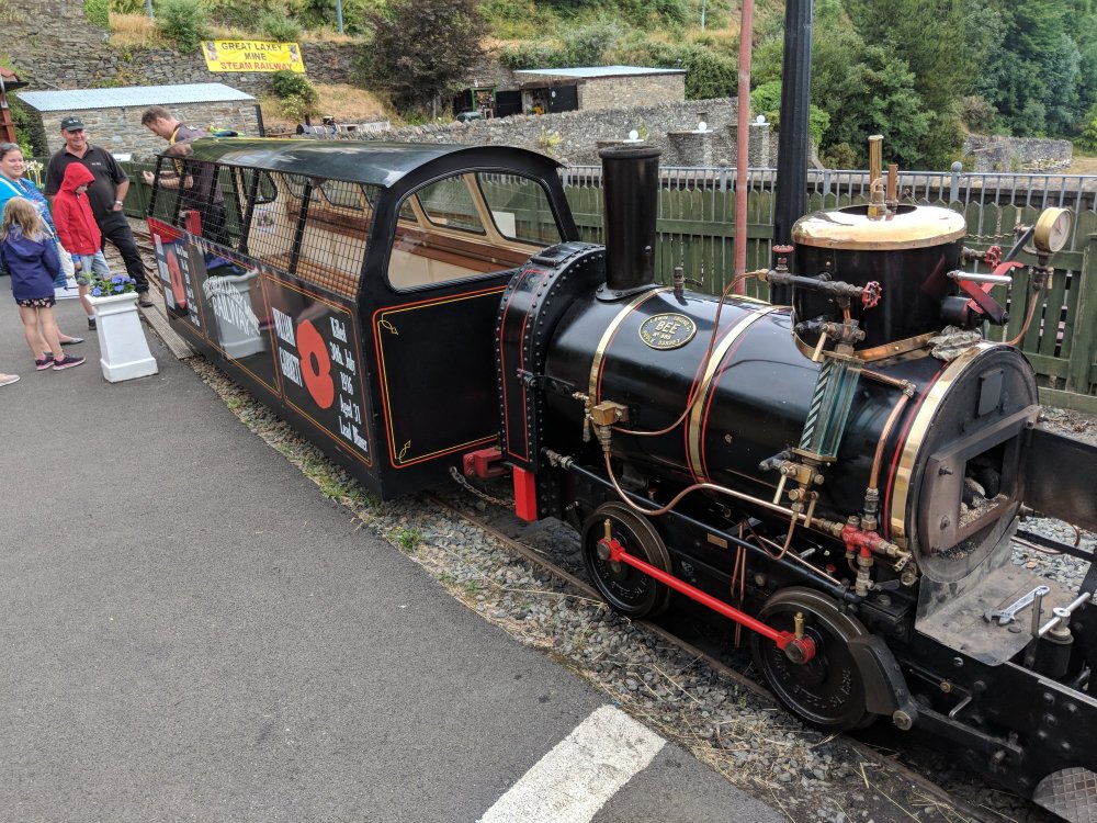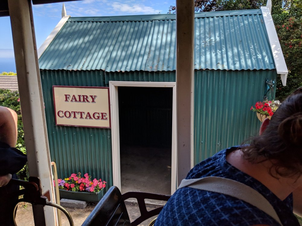 Once our luggage was safely left at the hotel, we got back into the horse tram to its terminus to connect with the electric tram. We took that to a little village called Laxey, home to the world’s largest water wheel. We started off towards this attraction and noticed a little steam train that would take us through part of the old Laxey mines. We got onto the mini train, learned a bit about the history of the are, and enjoyed a ride through a tunnel. Then we made our way to the water wheel.