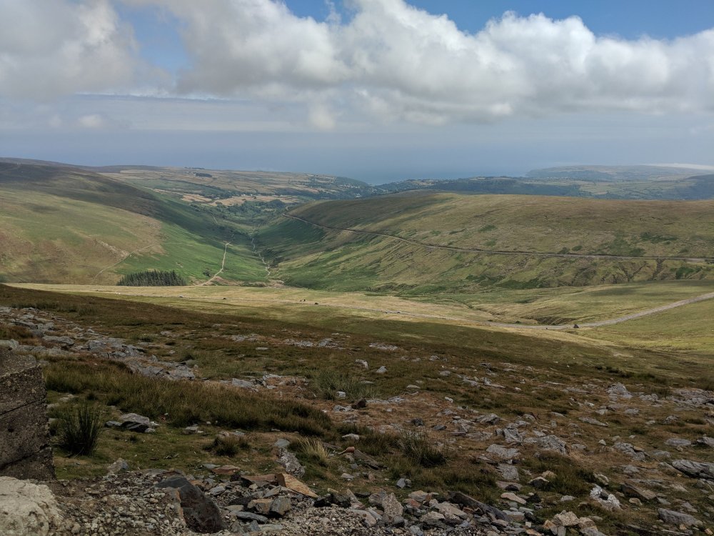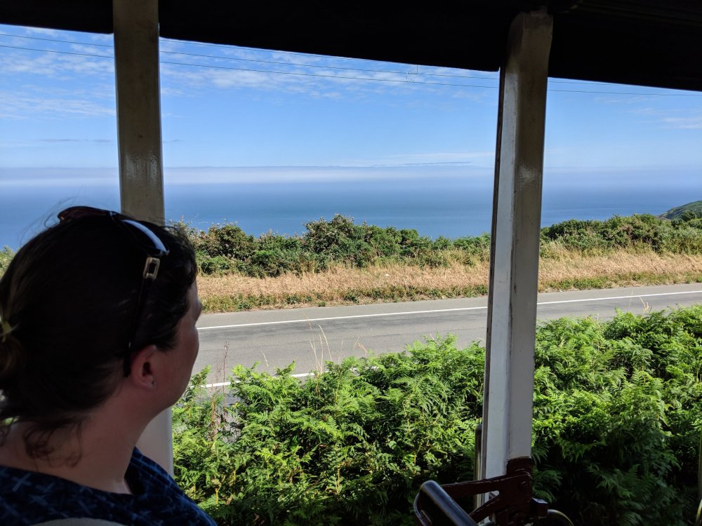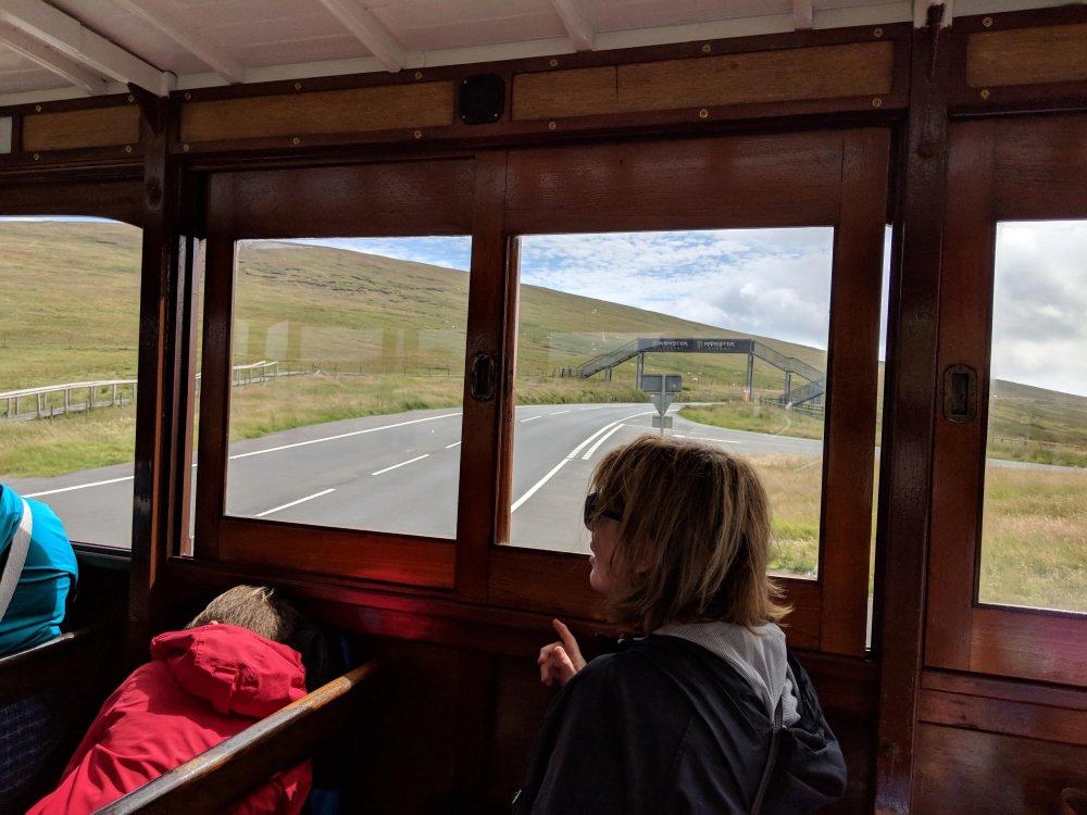 We had soup and sandwiches and then boarded another electric train to go up Snaefell mountain, the island’s highest point. Watching the scenery varying between coastline, small villages, farmland, and leafy green forests, I can honestly say that this island is one of my new favourite places on Earth.