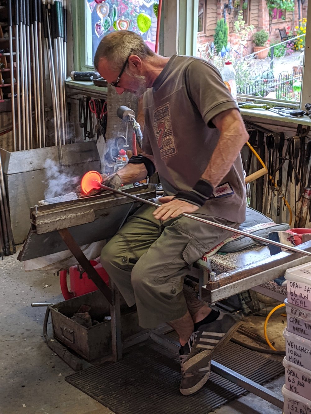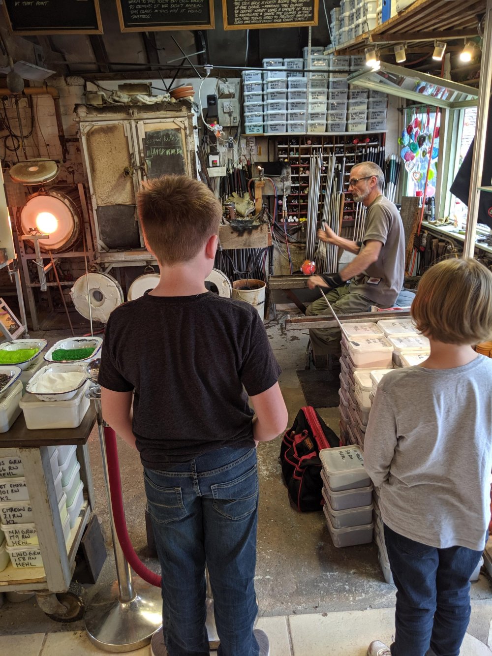 After that we went to a place called Jinney Ring, which is a big craft centre. It’s a bunch of wooden buildings around a big field with a pond in the middle. There are lots of people working at it who each have their own little shops where they create different things. For example, there’s a glass blower, chocolate maker, and violin carver.
