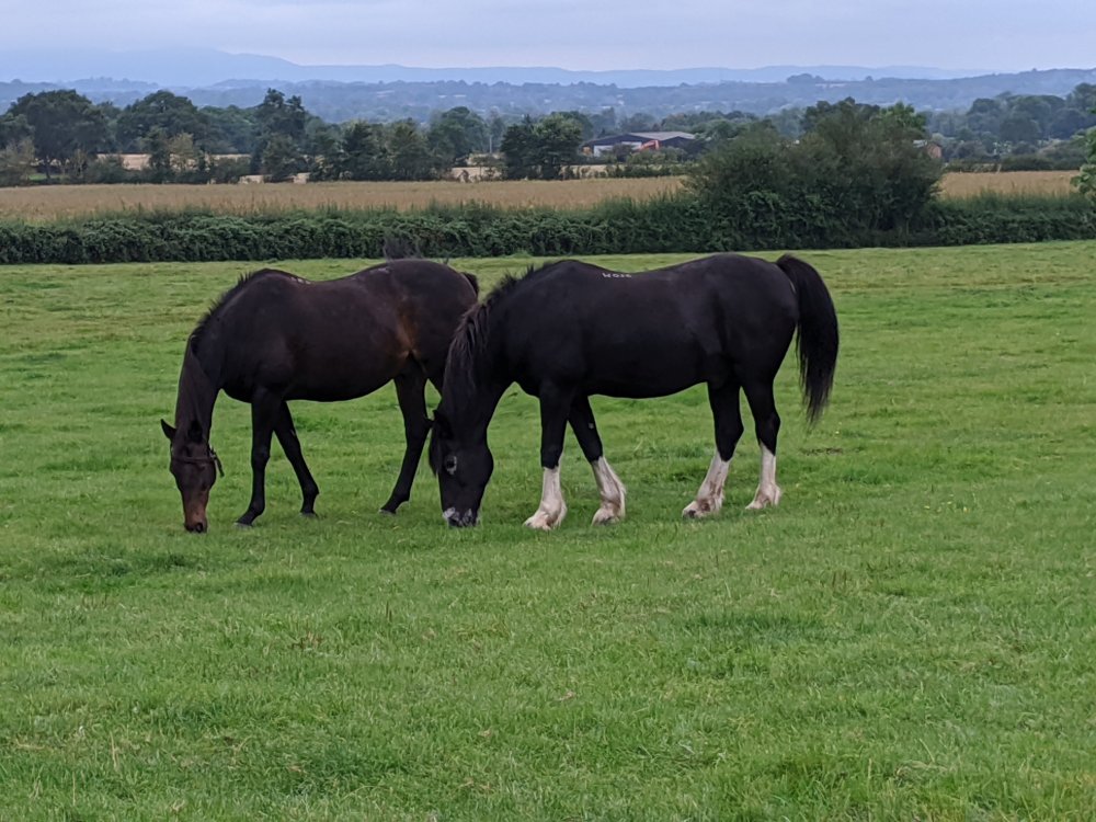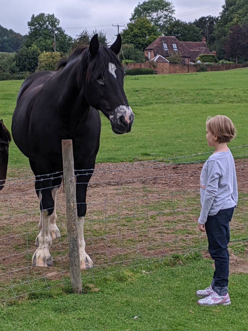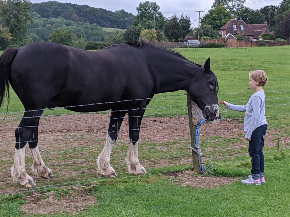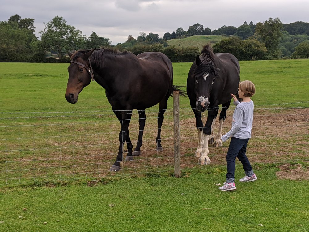 After that, I saw two horses. They were both boys. One was brown and I named him Ryan. The other one was black with white ankles, and I called him Raven. He walked right up to me. I petted him a lot and he really liked it. I found some apples and fed Raven. He wouldn’t take it from my hand at first, so I put it on the ground, and he ate it. I found a second one and have it to Ryan. I started to really become friends with Raven. I hope to see him again.