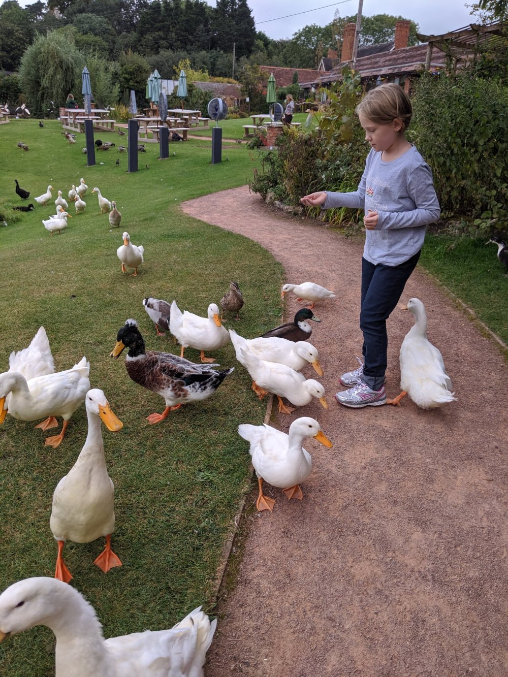 I saw lots of people feeding ducks, and a man gave me some duck feed. It was so cute – they all ran up in started eating the food. They were a bit aggressive. They all fought over the food. One of them had a sore foot. My mom thought another duck may have trampled it.