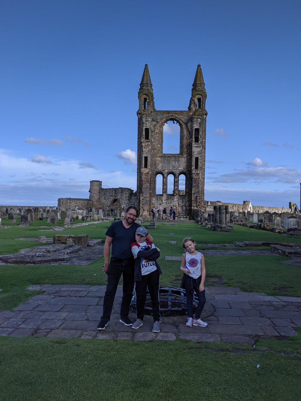 We meandered the old streets until we got to the St Andrews Cathedral. Wow! What a stunning ruin! We spent over an hour wandering through the gravestones and archways. Brad and Charlotte even went up the tower to get a view of the ocean.