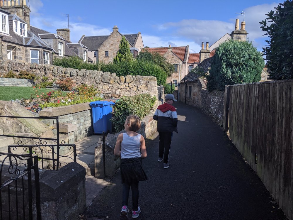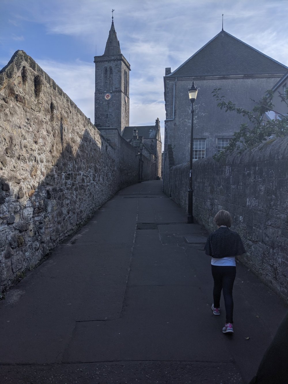 We enjoyed a grassy, walled courtyard outside of one of the university buildings and came out into an alley-like street called Butts Wynd (much to the kids’ delight).