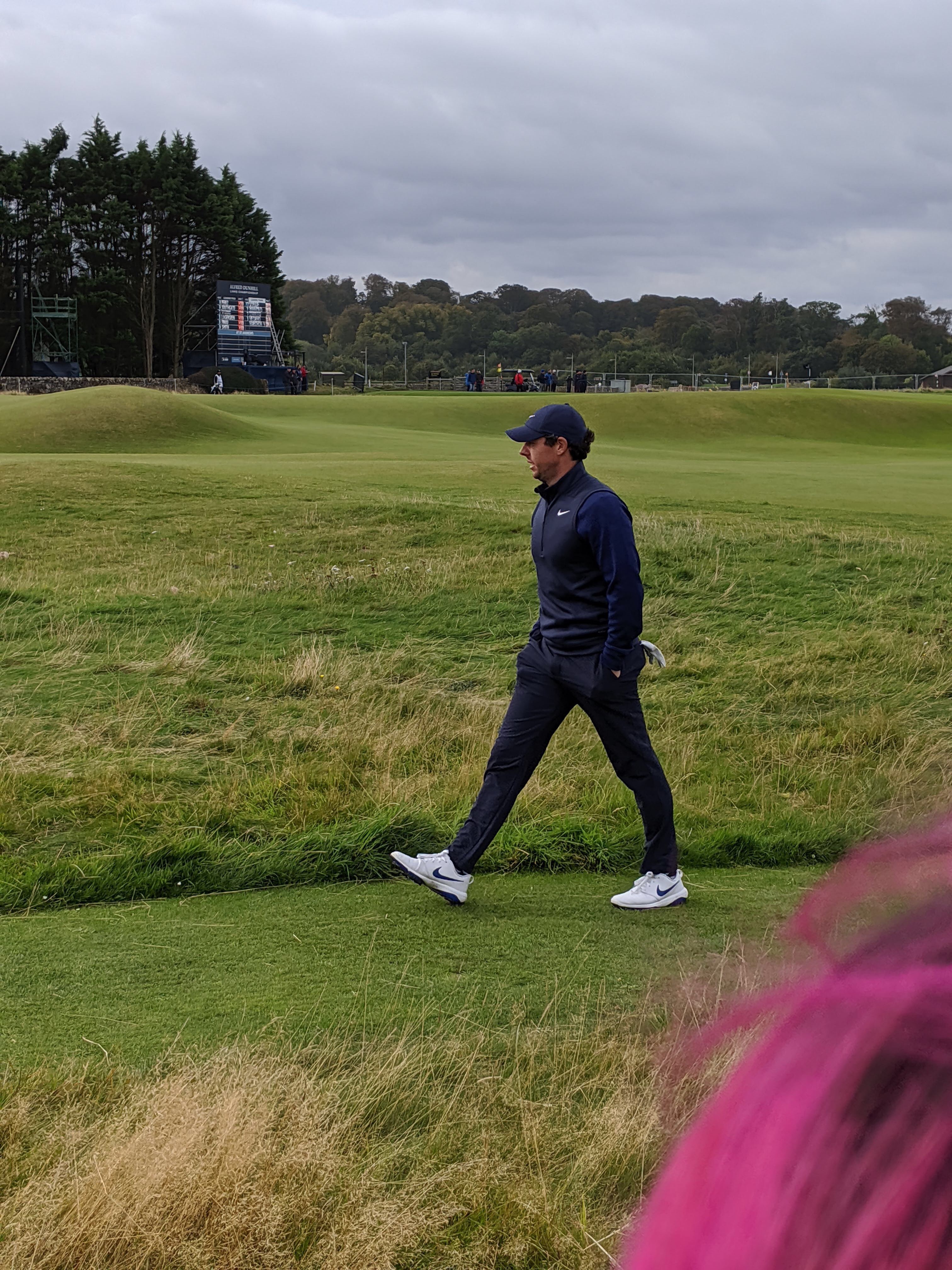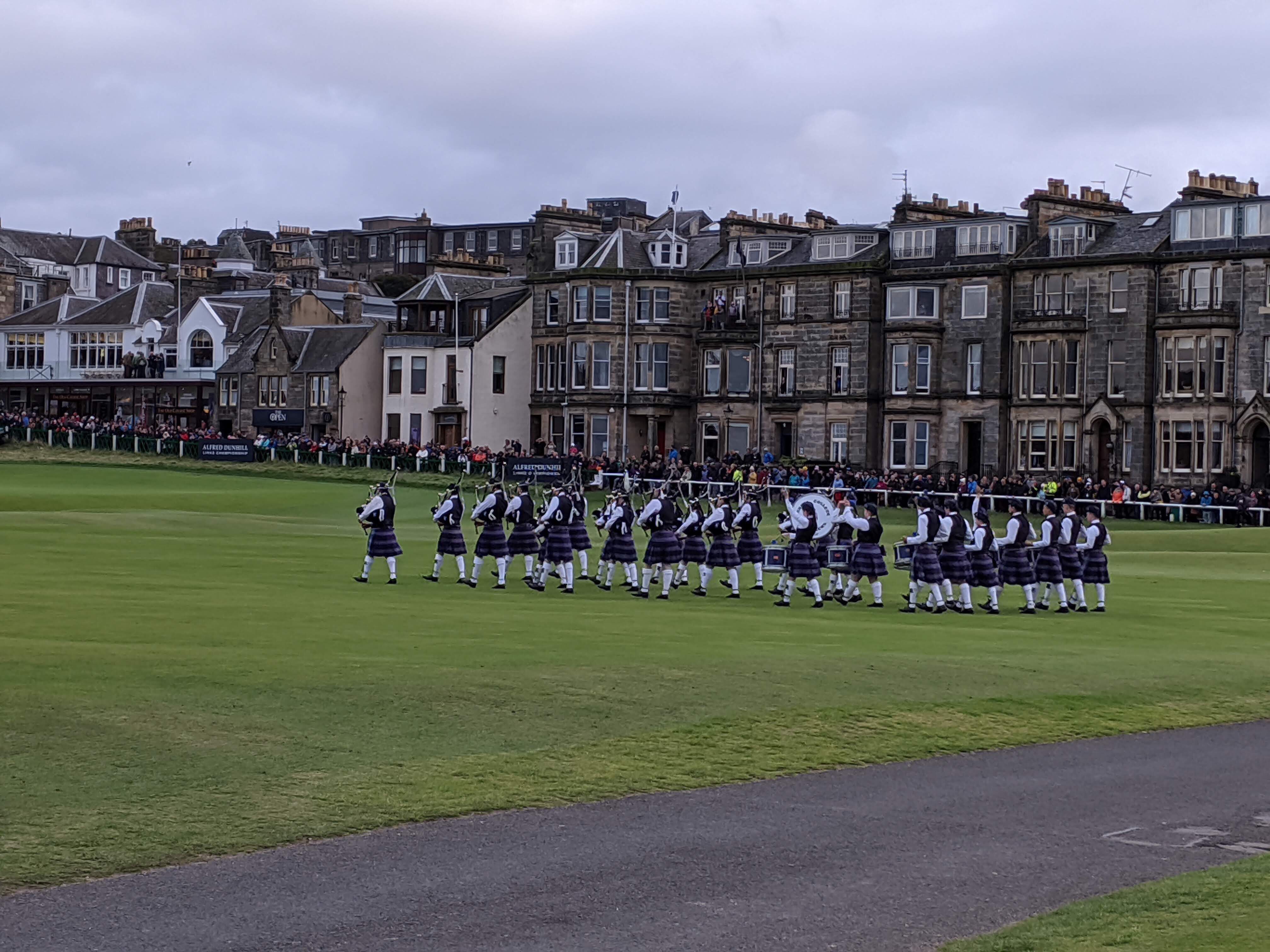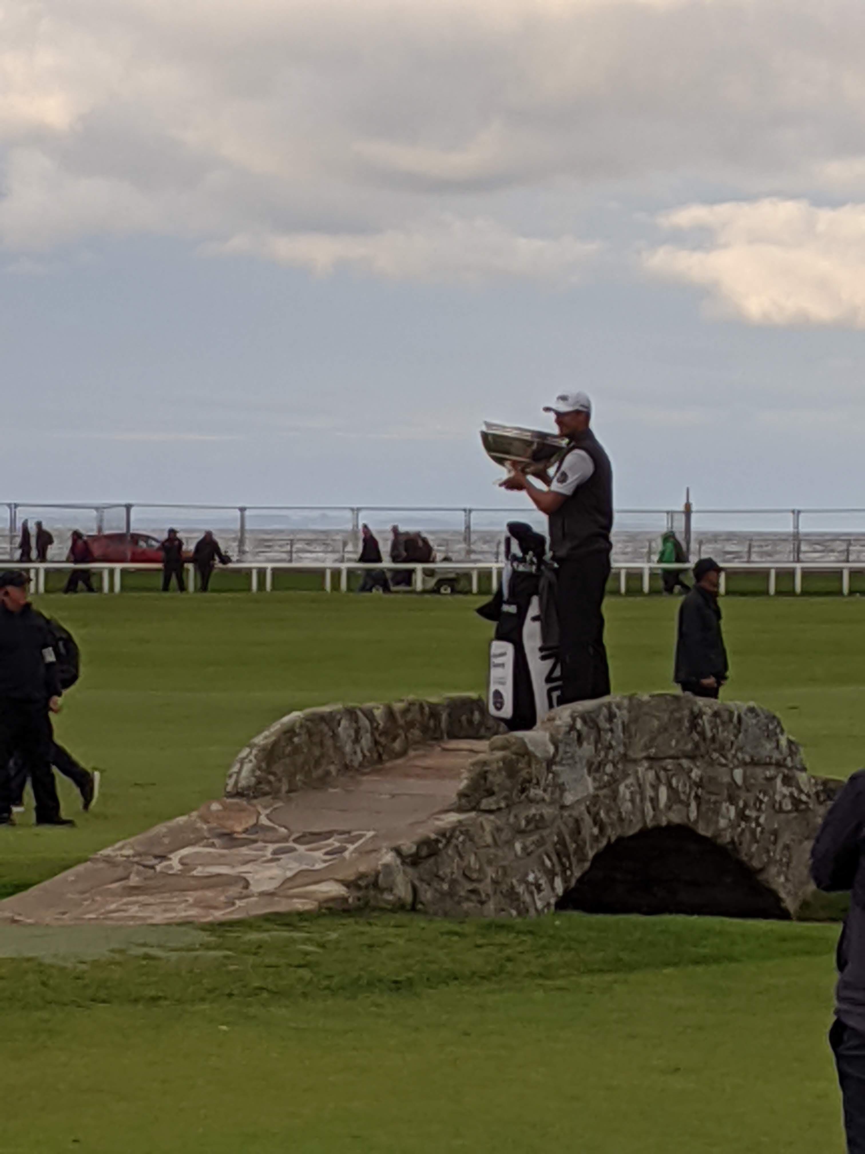 After the leaders finished on #18 there was a Scottish marching band all dressed up in traditional kilts and playing bagpipes. Then they presented the trophy for individual and team, followed by lots of photos at the famous Swilken bridge on #18. I even got to walk on the course and take some photos.