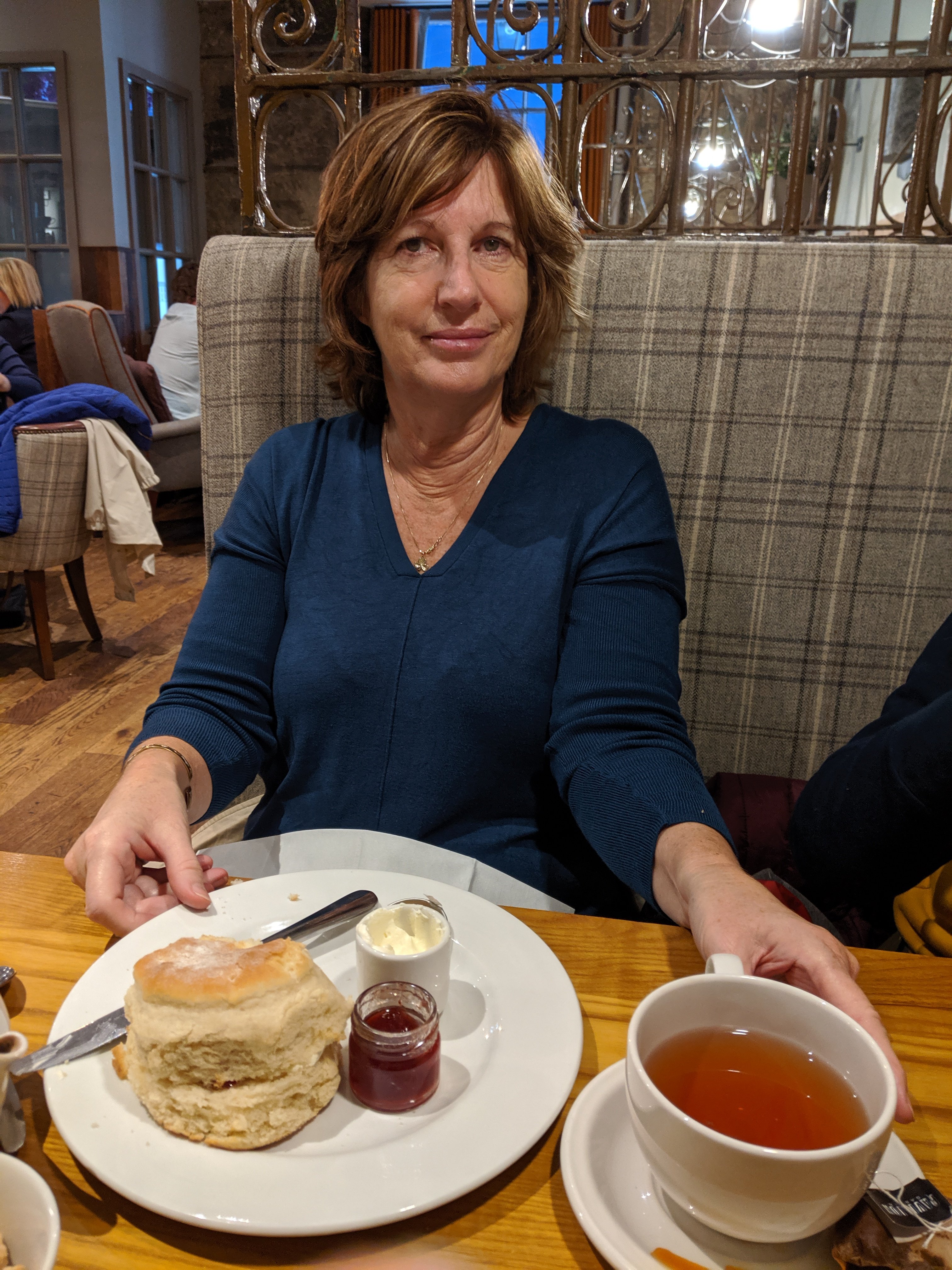 Our afternoon tea was taken at an adorable restaurant called The Doll’s House. We enjoyed tea, hot cocoa, and Orangina, along with deconstructed rhubarb cheesecake, fudgy chocolate cake, and scone with jam and cream.