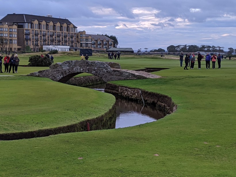 Posing for photos on Swilken bridge