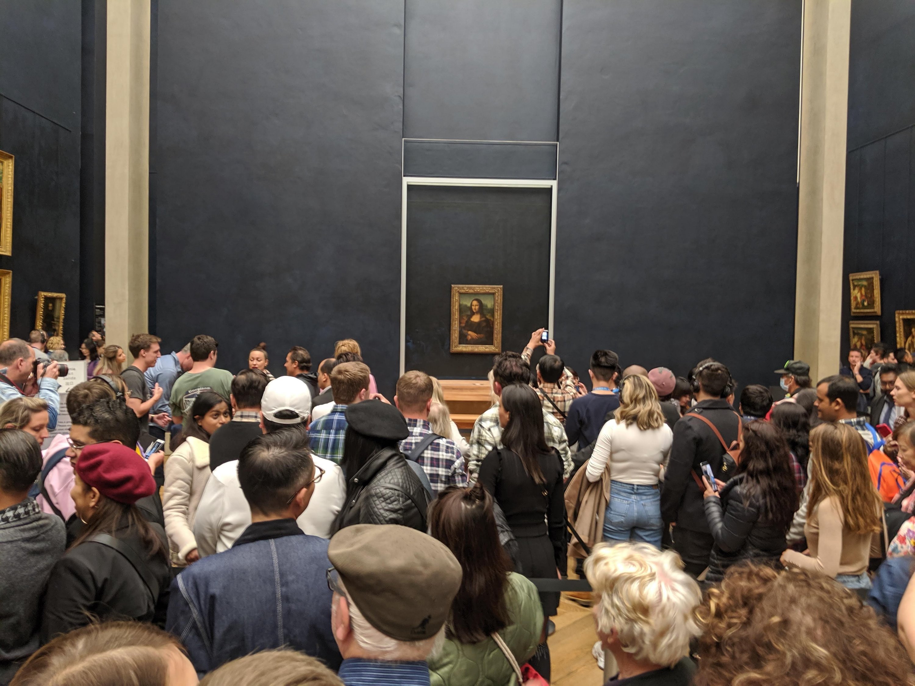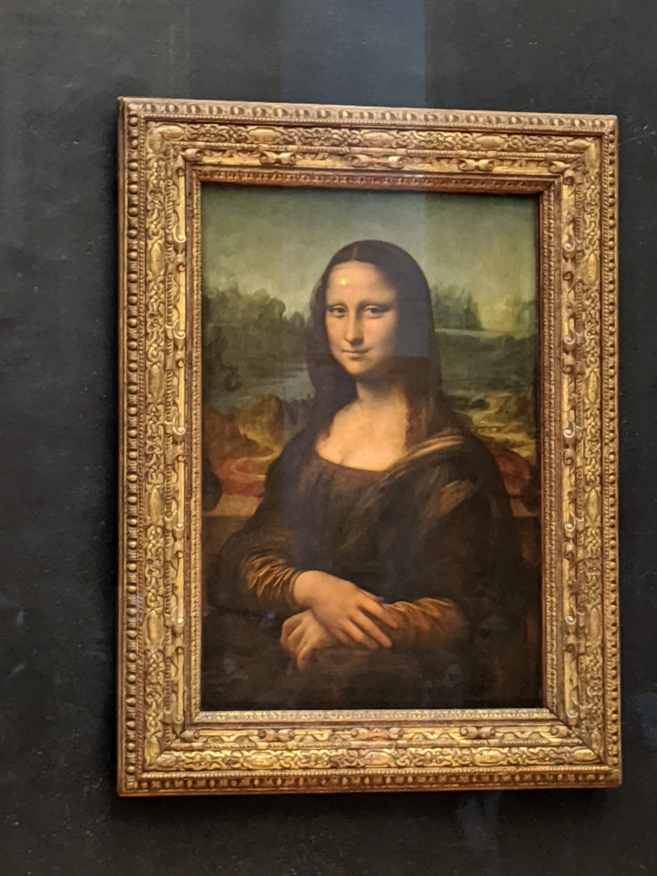 The Mona Lisa looks so small on the huge wall.