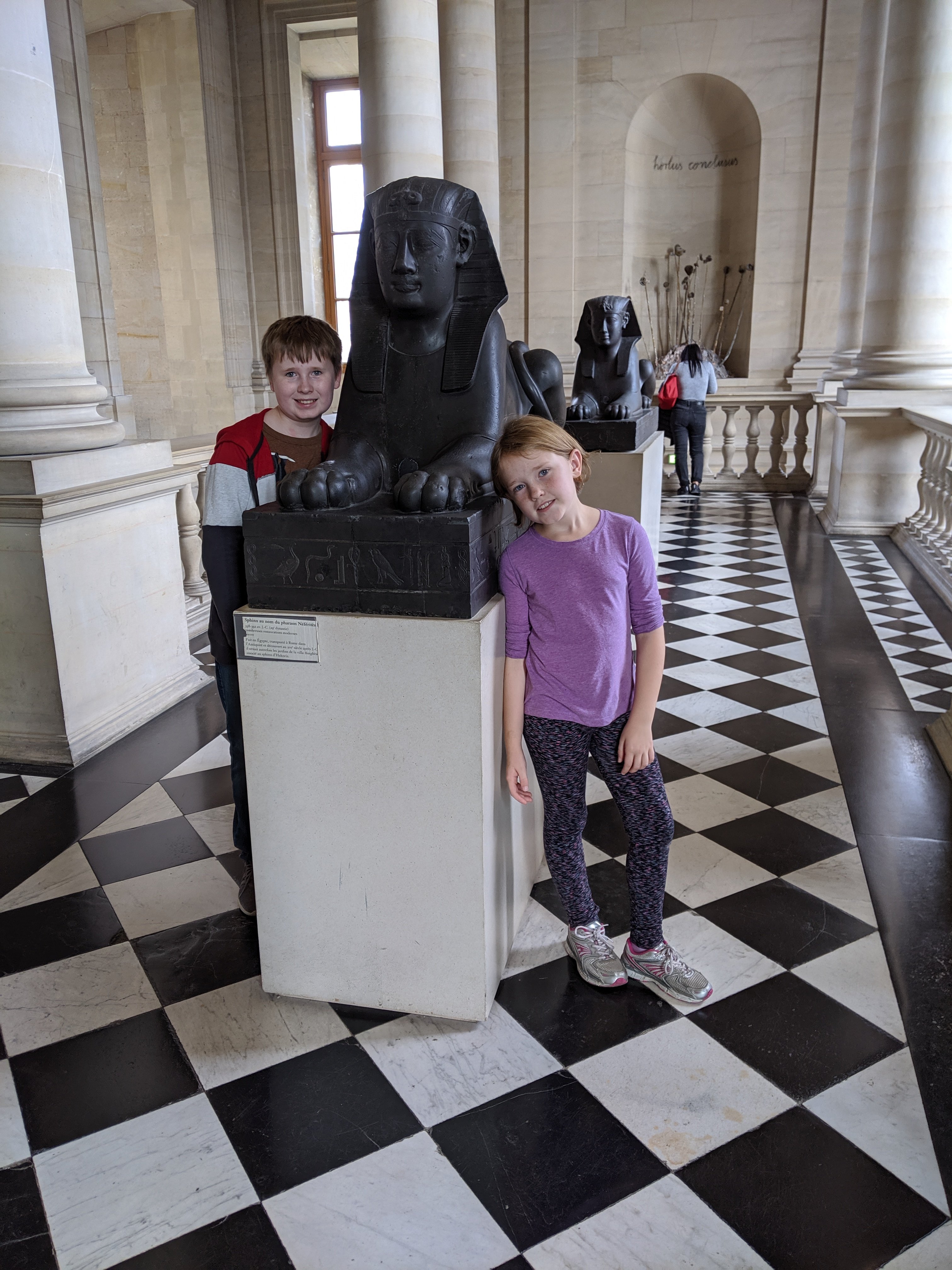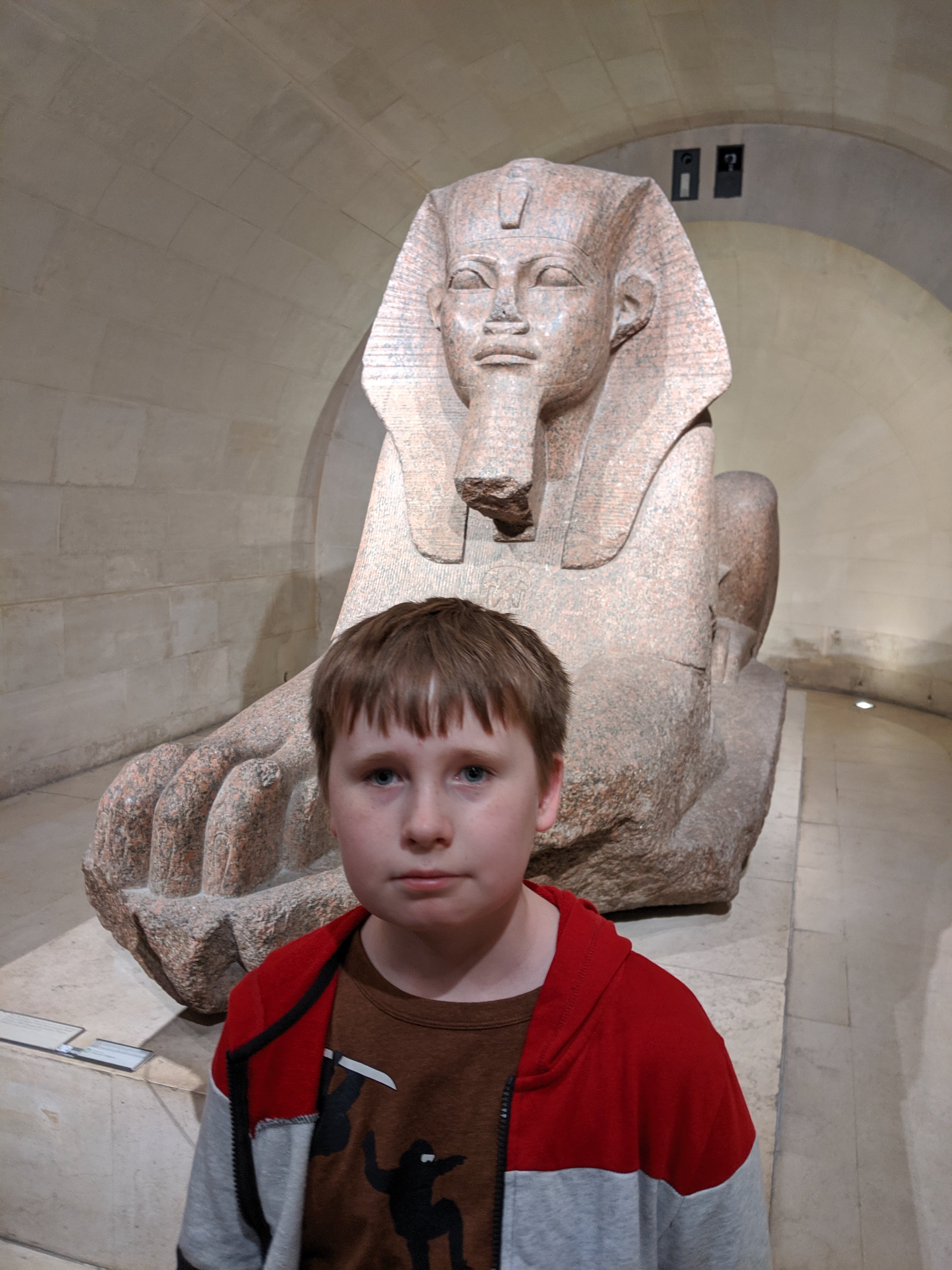 We took the metro to go to a museum called the Louvre. It’s the biggest museum I’ve even been in. My mom looked up a fact that told us if you spent one minute looking at each piece of art inside and stayed for 8 hours a day, it would take you 75 days to see it all!