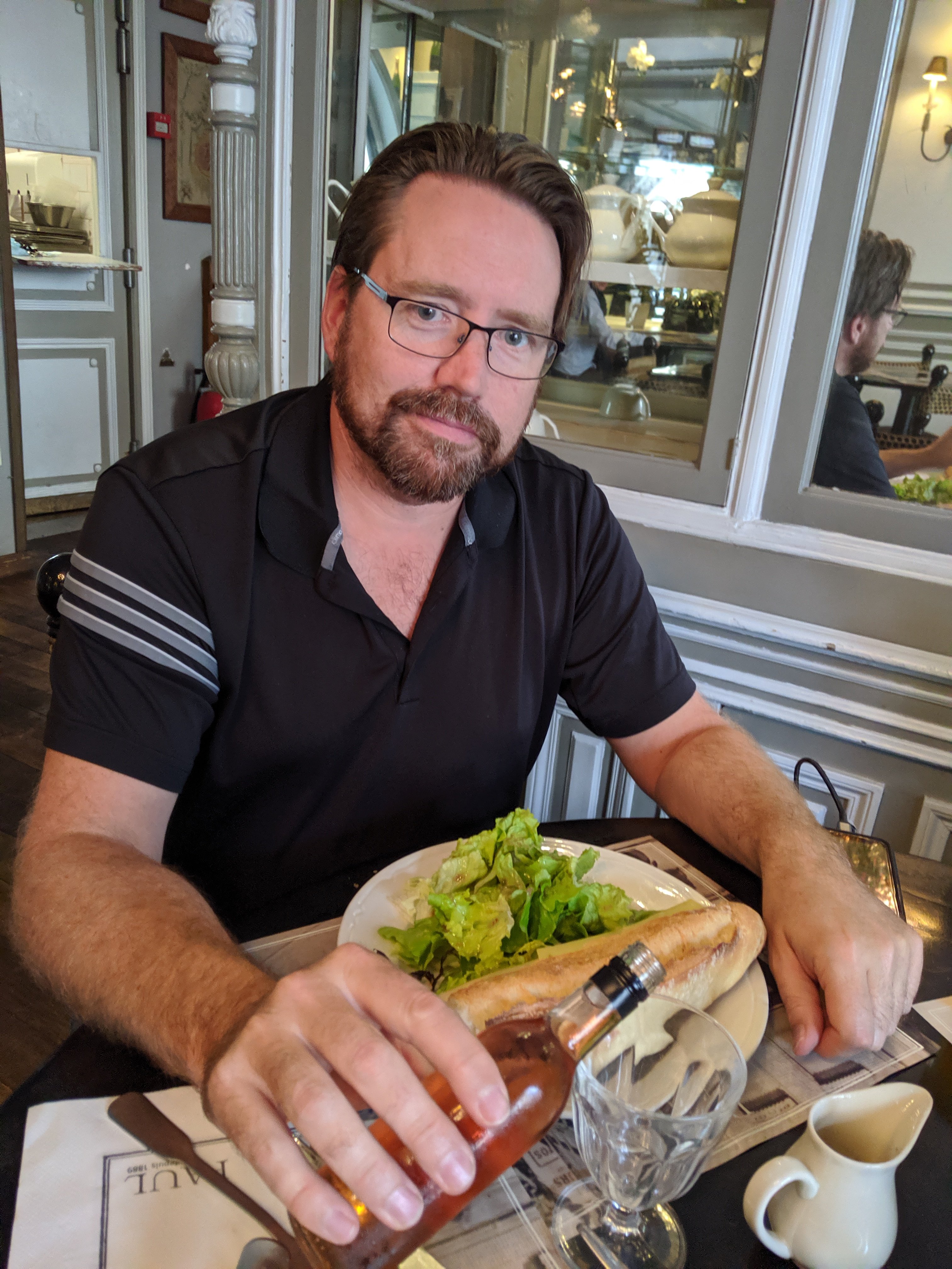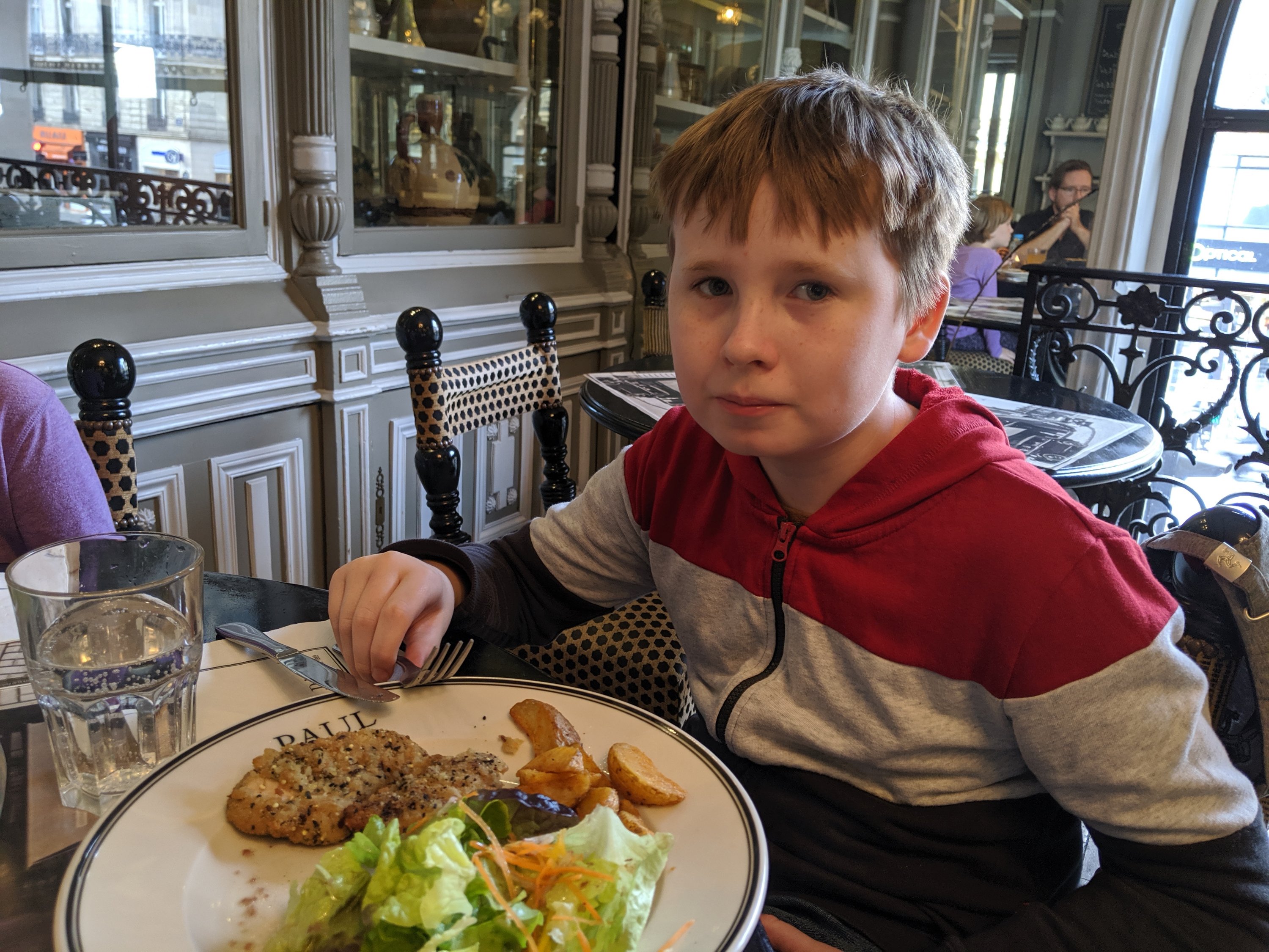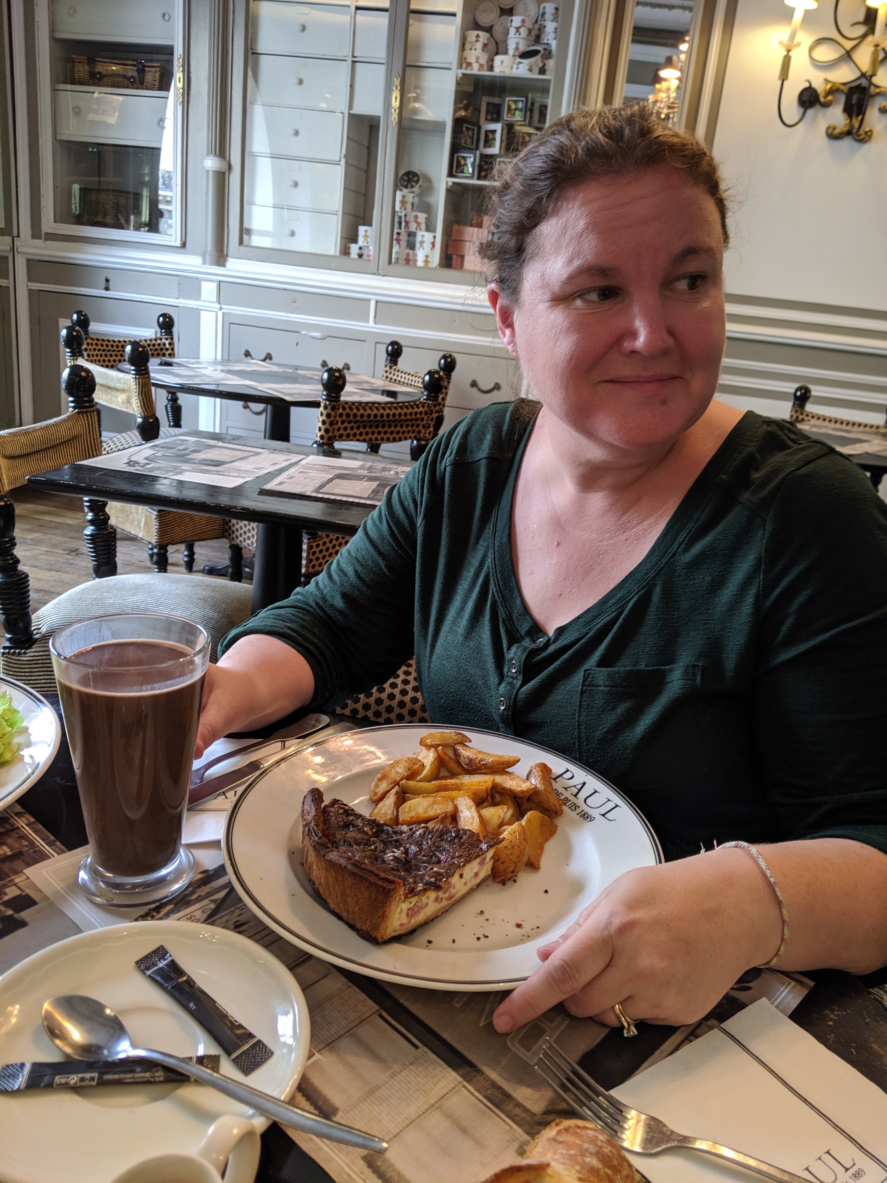 We walked around outside of the Louvre and took pictures by the glass pyramids. Then we checked out some shops and menus nearby. Finally, we found a restaurant called Paul and decided to eat dinner there (we had missed lunch).