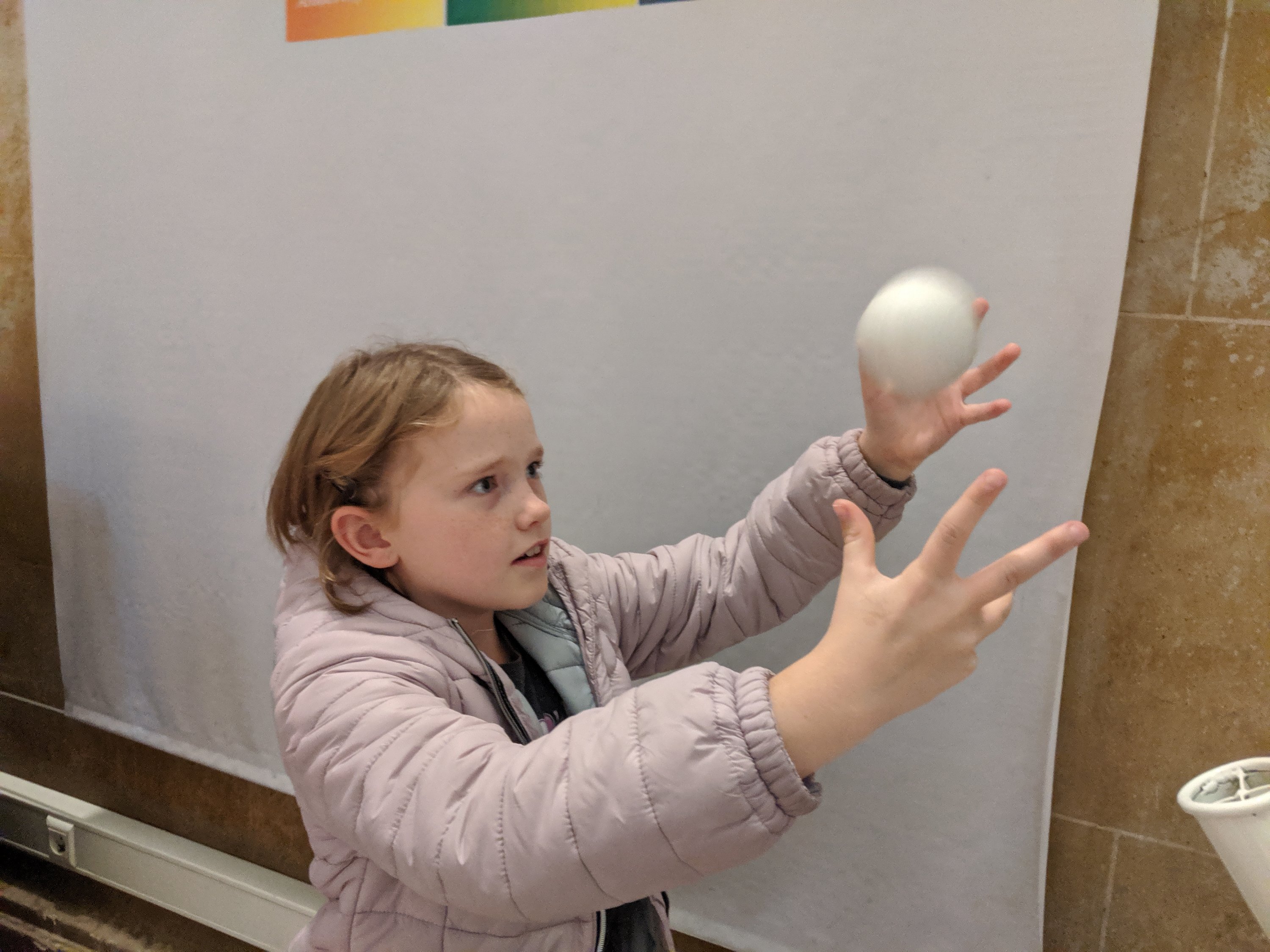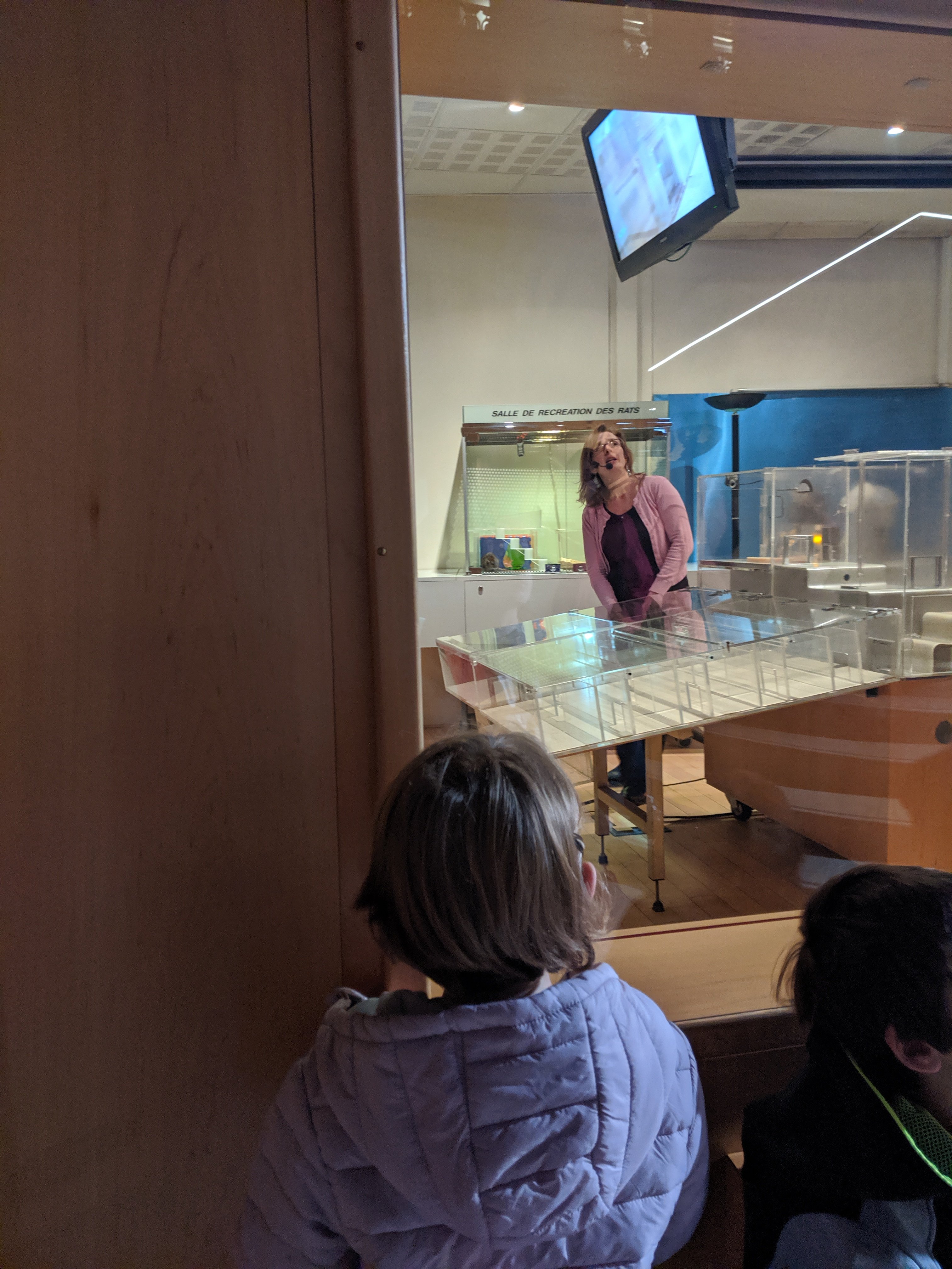 We did a bunch of interactive things, and then we went downstairs to another presentation about how rats can learn. The scientist showed us the rat could get through a maze with a part where they had to pull a string and release a ball. It had to push the ball into a hole and then it got treats. It could do all of this in less than a minute.