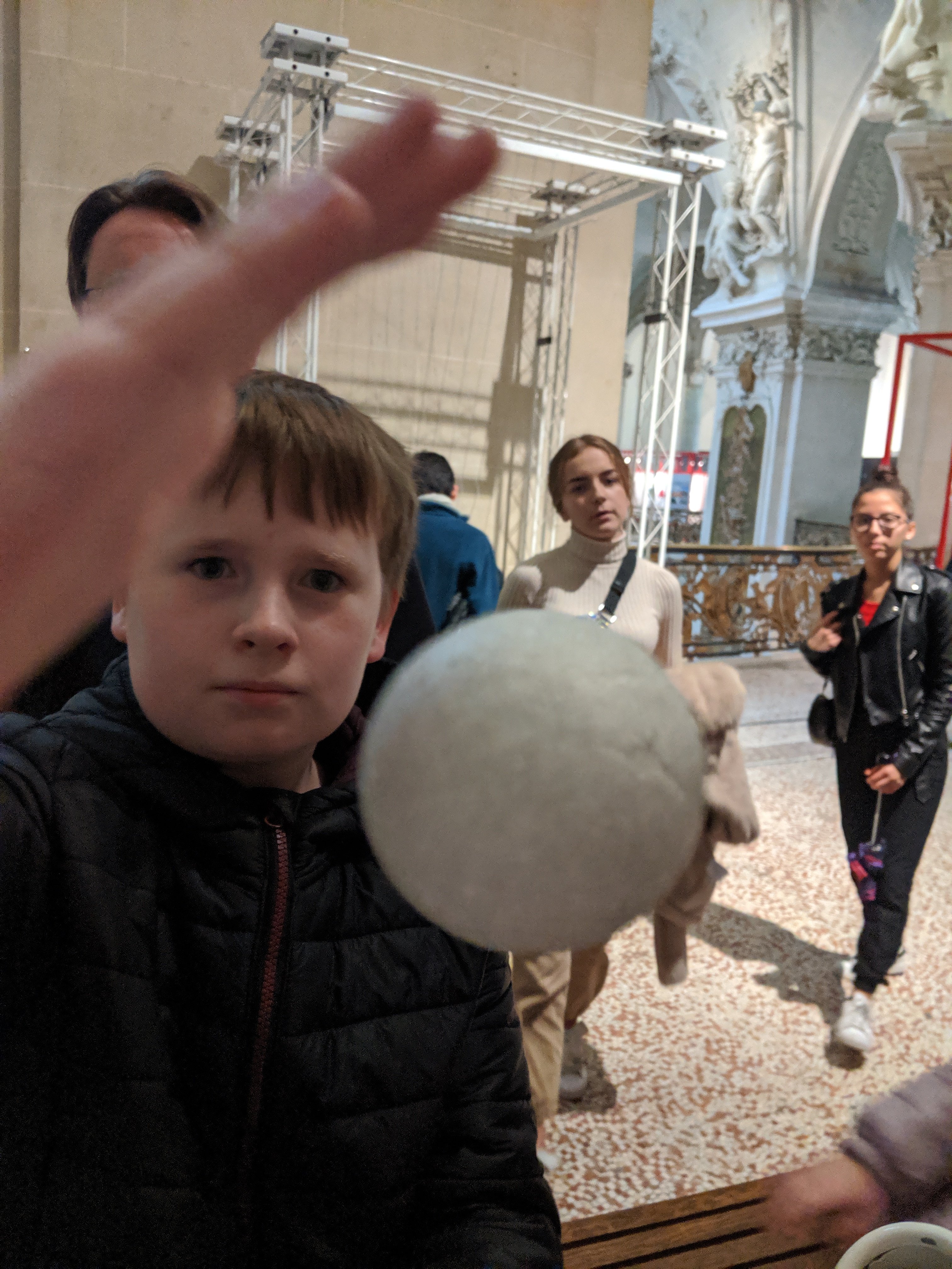 Today we went to a place nearby that was called “Le Palais de la découverte” and we got some breakfast from a bakery on the way. Le Palais de la découverte is a science center inside of an old palace. Inside of the palace there were some exhibitions about optical illusions, light, and the heart. We went to a presentation about how science and math can be used to recreate dinosaur bones. It was all in French, but I understood most of it.