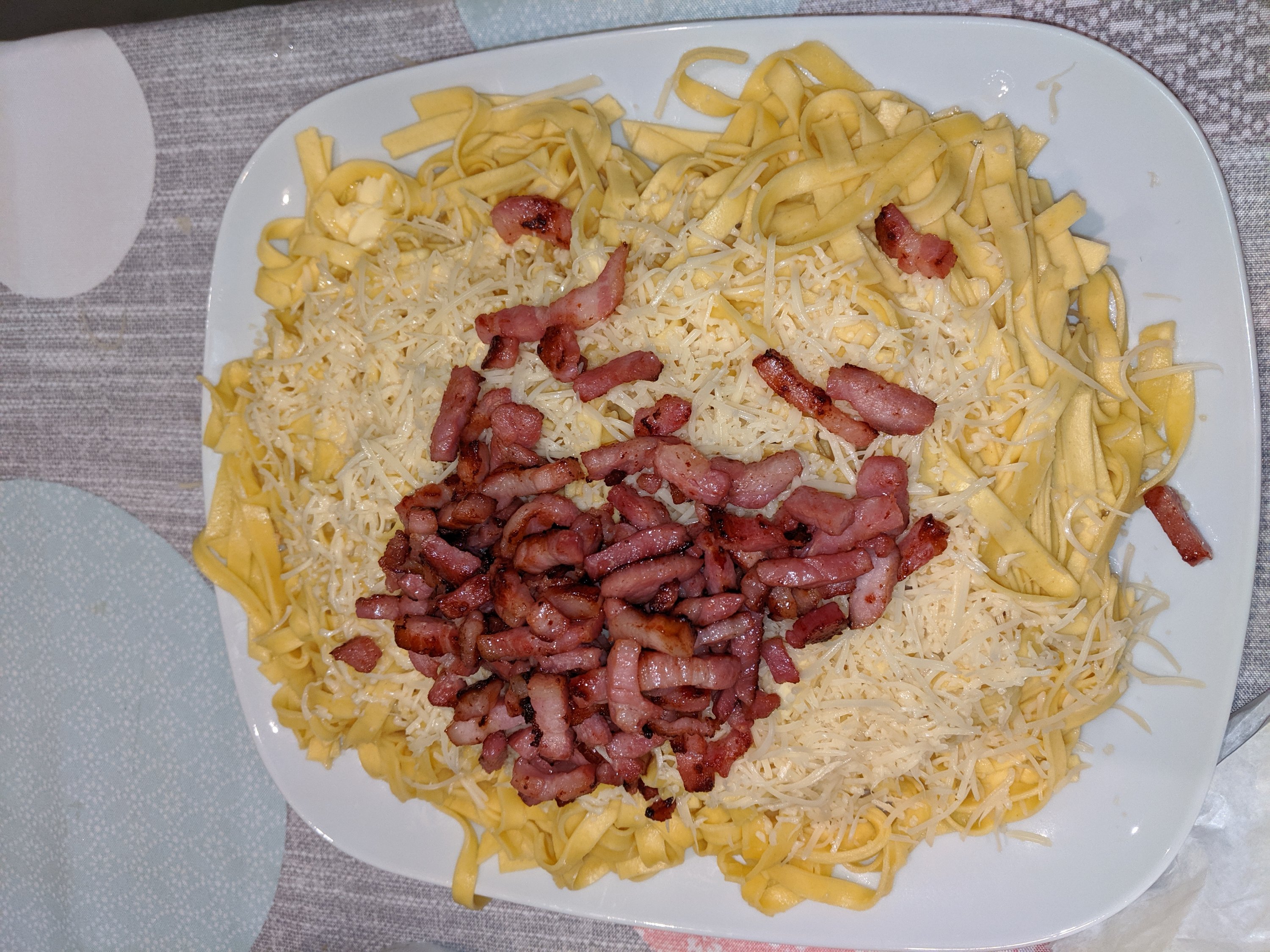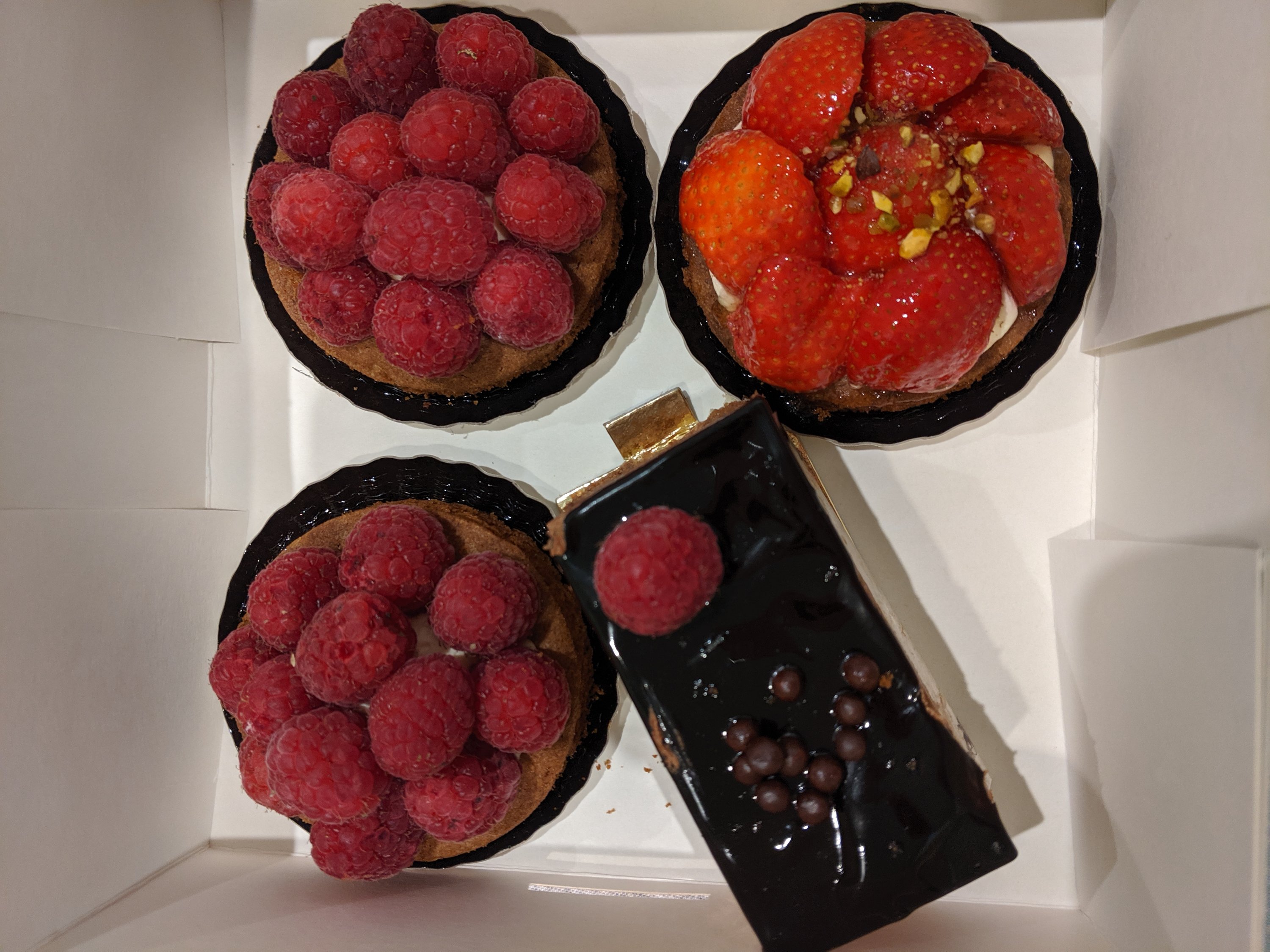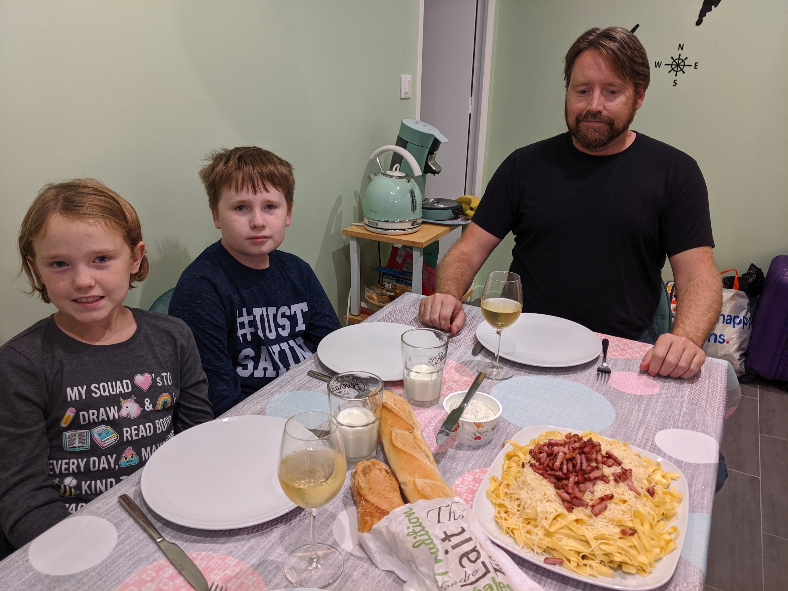 We went home for a dinner of pasta with emmental cheese and lardons (little sticks of bacon). We got a very special dessert from our bakery.
