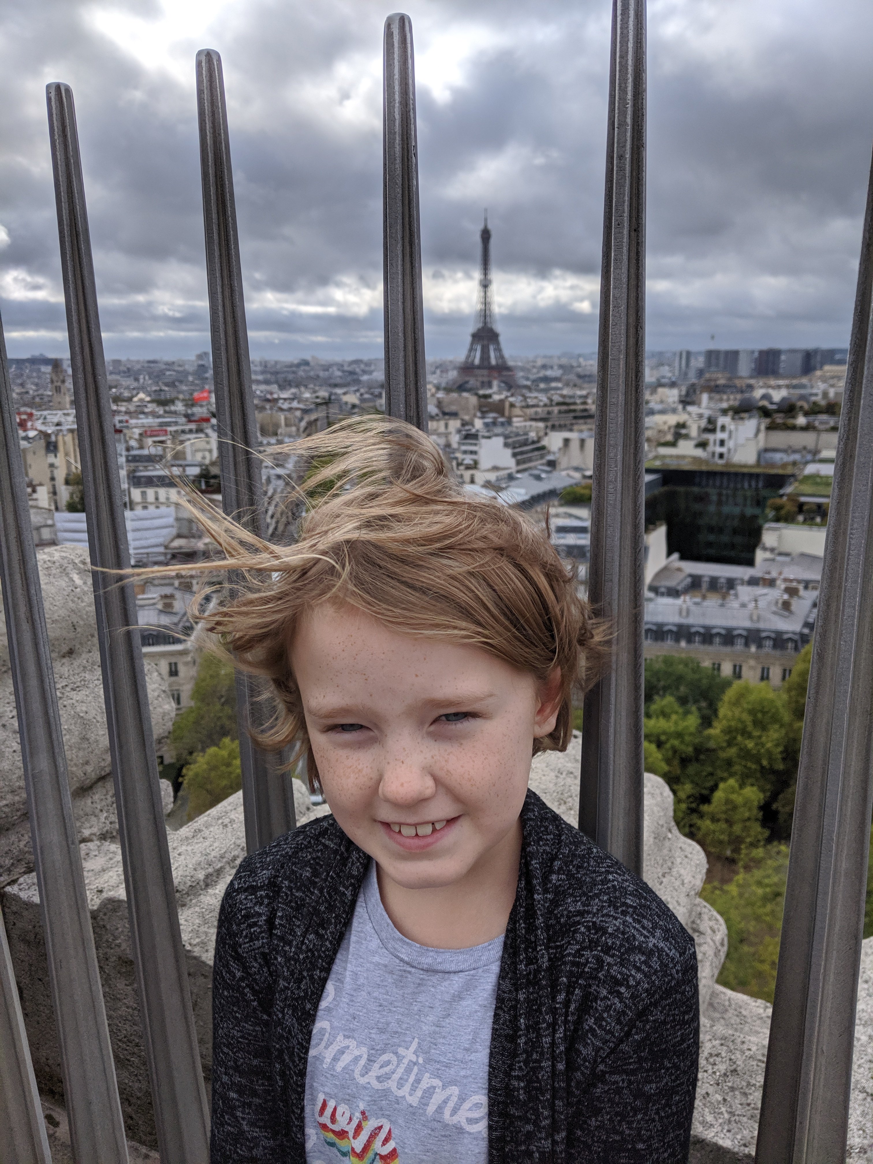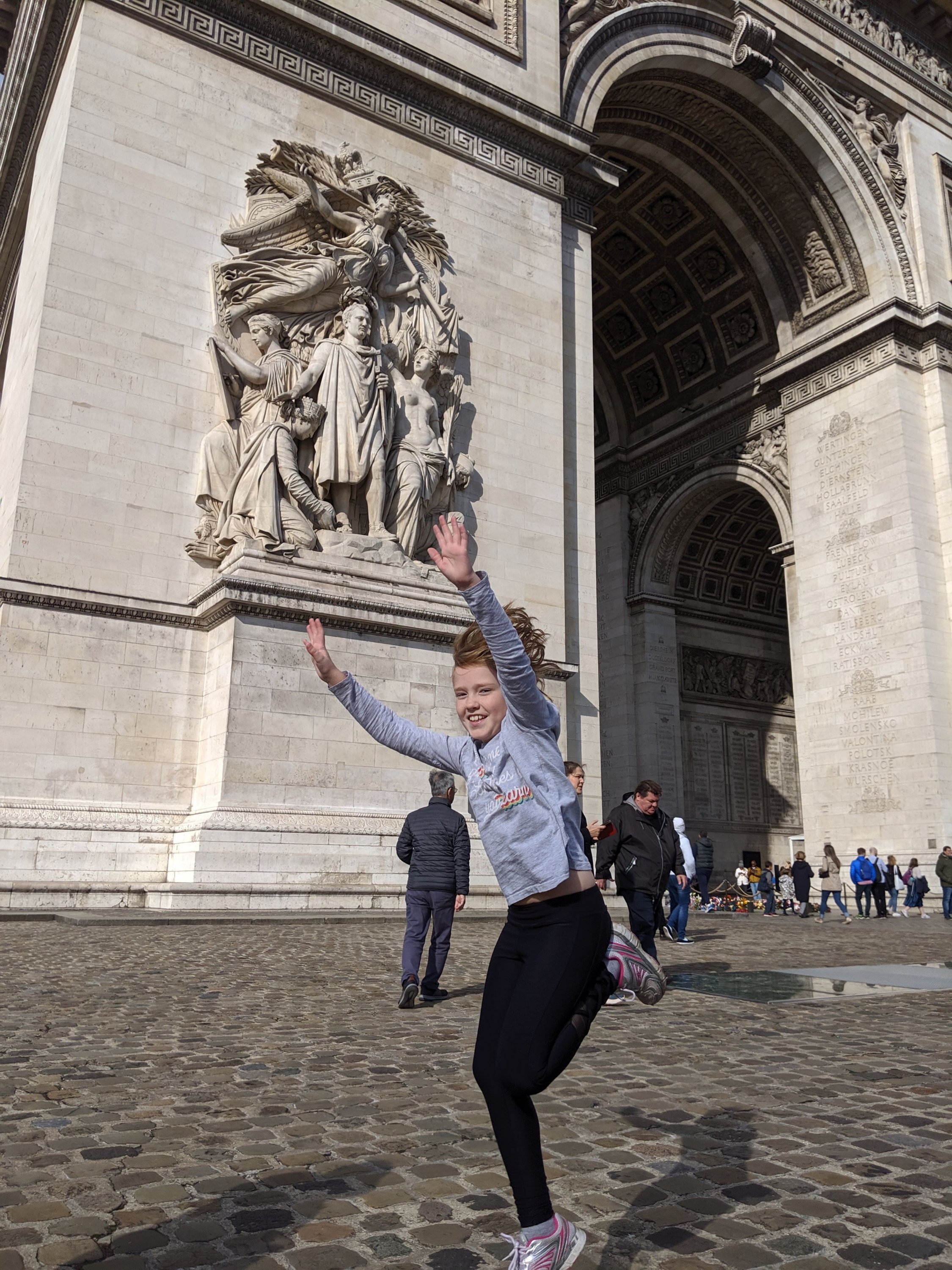 We climbed 284 steps, but we were getting a little used to it because we have done a lot of climbing so far. We got to the top and got lots of photos. The views were really pretty – we could see the Eiffel tower, the Sacre Coeur and Napoleon’s Tomb. I learned that Napoleon had the Arc de Triomphe built but he had already died when it was finished.