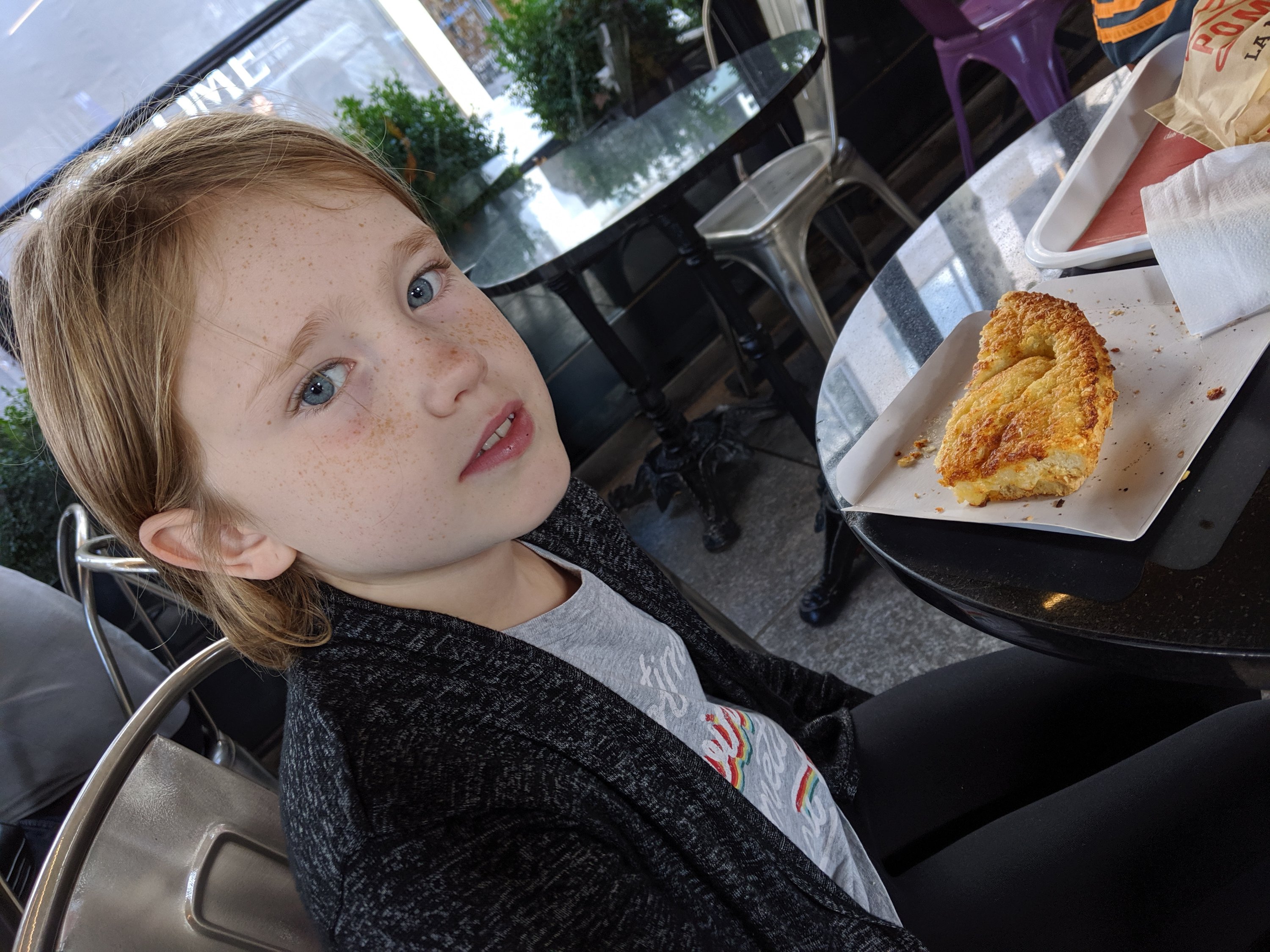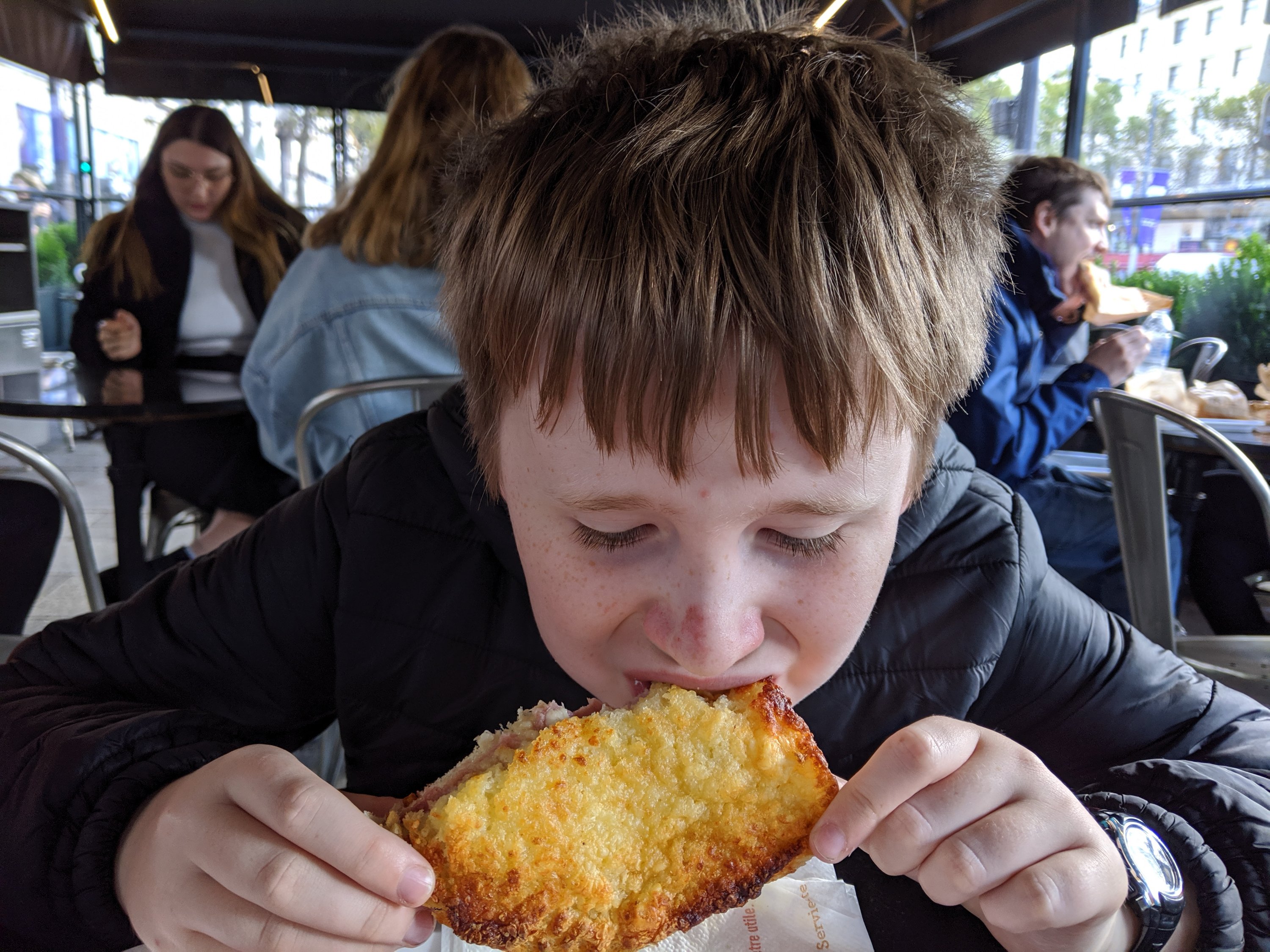 We had lunch at a place called Pomme aux Pains, which is an outdoor Cafe, and got some croques monsieur (common lunch food like a grilled cheese with more cheese on top).
