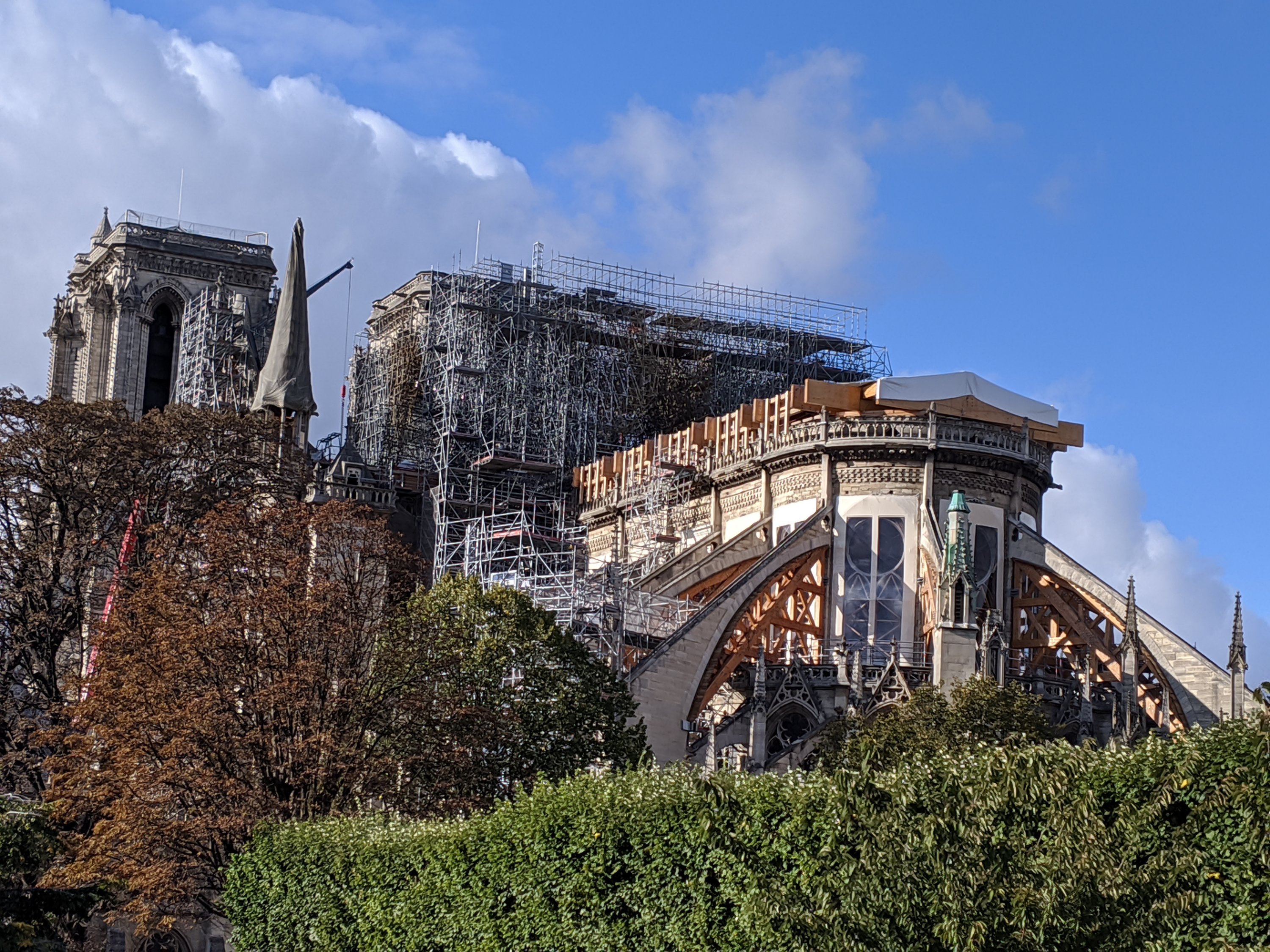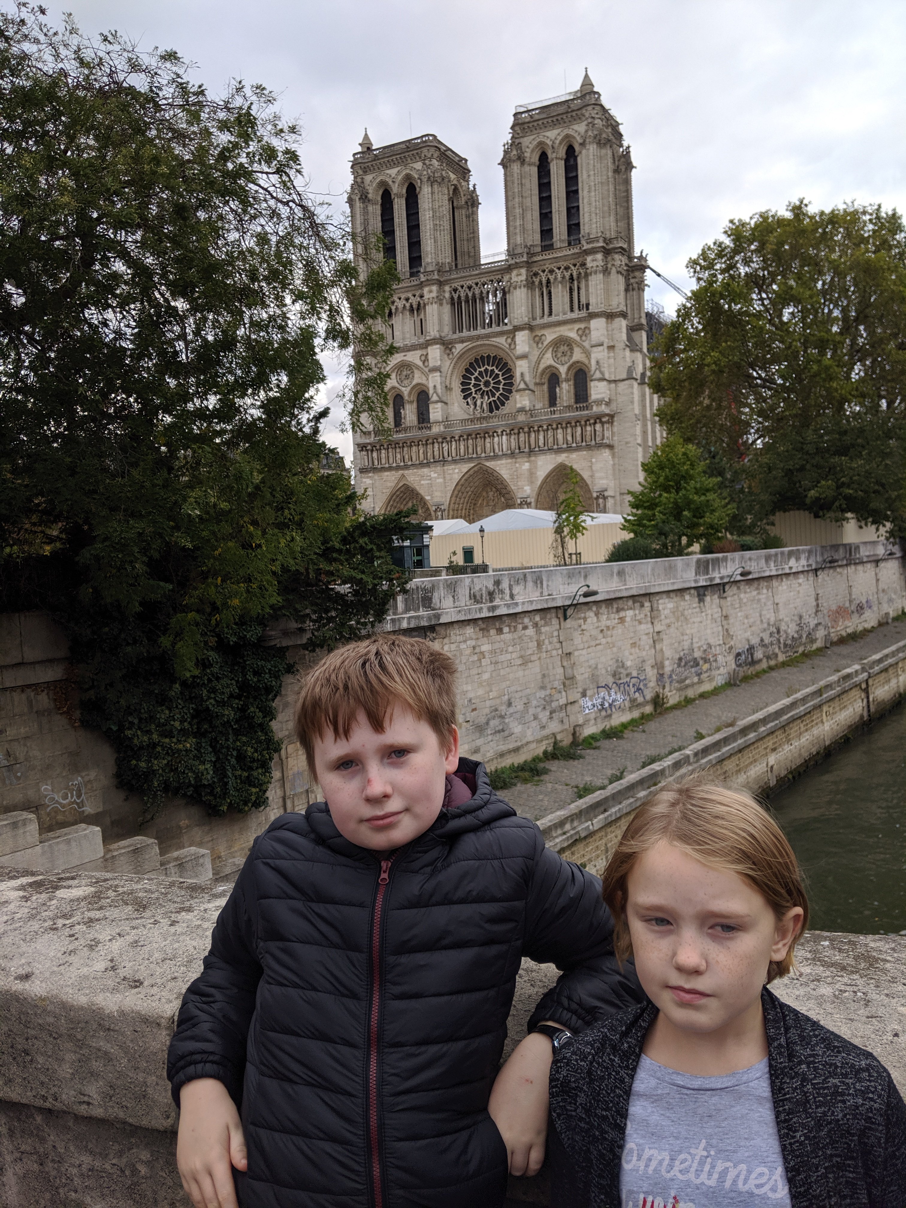 We got on another train to the Notre Dame cathedral, but it was closed because they were trying to rebuild the spire that burnt down. We walked around the cathedral to see it from the front.