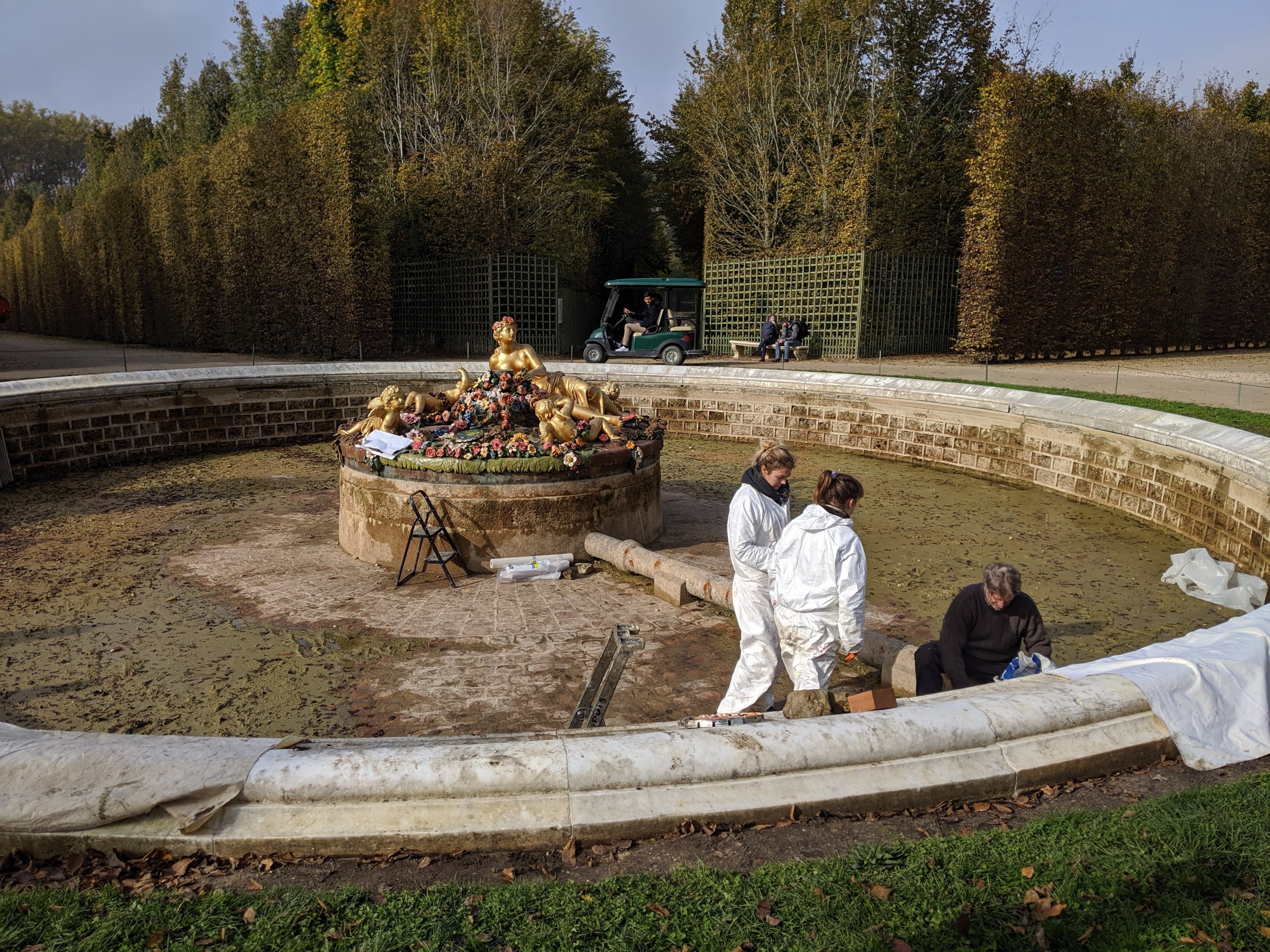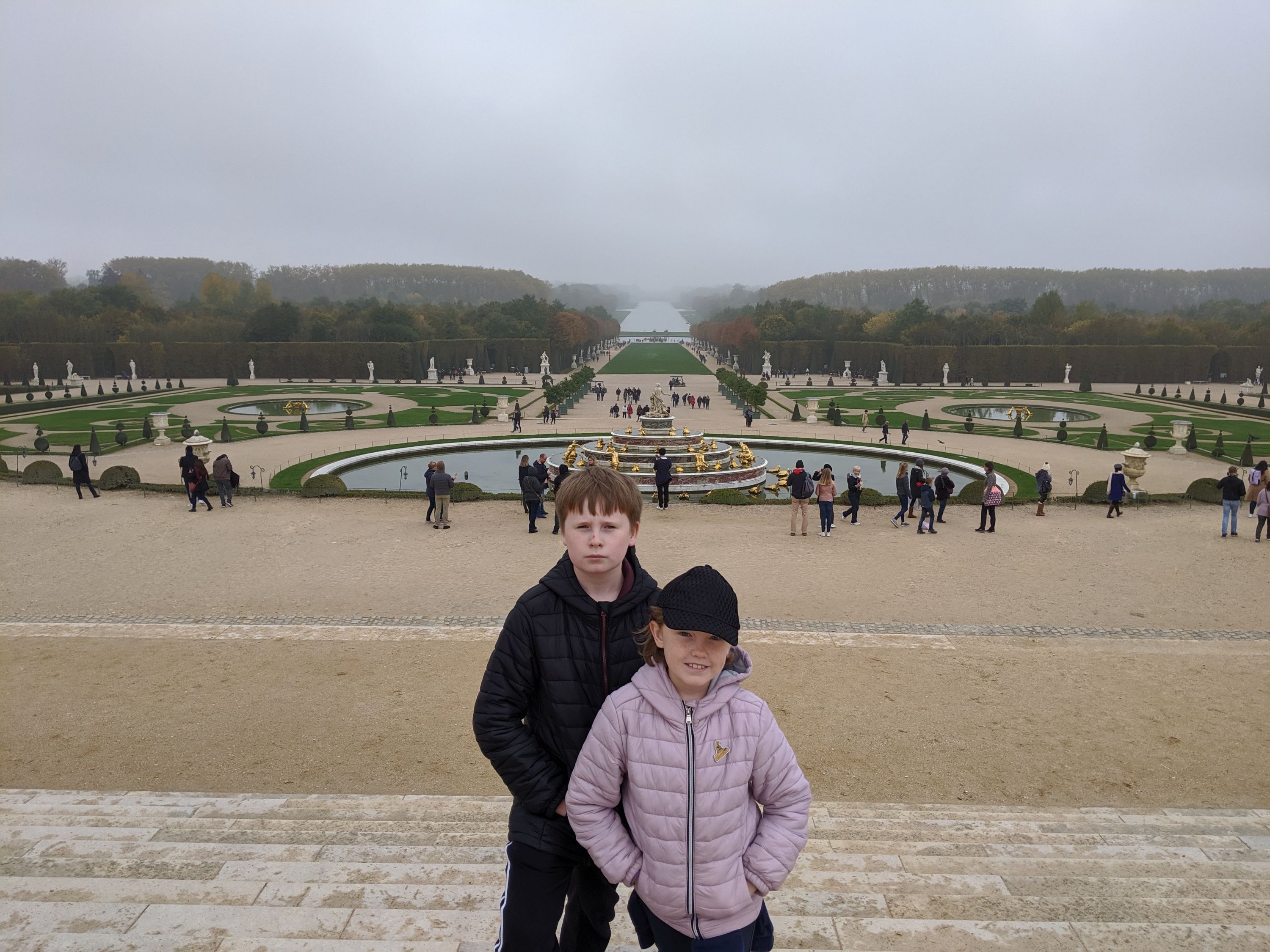 In the gardens, it was pretty. There were lots of gold fountains and statues and many trees were cut into triangles. The gardens were extremely huge. There was even a map! It took 3 hours for us to walk through and we didn’t even see all of it.