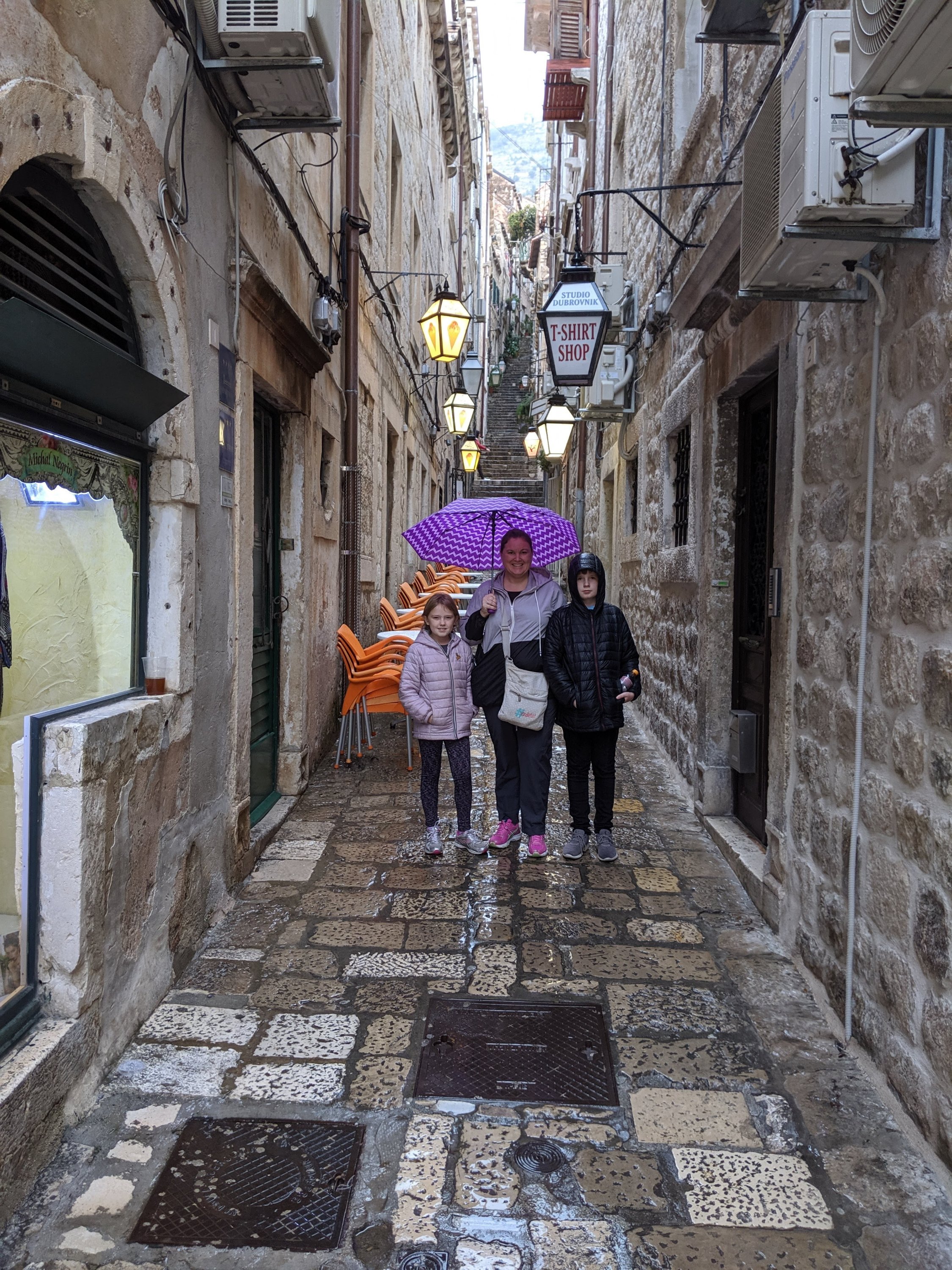 Today it was a little rainy and we wanted to check out our city, so we explored it all day. As I said, it was raining so we had to bring our umbrellas. The city was very pretty and we walked all around it. It was filled with little shops, skinny streets, and lots of steps.