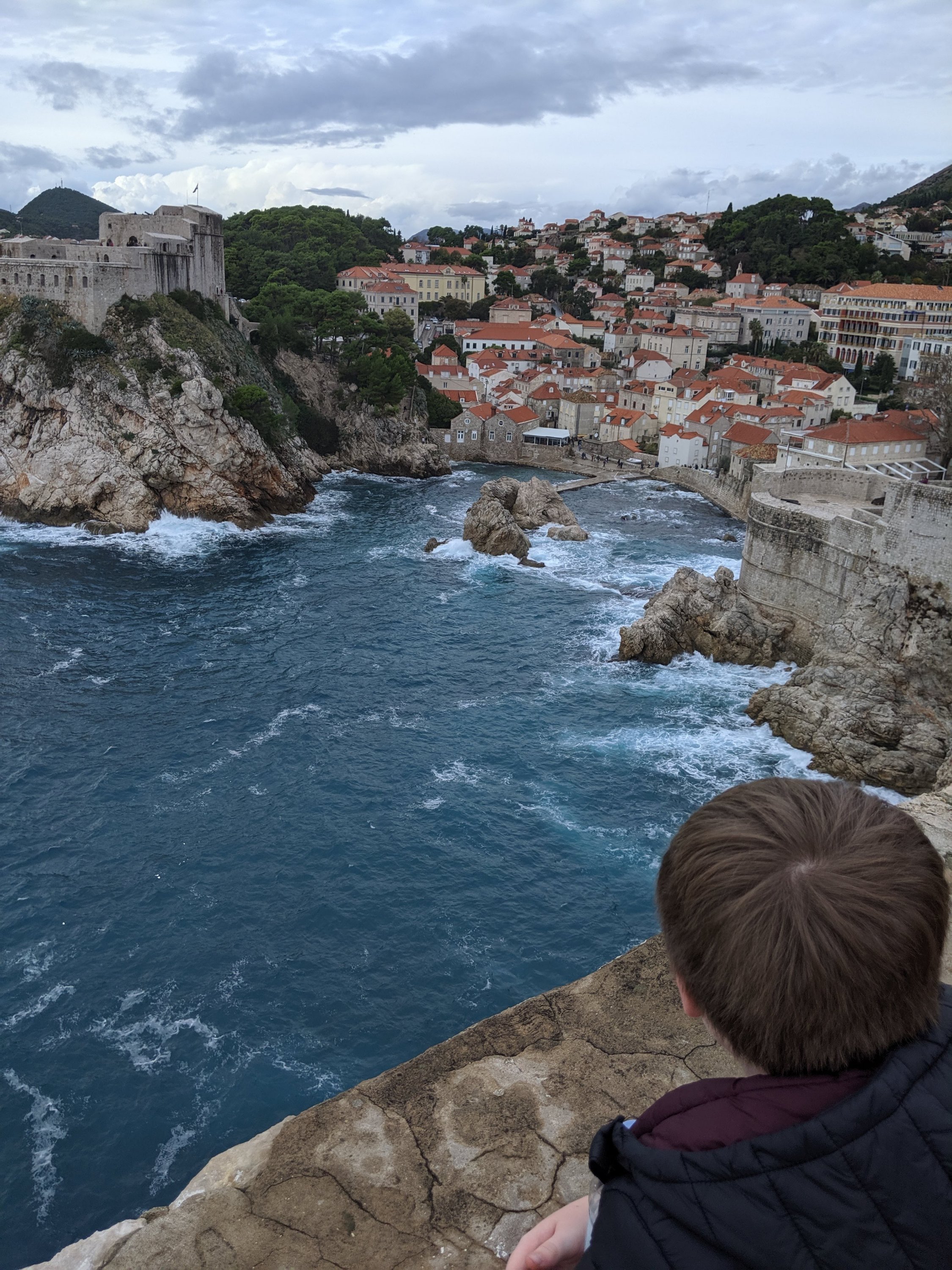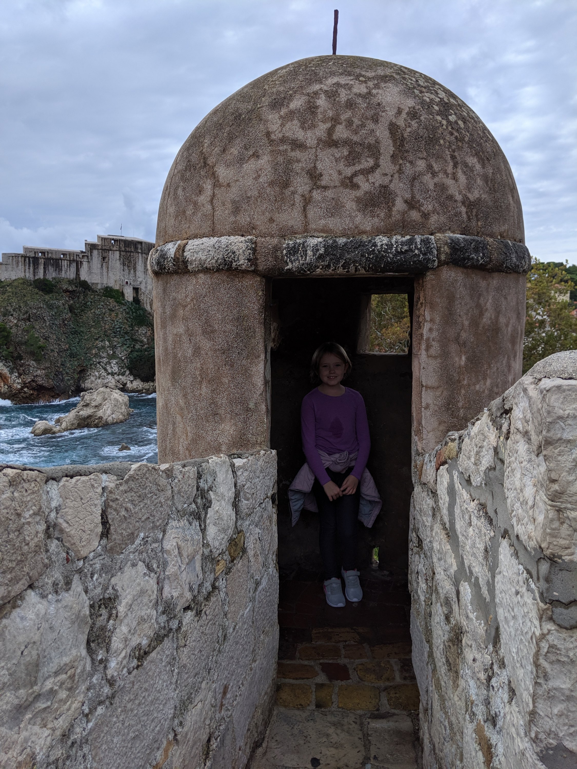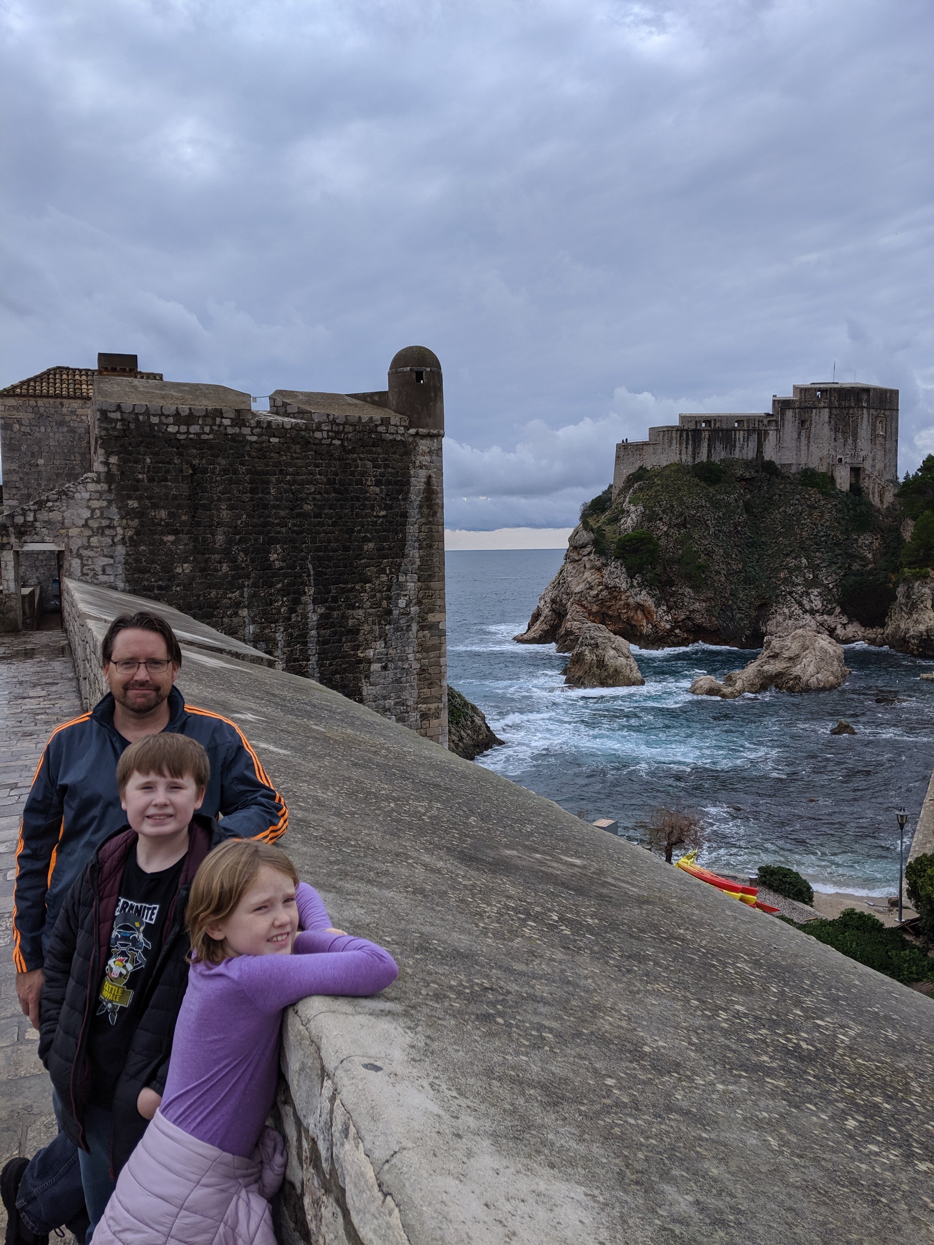 Now we could visit the city walls. We were staying inside of them, like in a castle, so we wanted to walk all around it. It was very pretty. We could see the city, the Adriatic sea, the island nearby called Lokrum, and the fortress. It took two hours to walk around the whole city on the walls. We stopped for ice cream and took so many pictures.