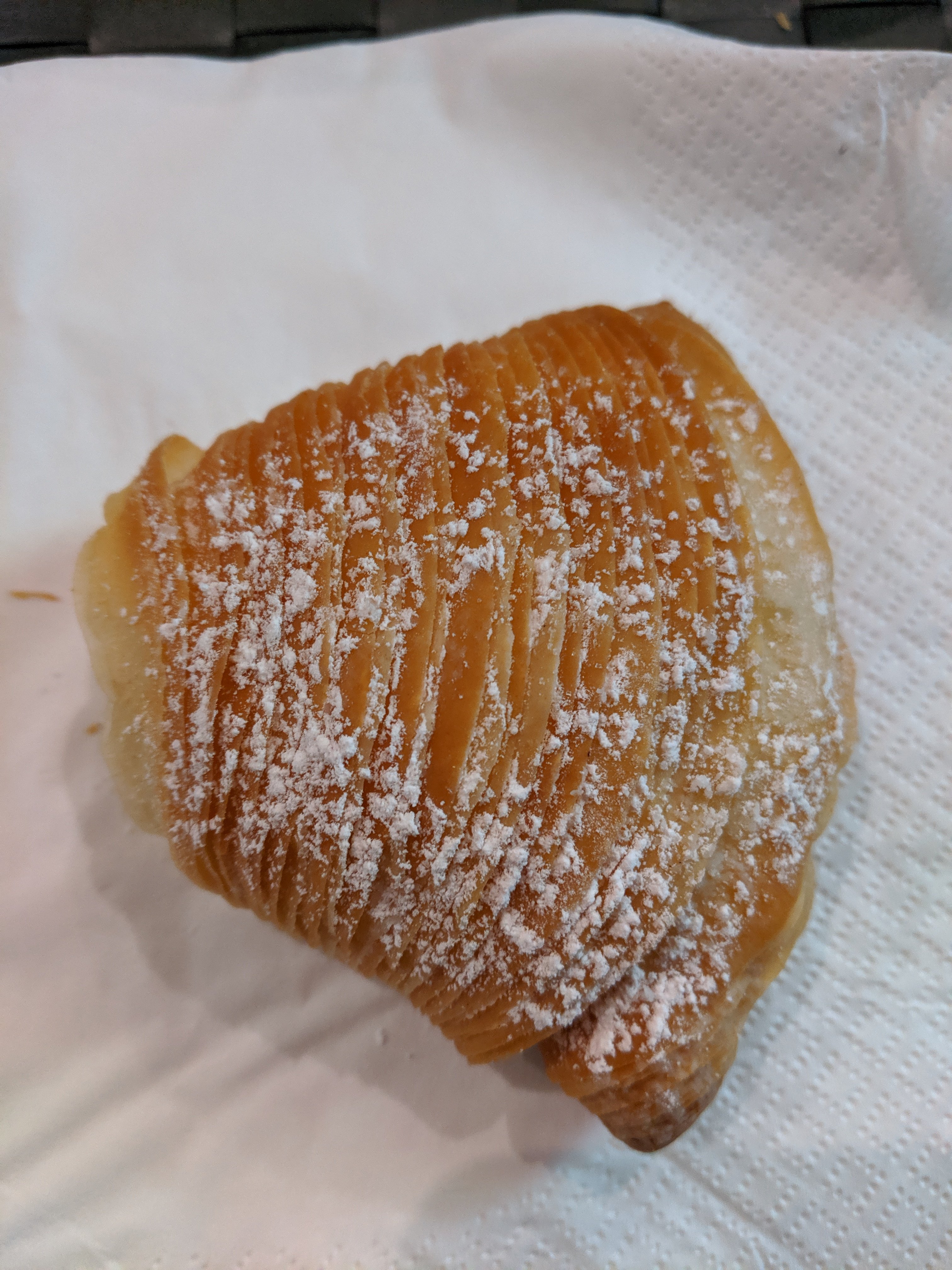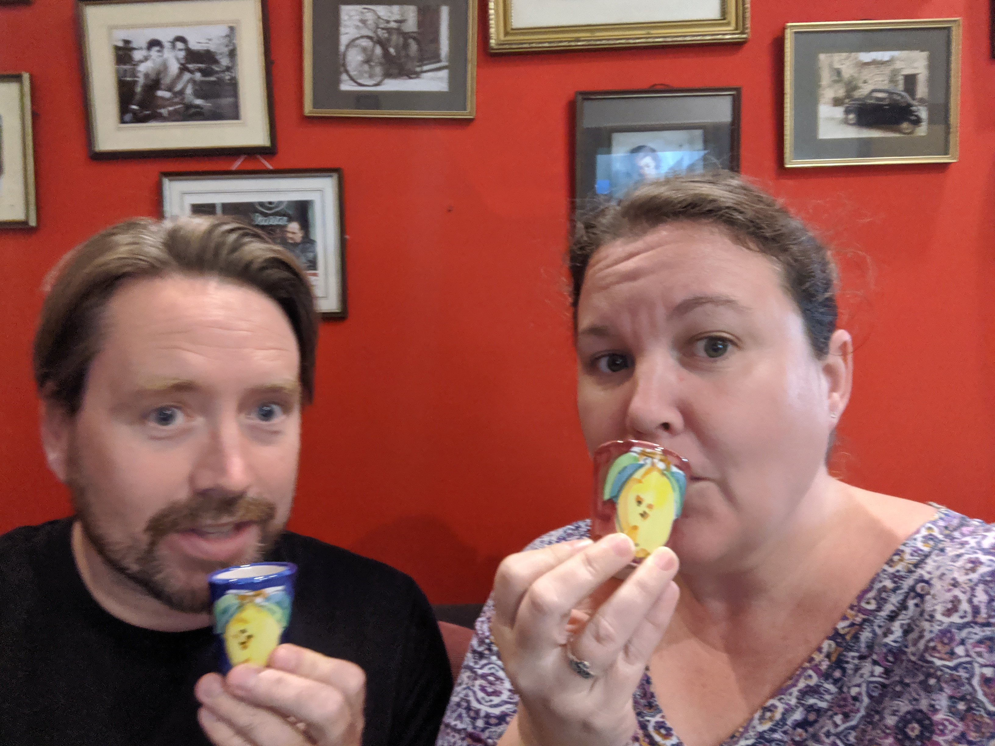 We slept in today because of our big travel day. It was also rainy and very windy. Mom volunteered to go out and pick up something for our lunch. She found a little cafe and bought back focaccia (it’s bread that is soft like a cloud with herbs on it – it’s so delicious), eggplant parmesan, and breaded chicken.
