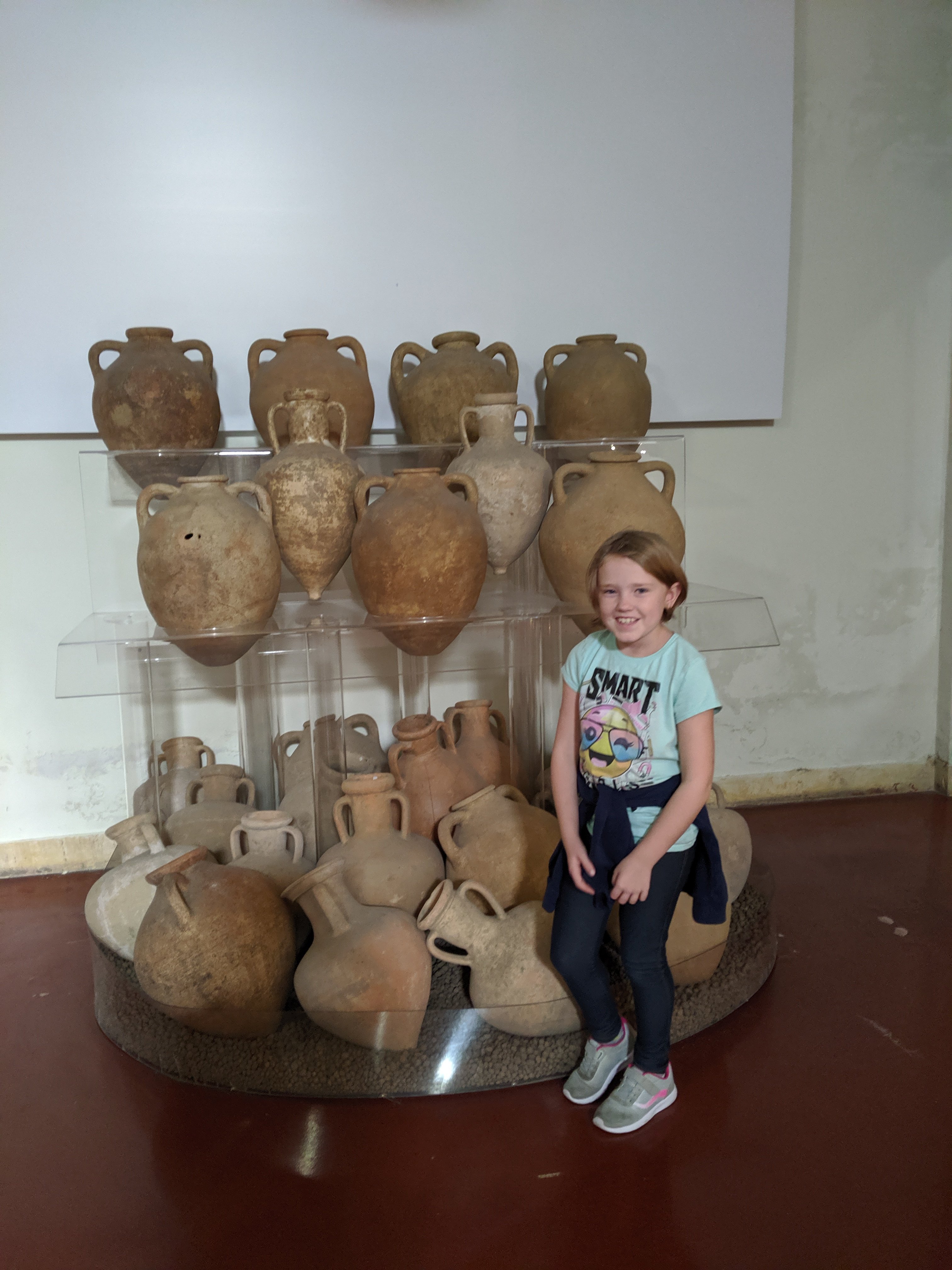 Across the street from the gelateria, there was a mall and Charlotte saw a toy store inside so we went to check it out. The store was pretty cool, but we couldn’t stay all day so we left to find the archaeological museum. It was very nice and we got in free. It had some items that had been dug up around the town like currency and some pots.